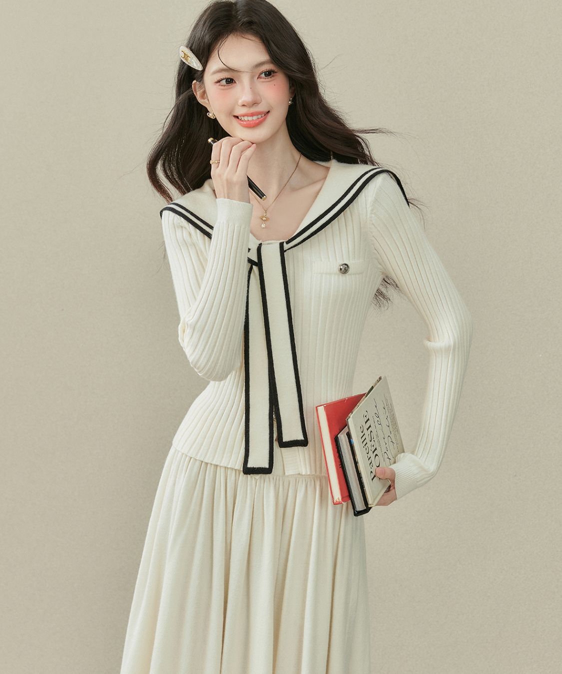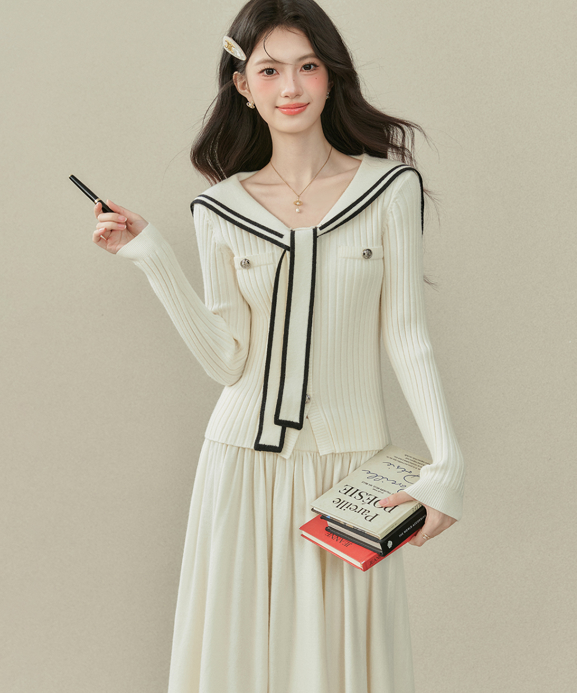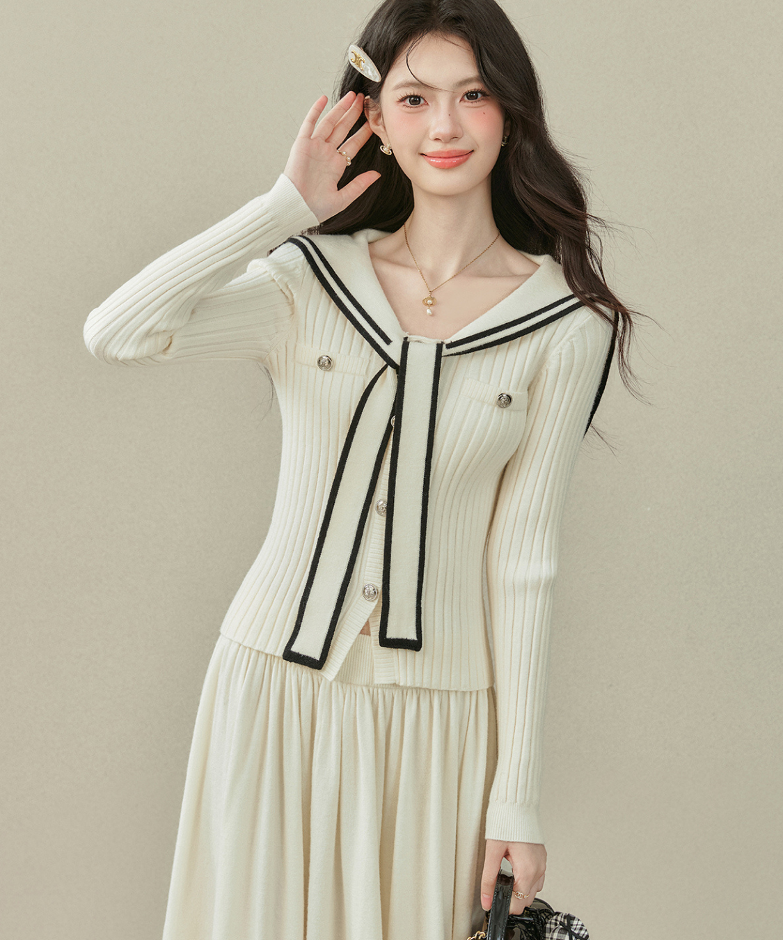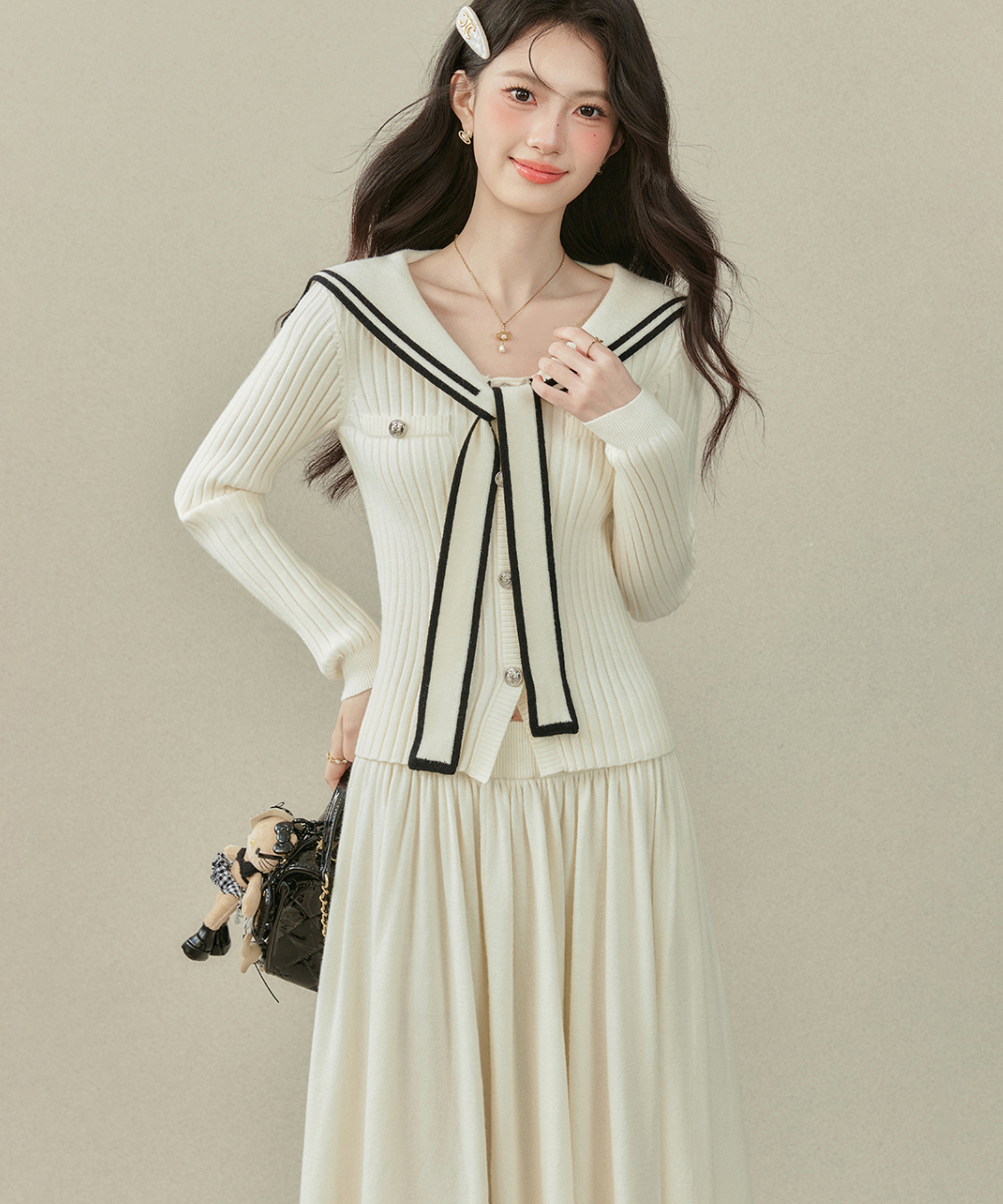 セーラーカラーが上品で、甘すぎない絶妙なバランス◎スカートのWラインもアクセントになっていて、セットで着ると完成度高め♡
