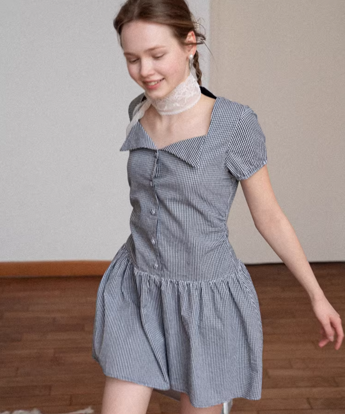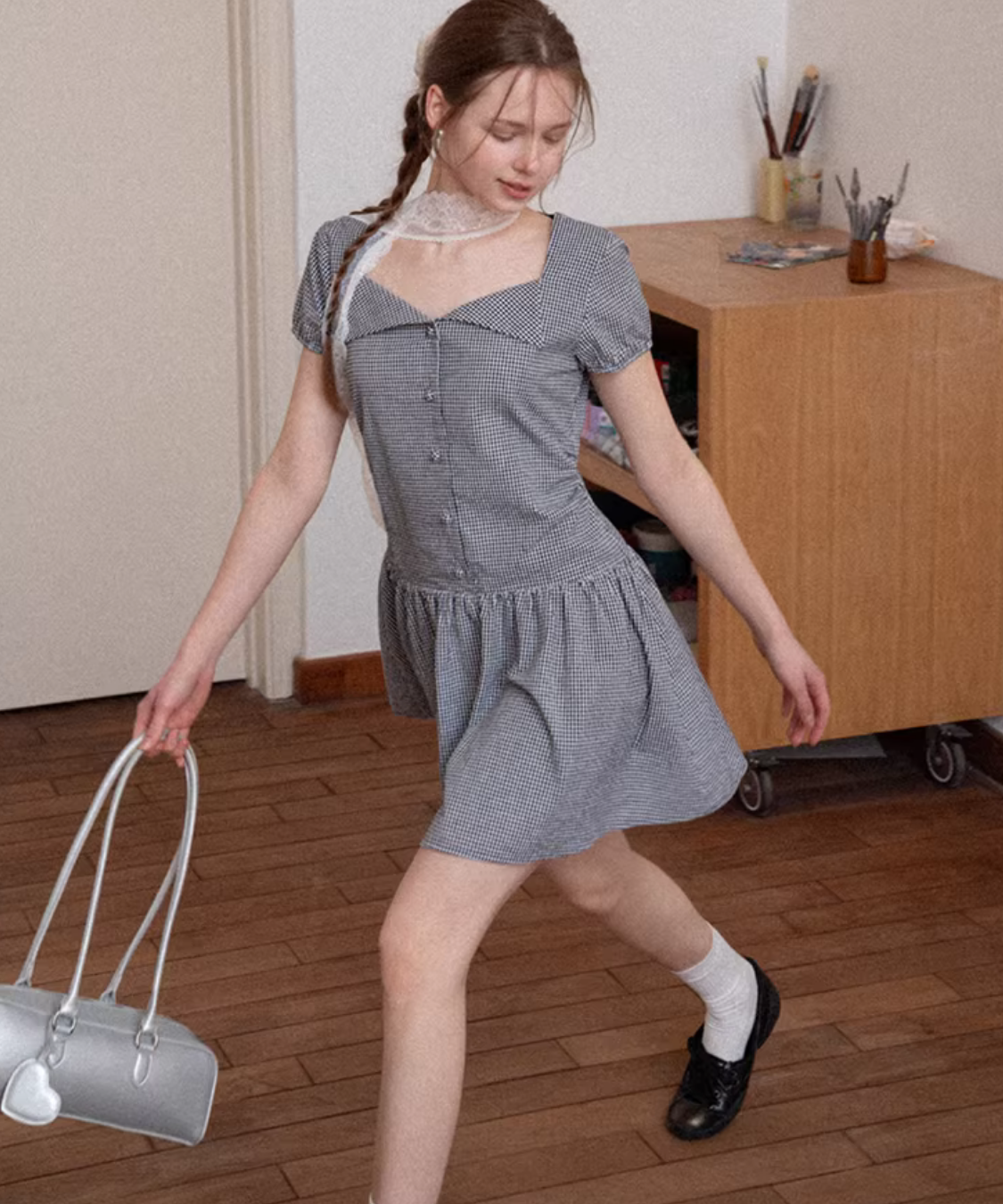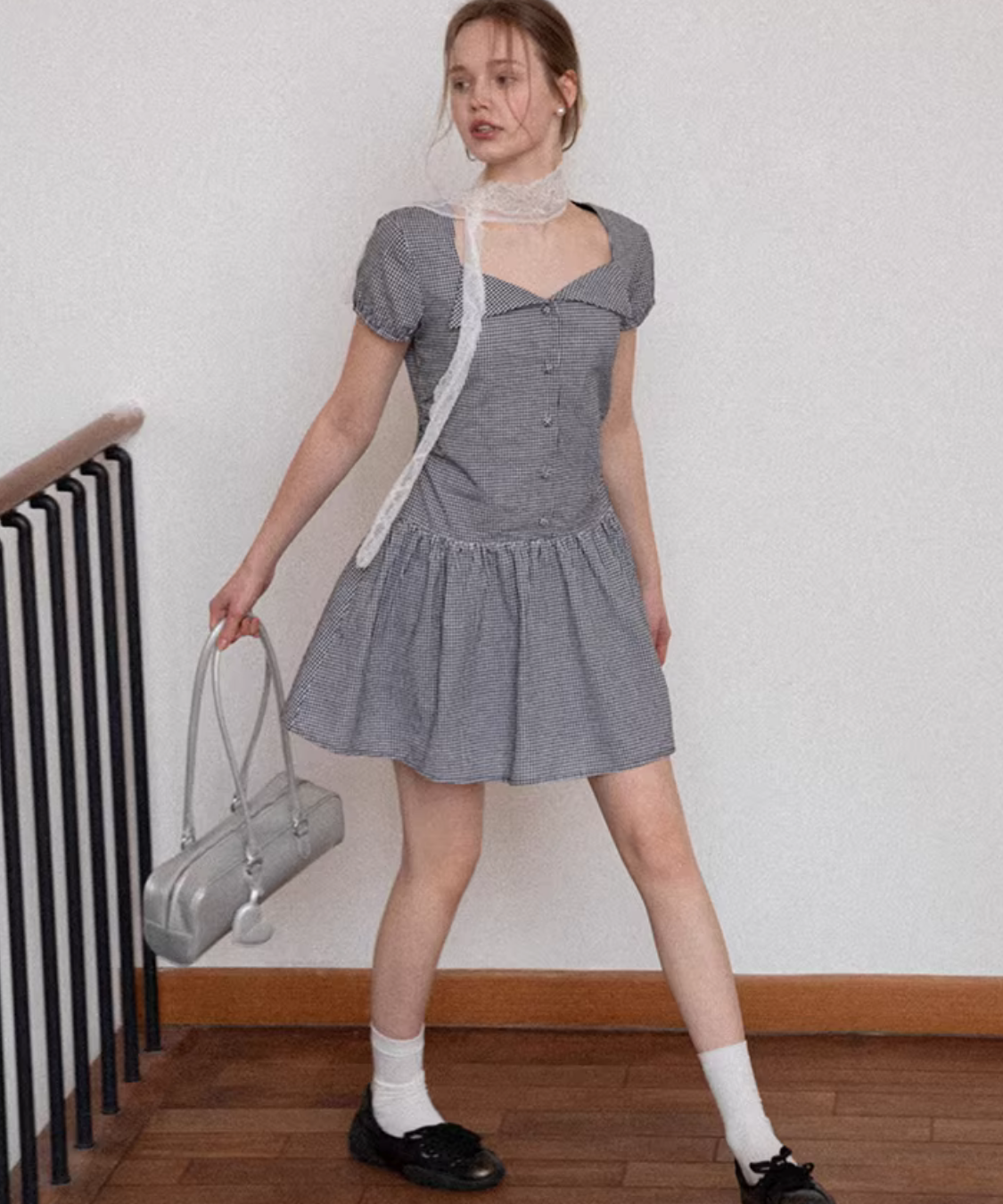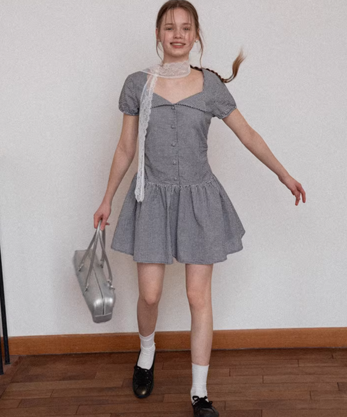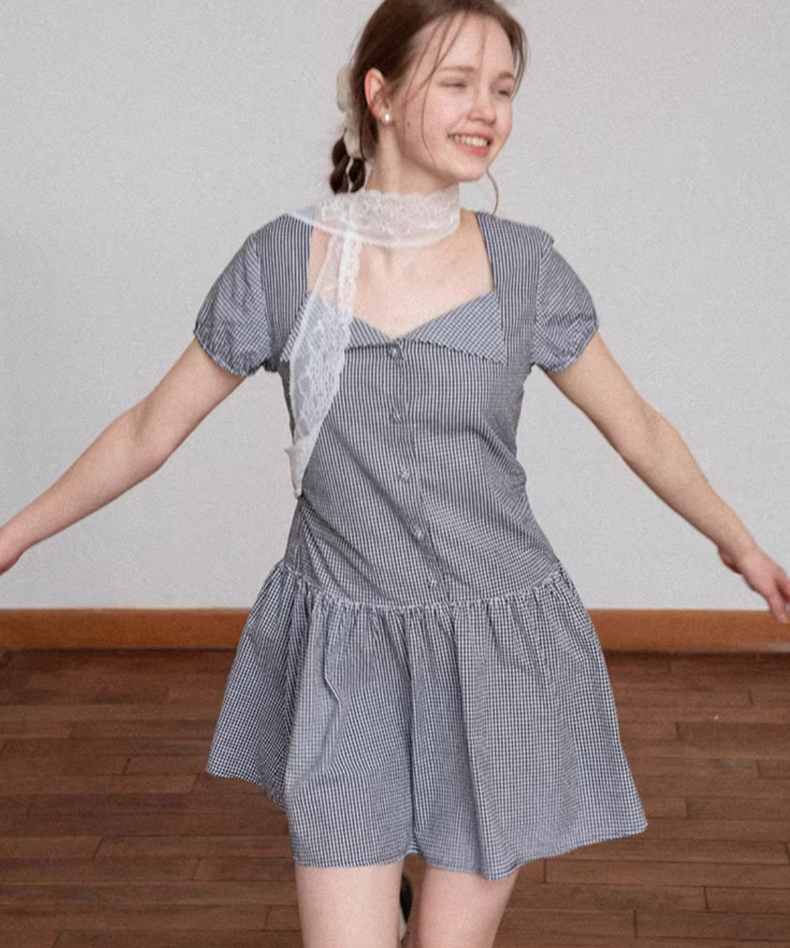 ギンガムチェックが爽やかに映える、ガーリーな雰囲気のフレアワンピースです。