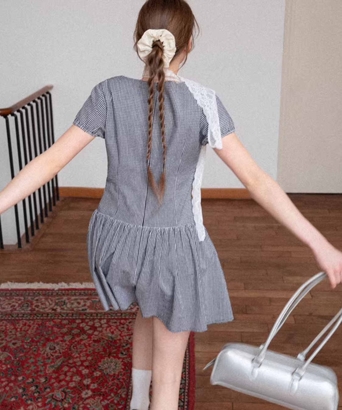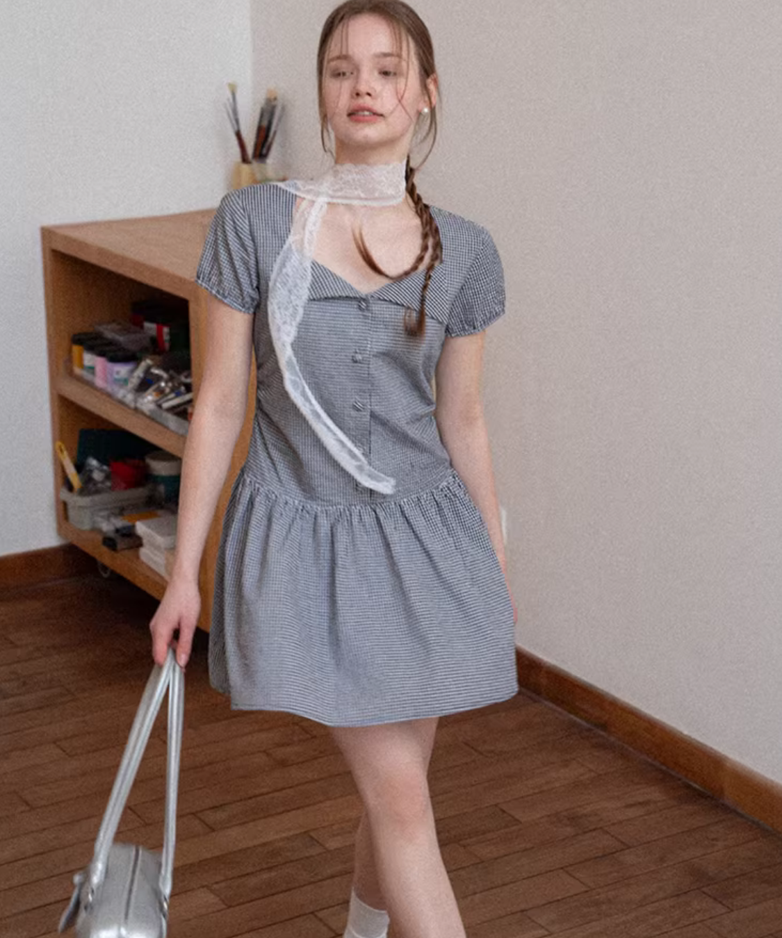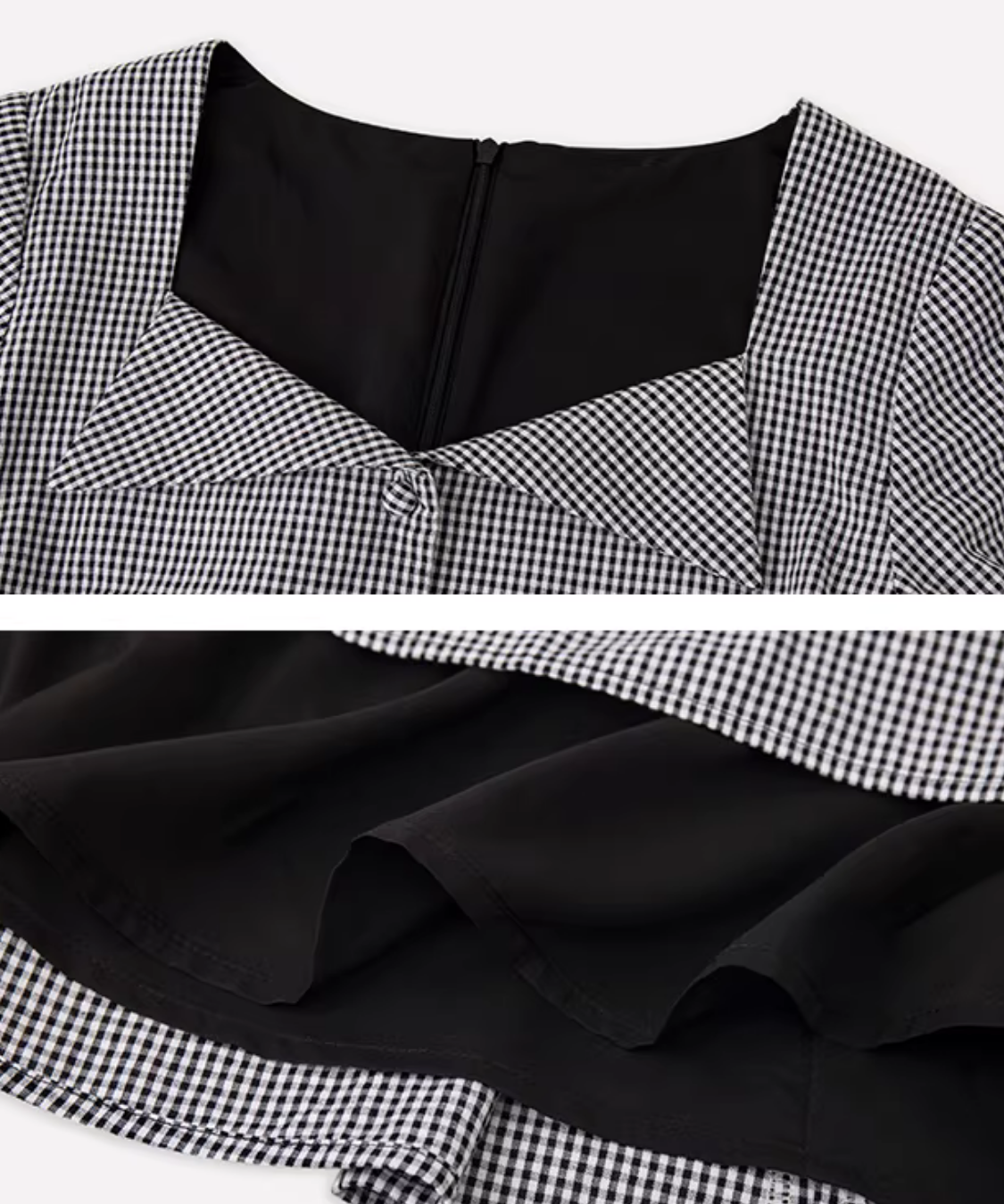 ギンガムチェックウエスト切替フレアワンピース