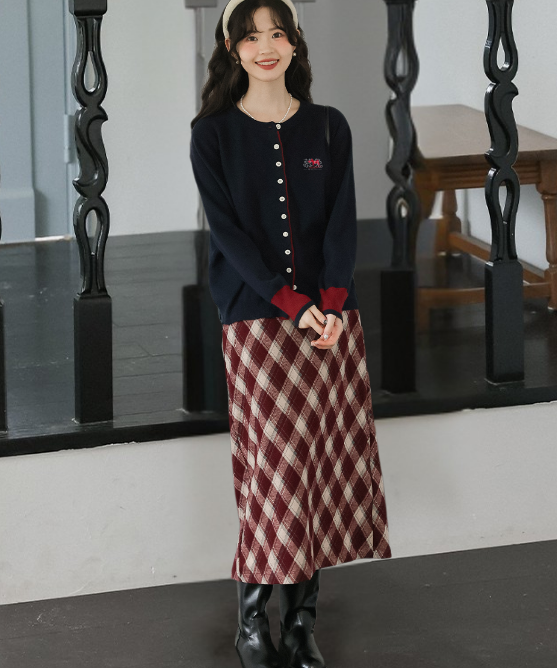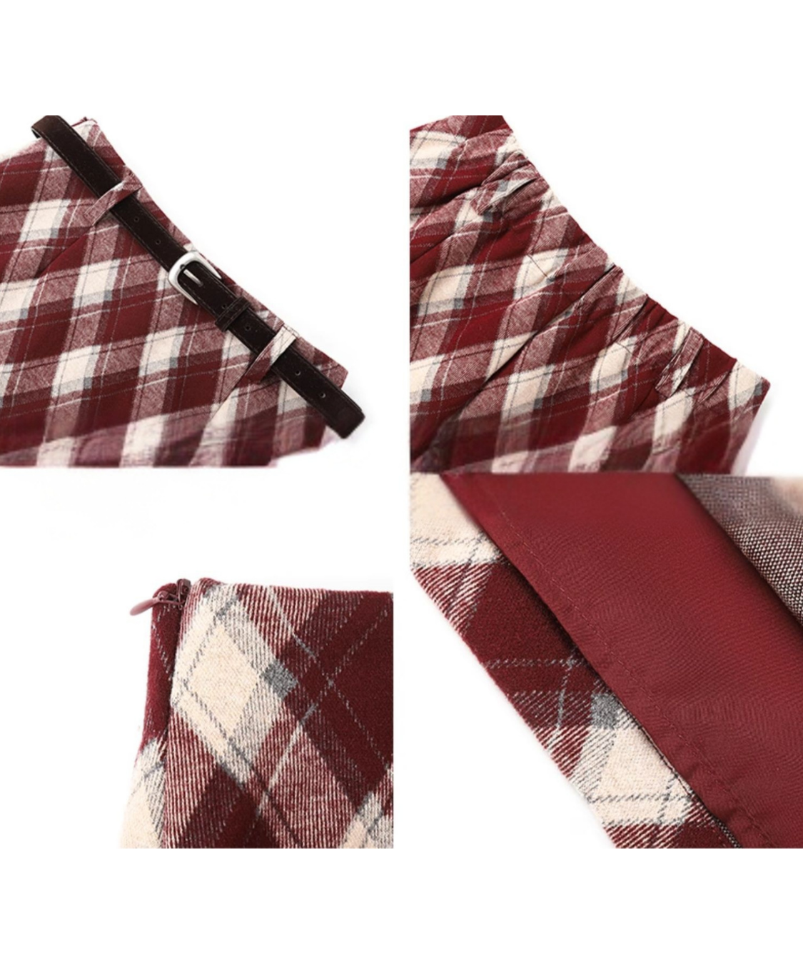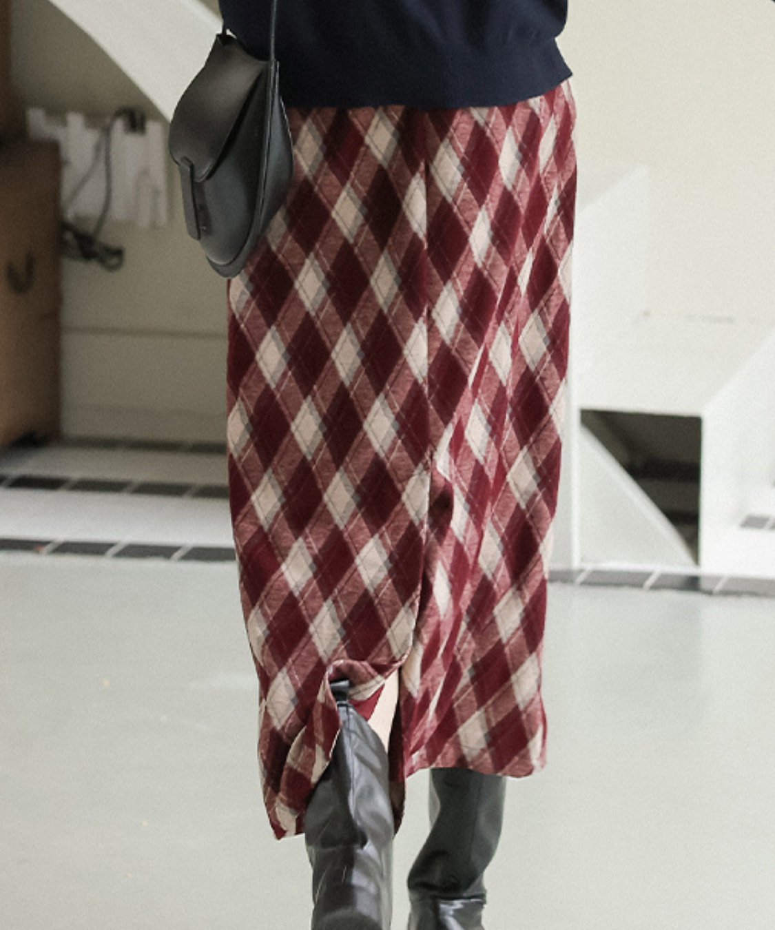 大きめのチェック柄が目を引く、クラシカルなムード漂うAラインスカートです。