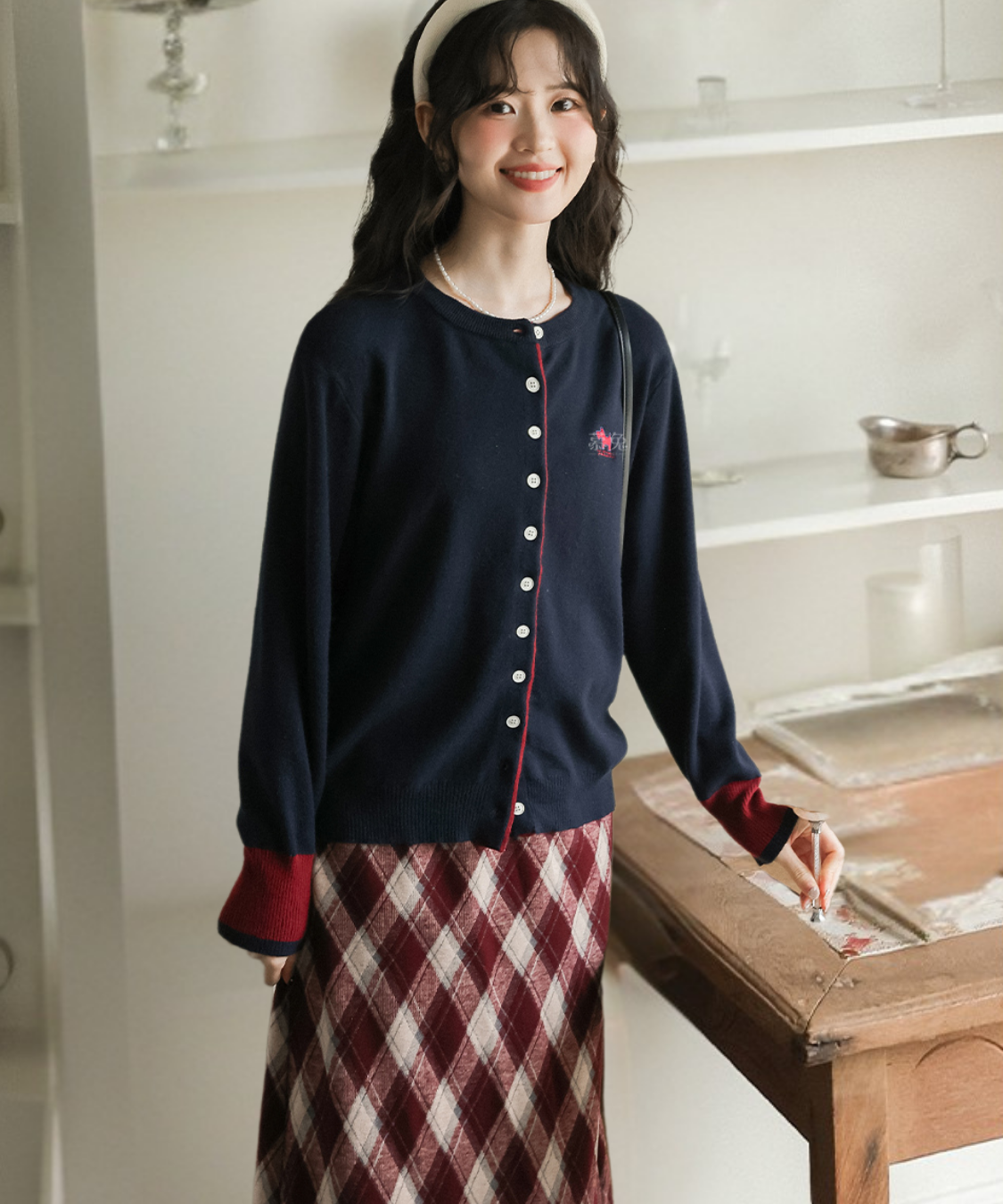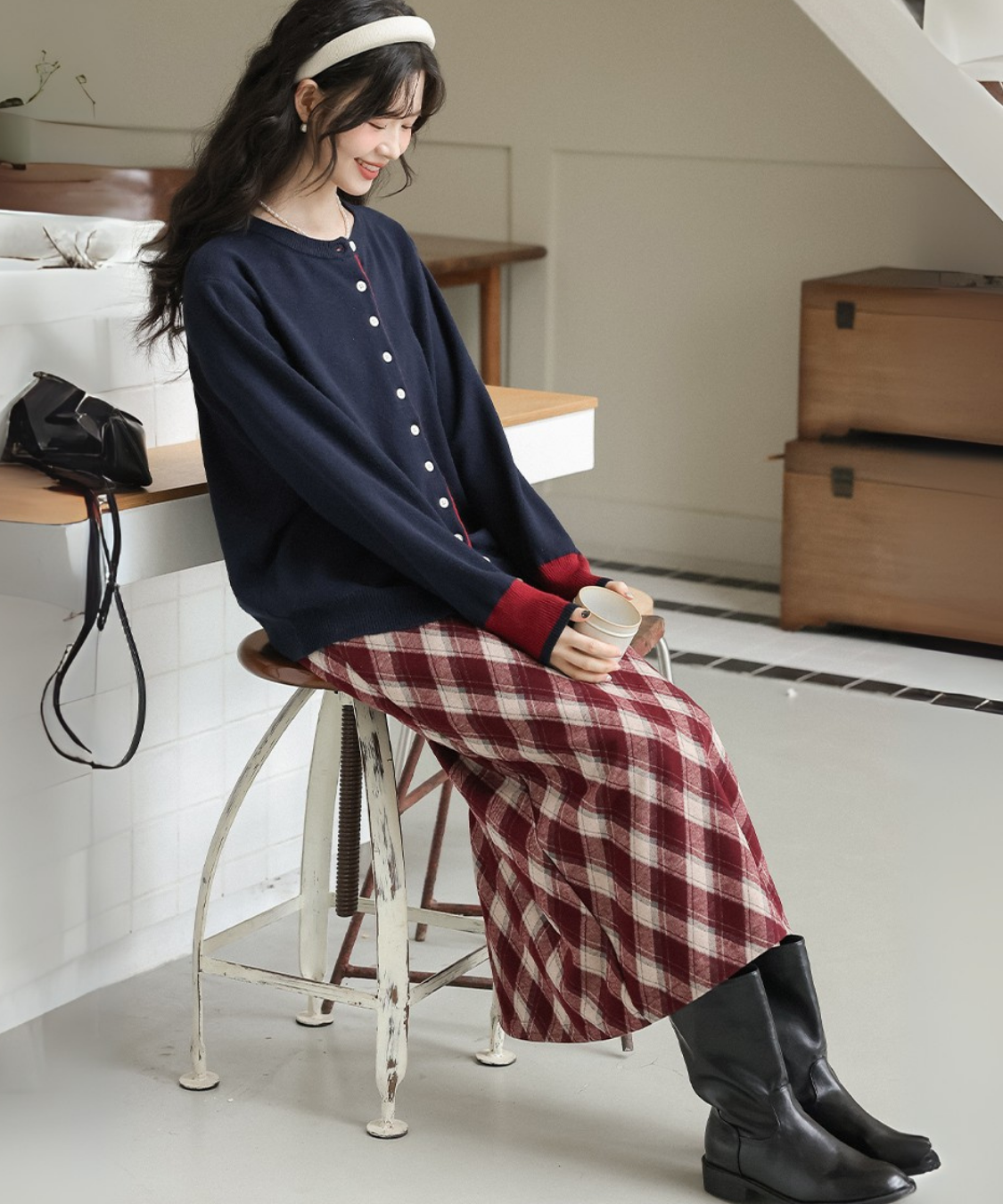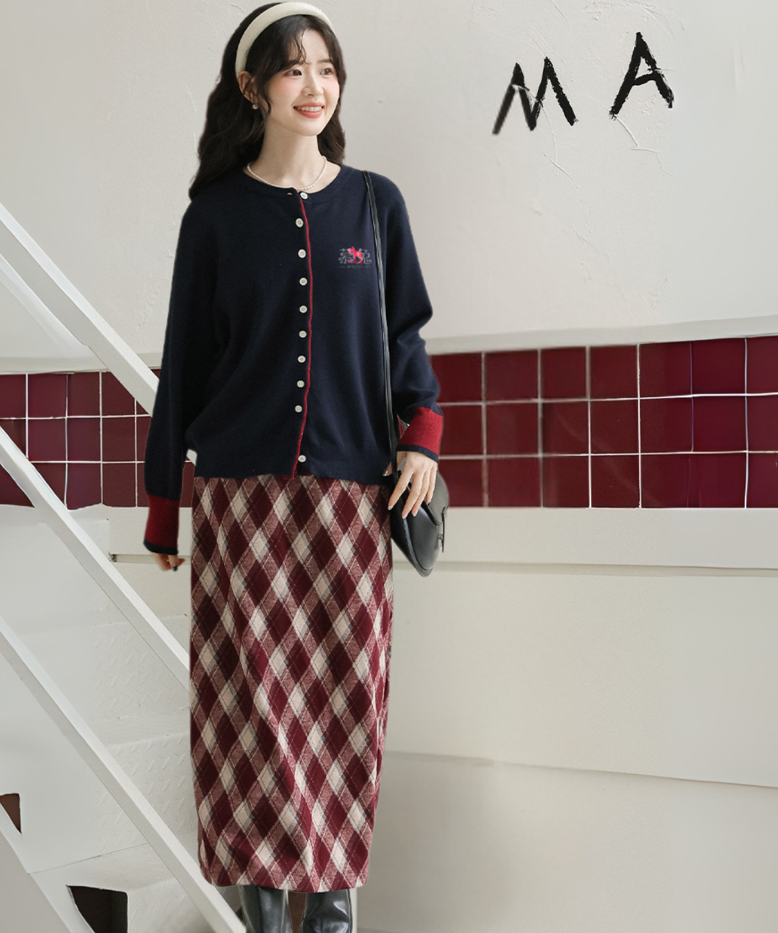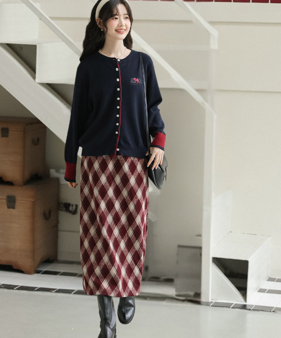 大きめのチェック柄が目を引く、クラシカルなムード漂うAラインスカートです。