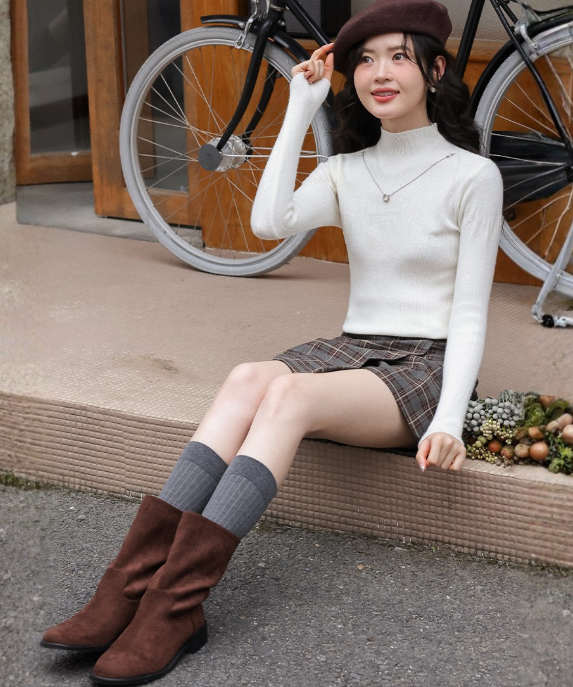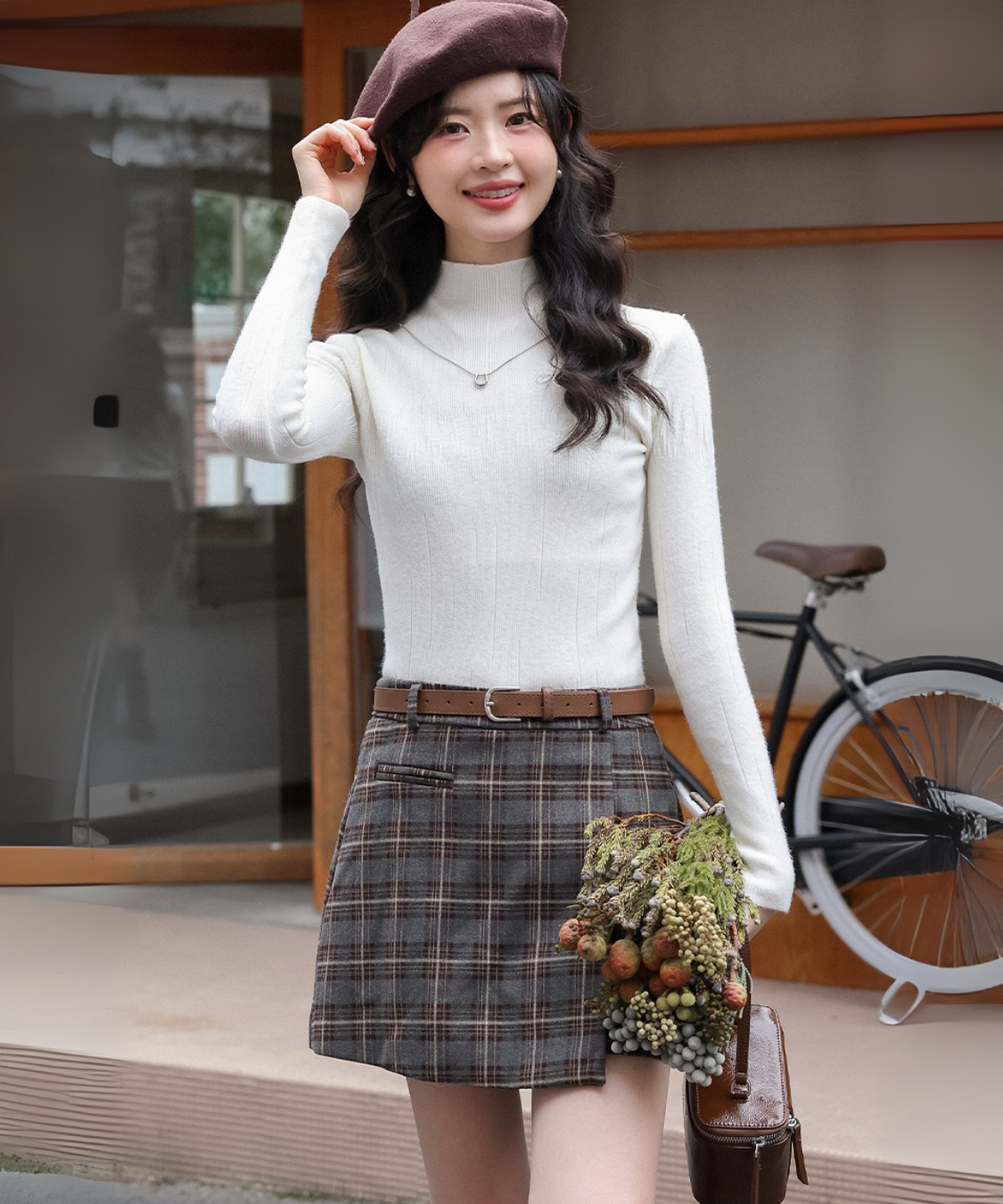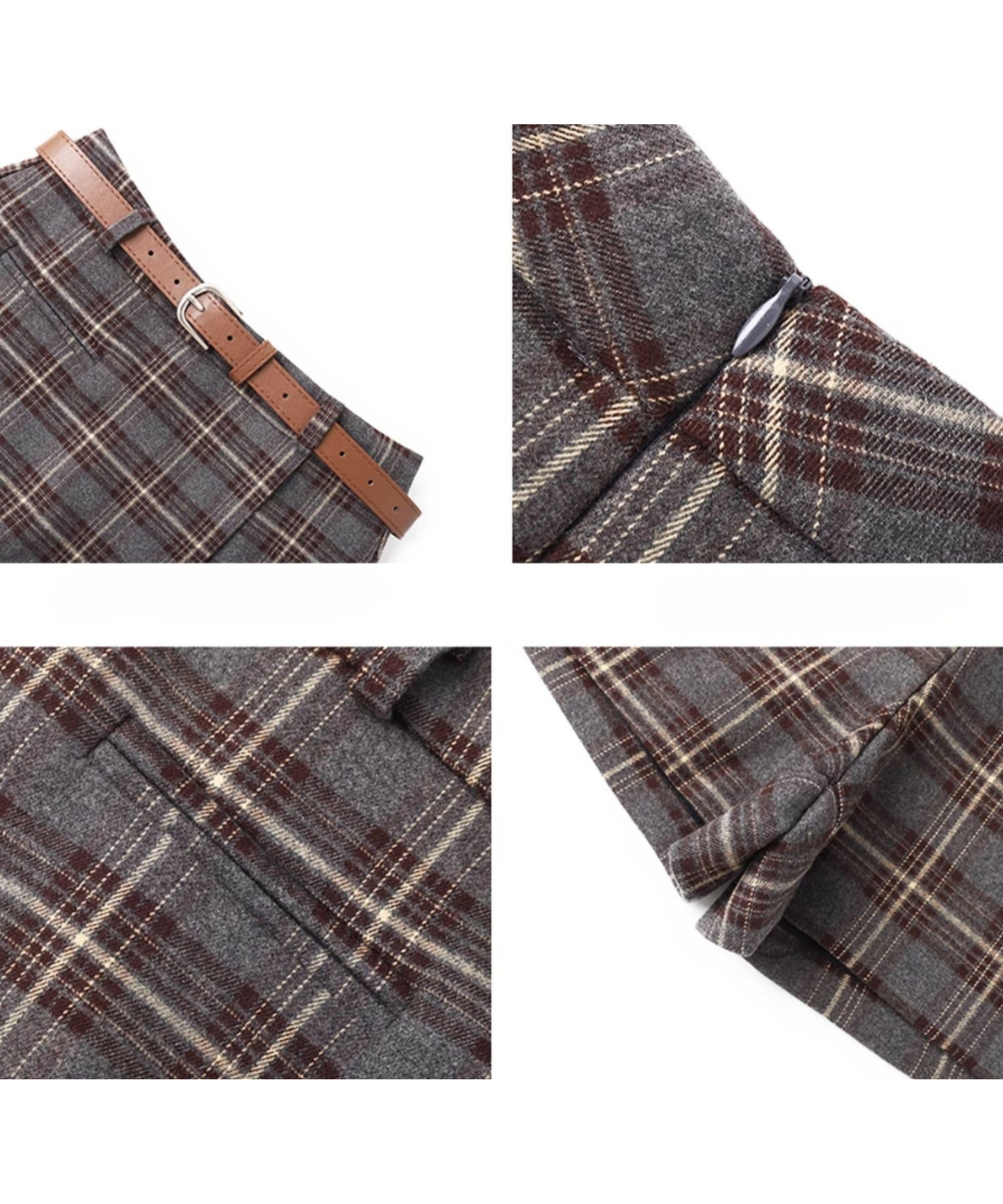 ラップ風デザインが上品さを演出するチェック柄スカパンです。
