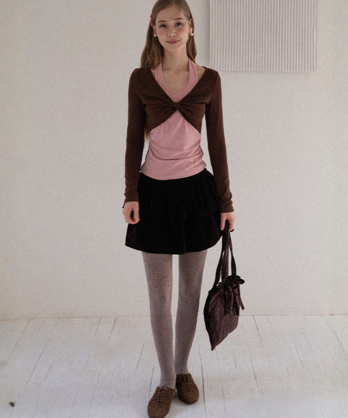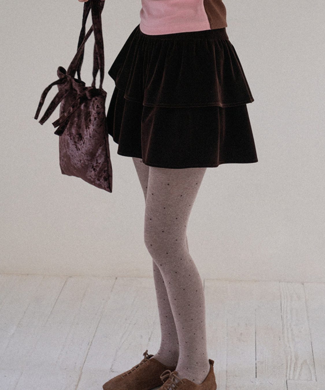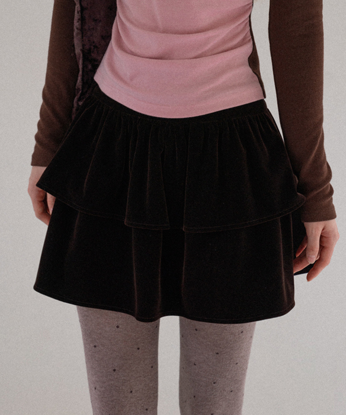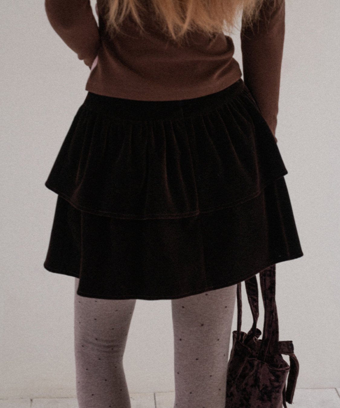 ティアードデザインが華やかで、存在感のあるベロアミニスカートです。