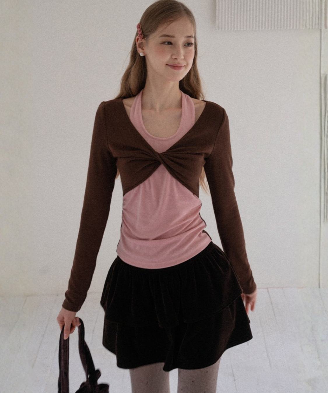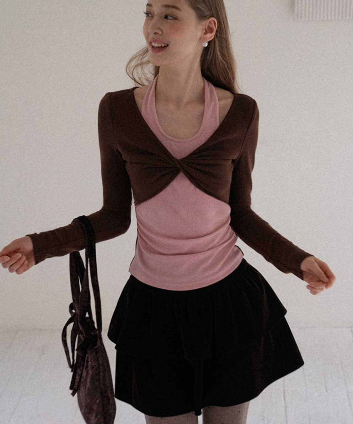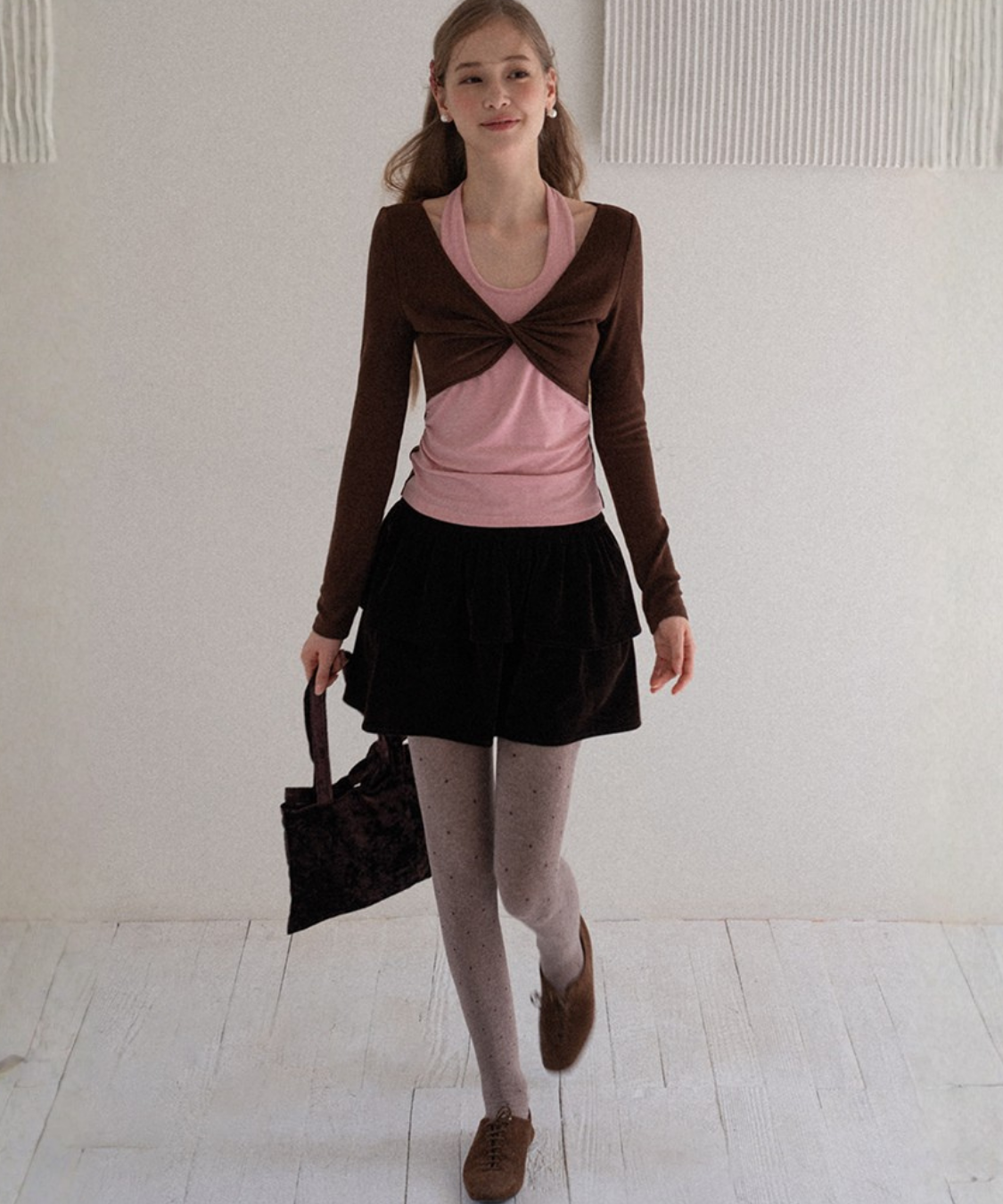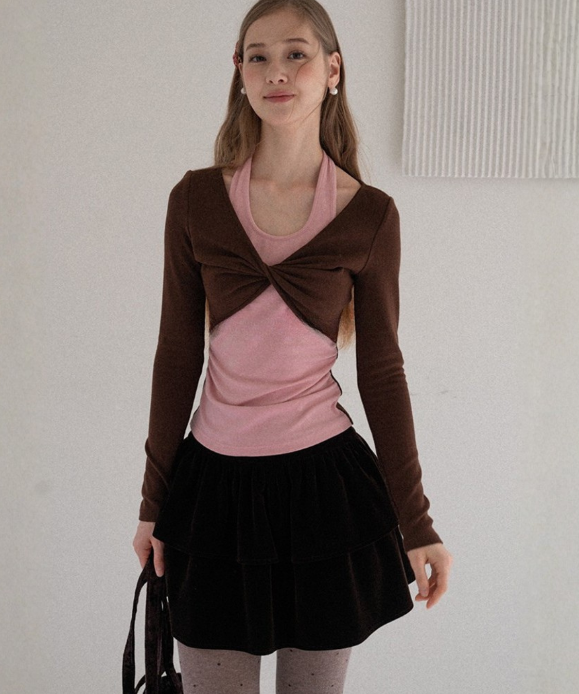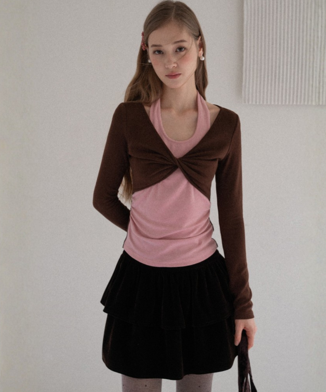 ティアードデザインベロアミニスカート