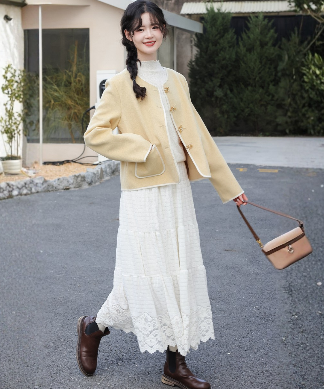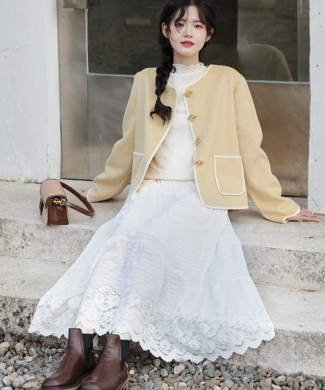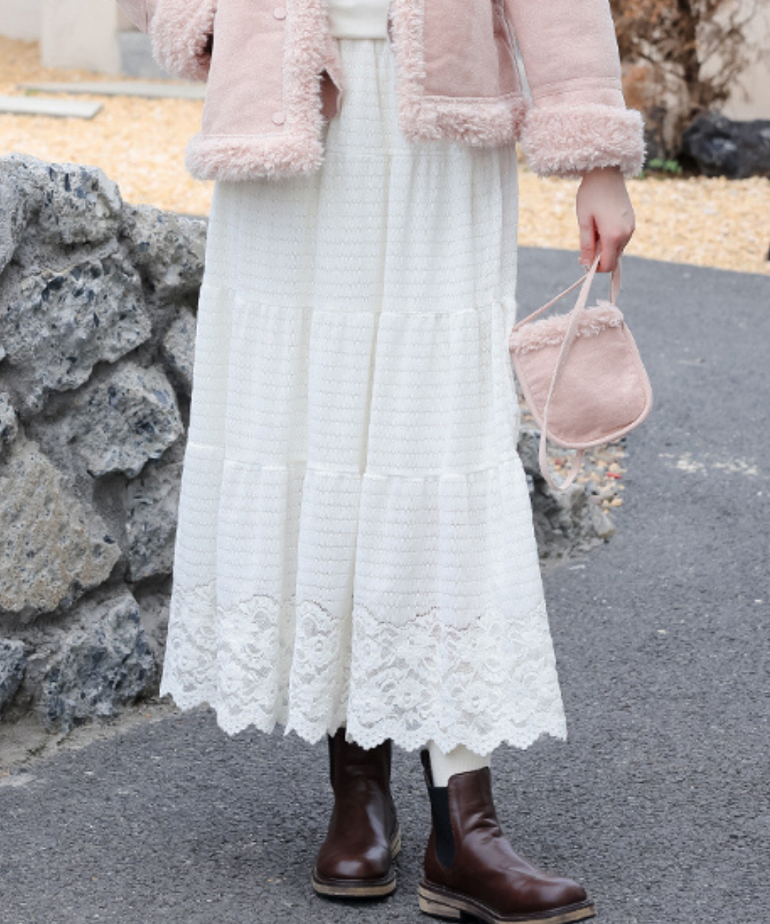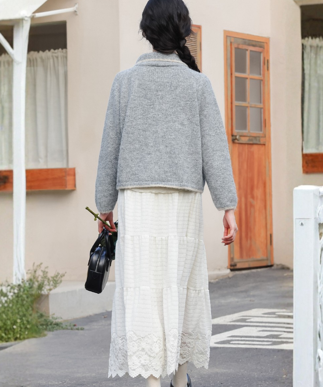 裾のスカラップレースがクラシカルなムードを引き立てます。