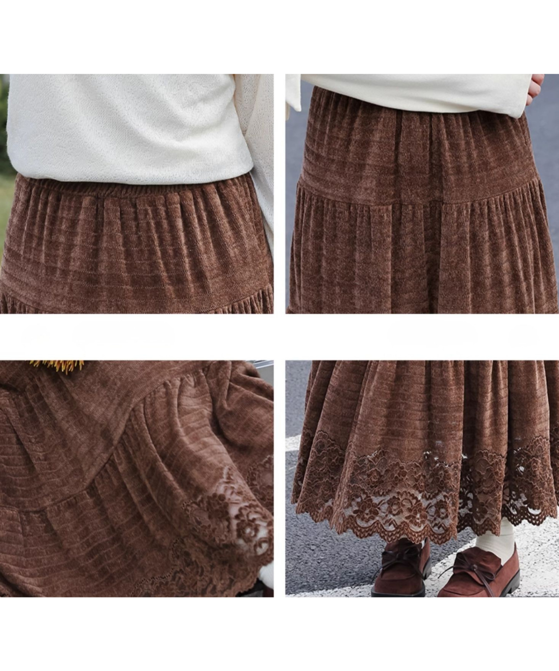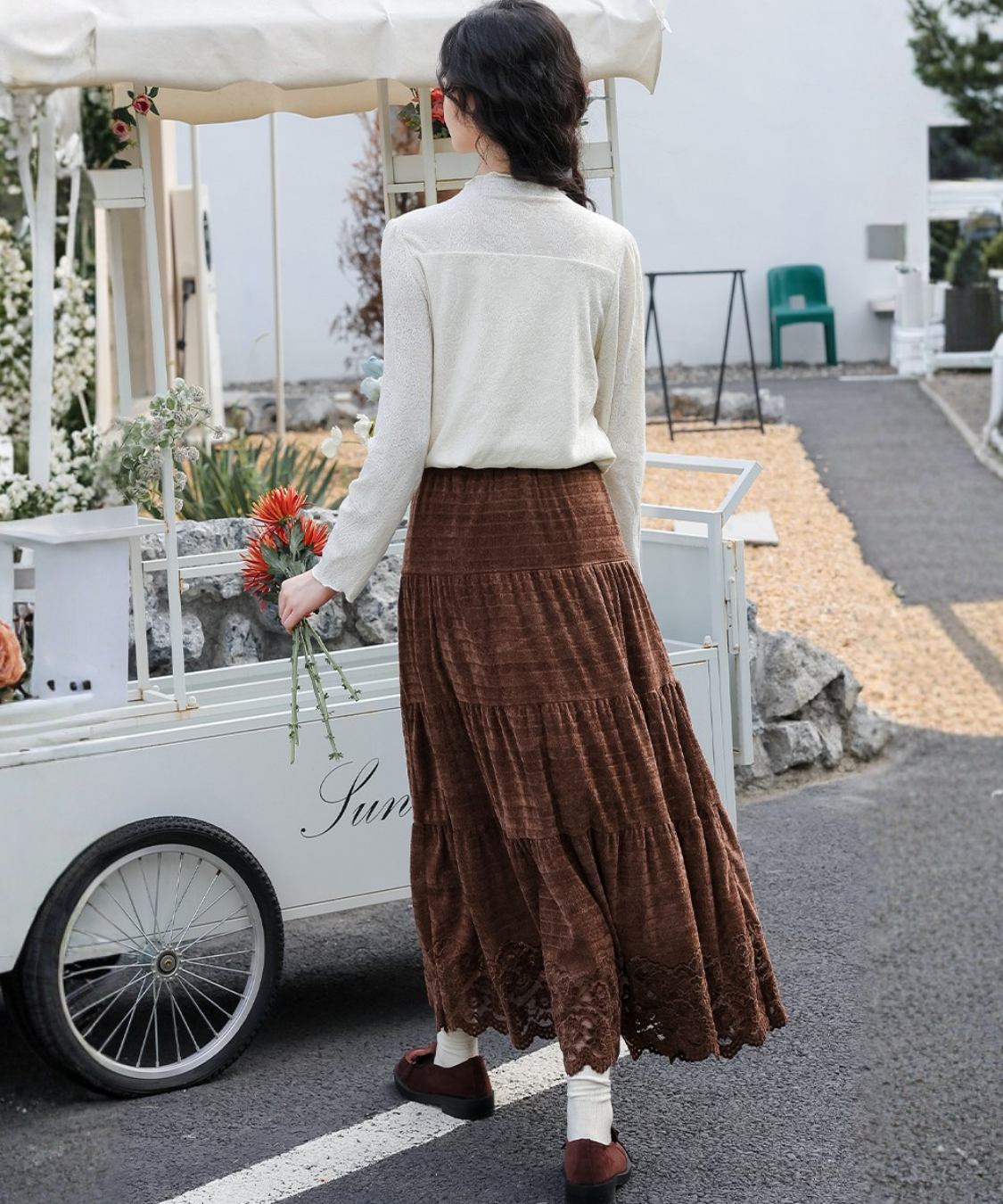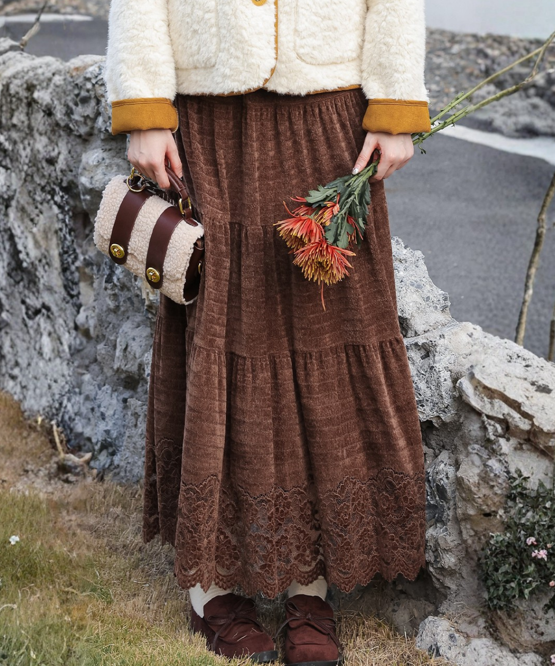 ティアード切り替えデザインが軽やかで女性らしいロングスカート。