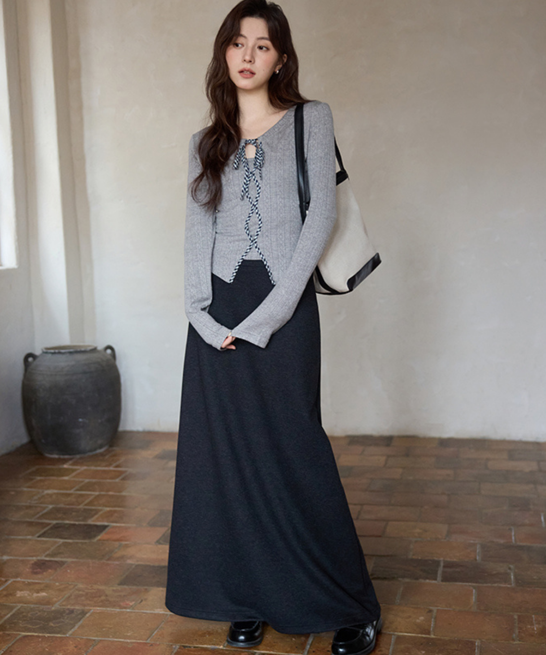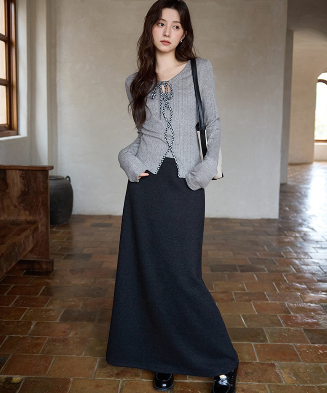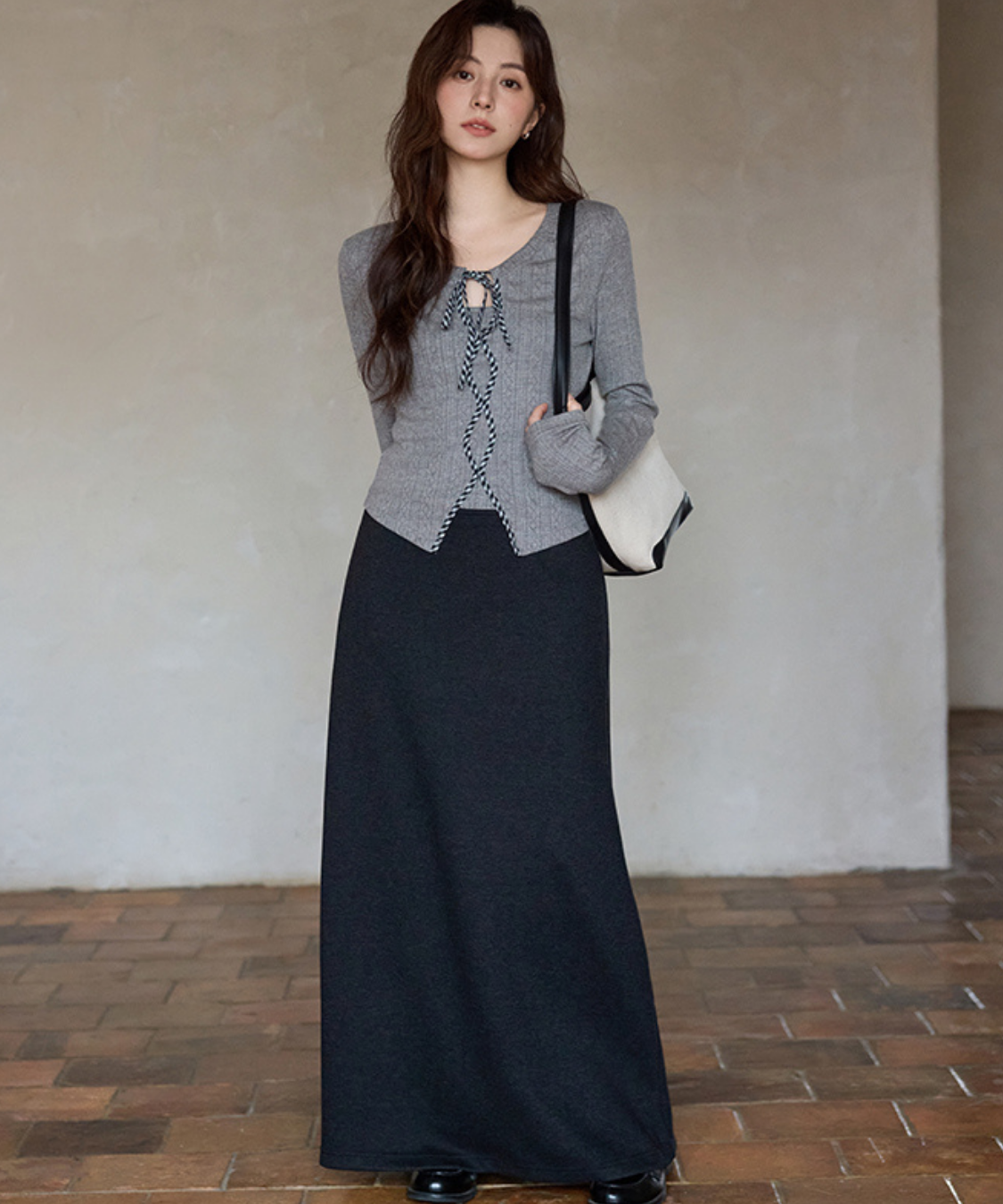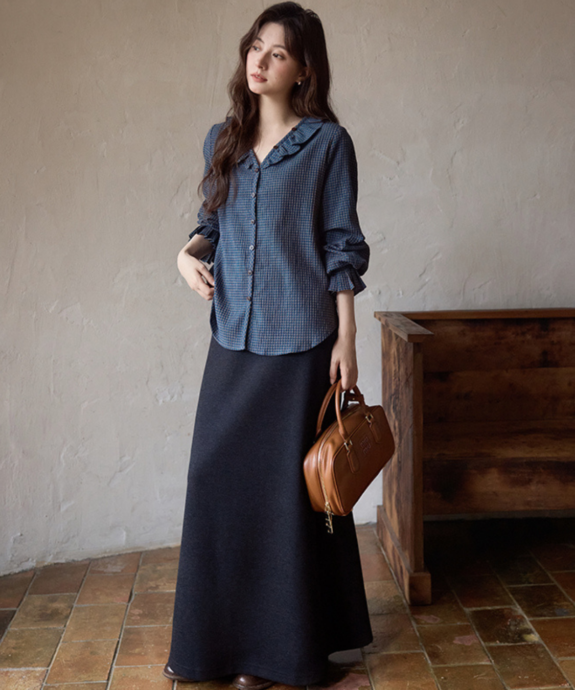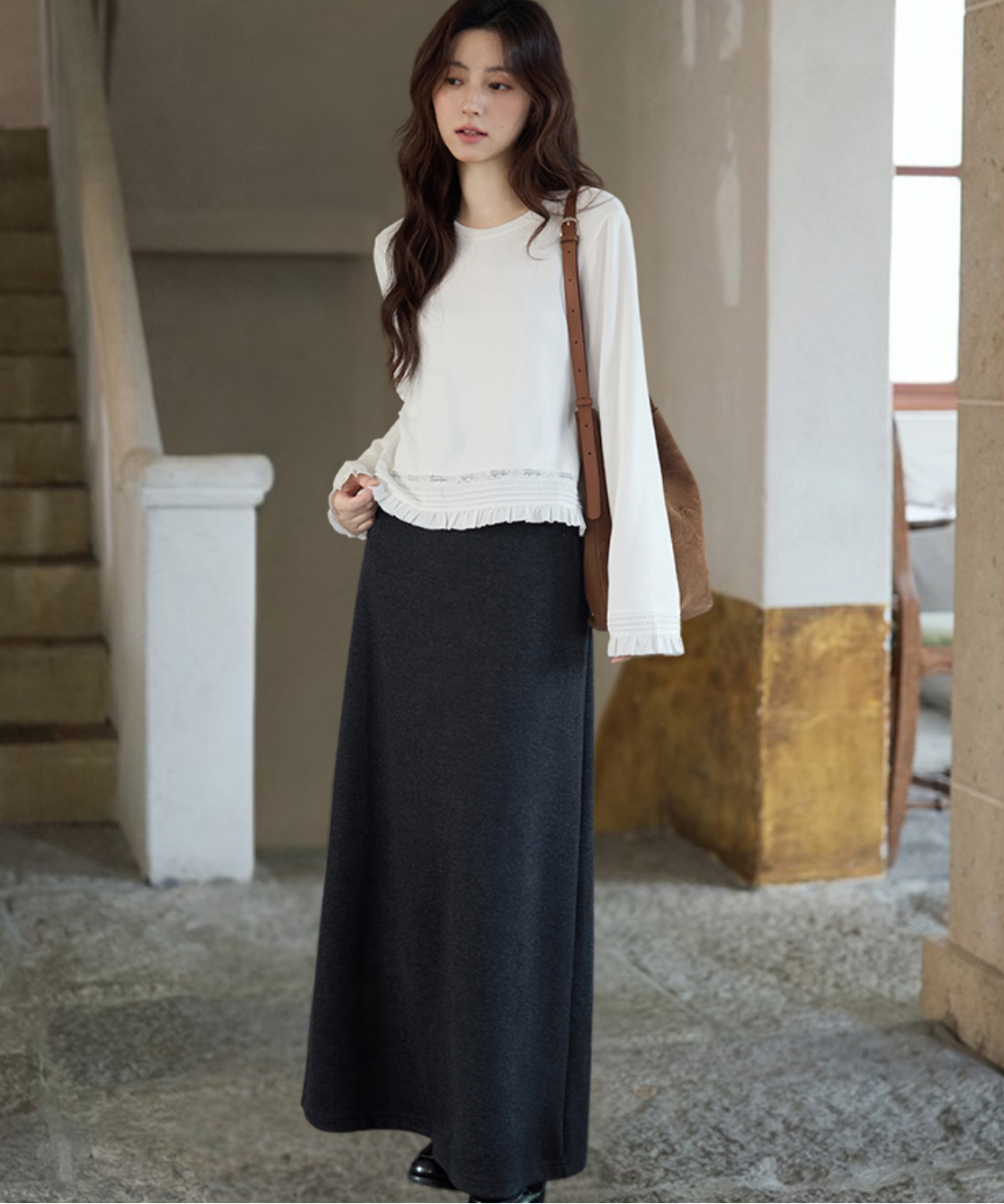 すとんと落ちるAラインシルエットが美しいロングスカートです。