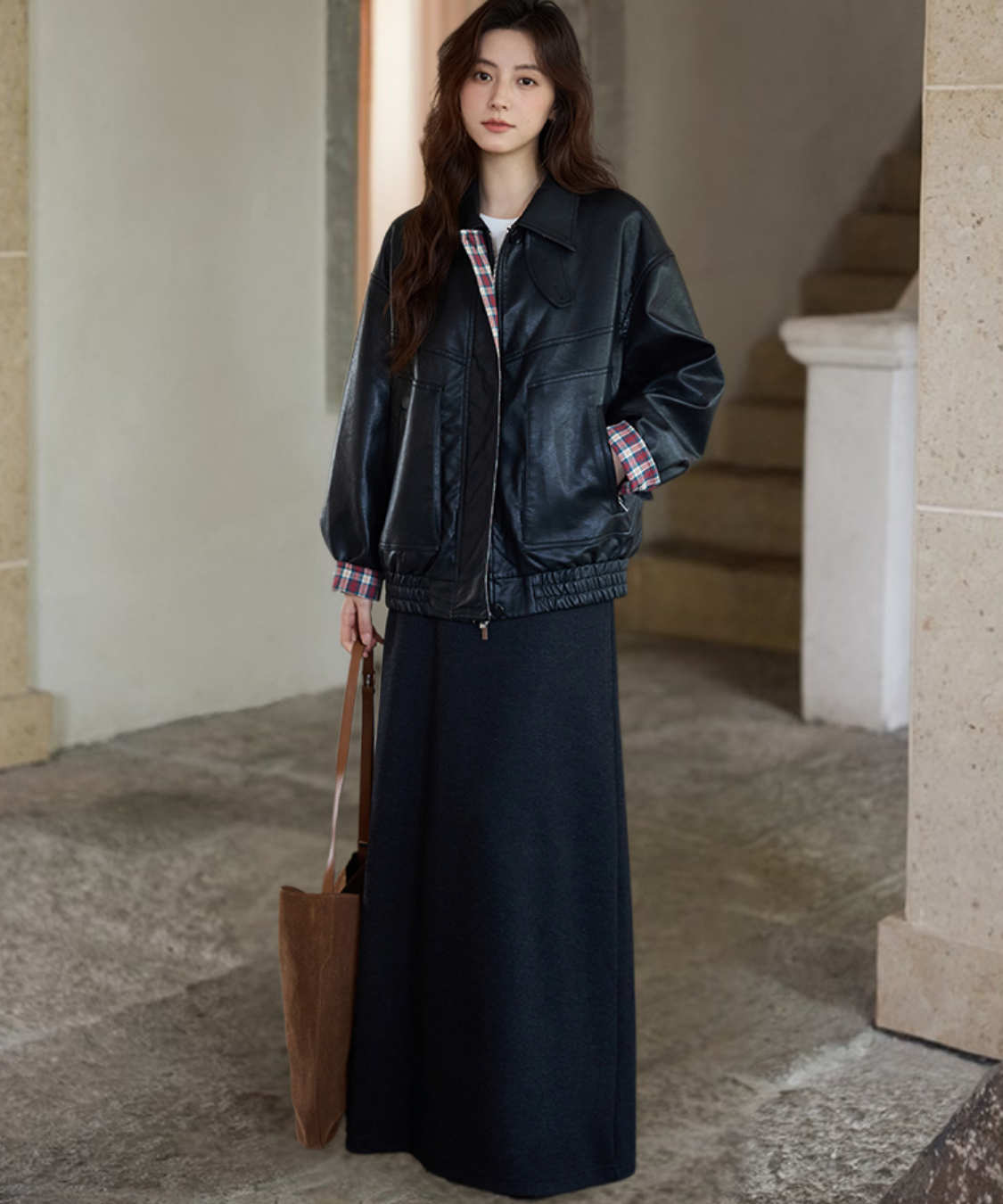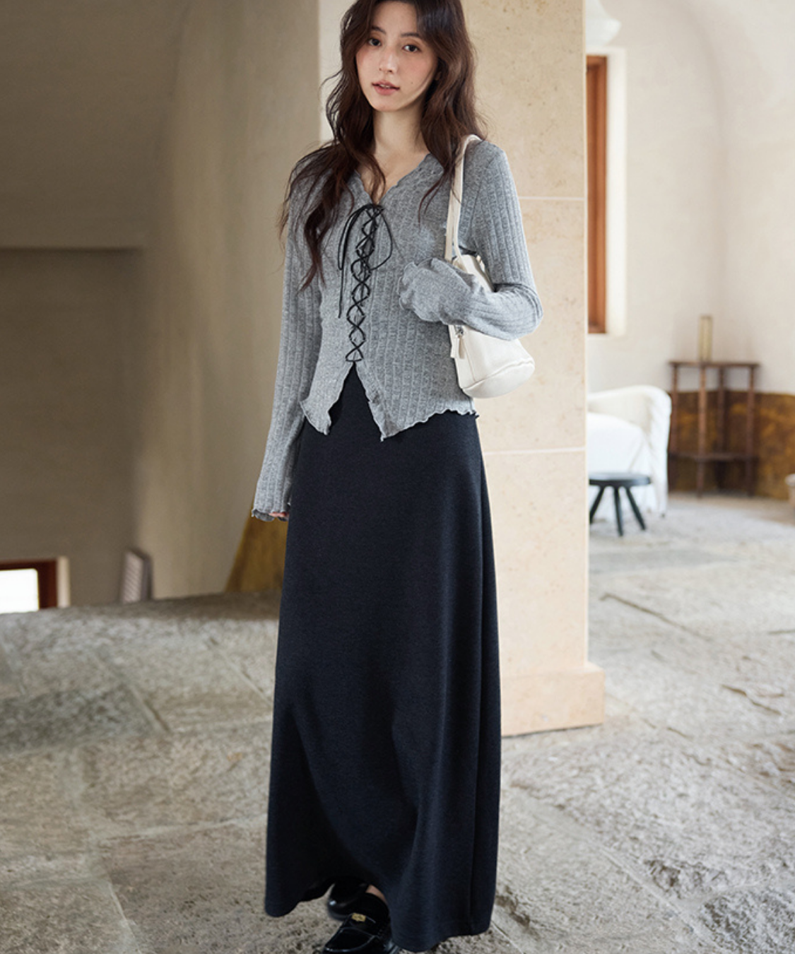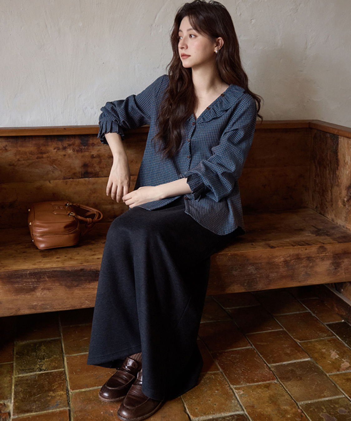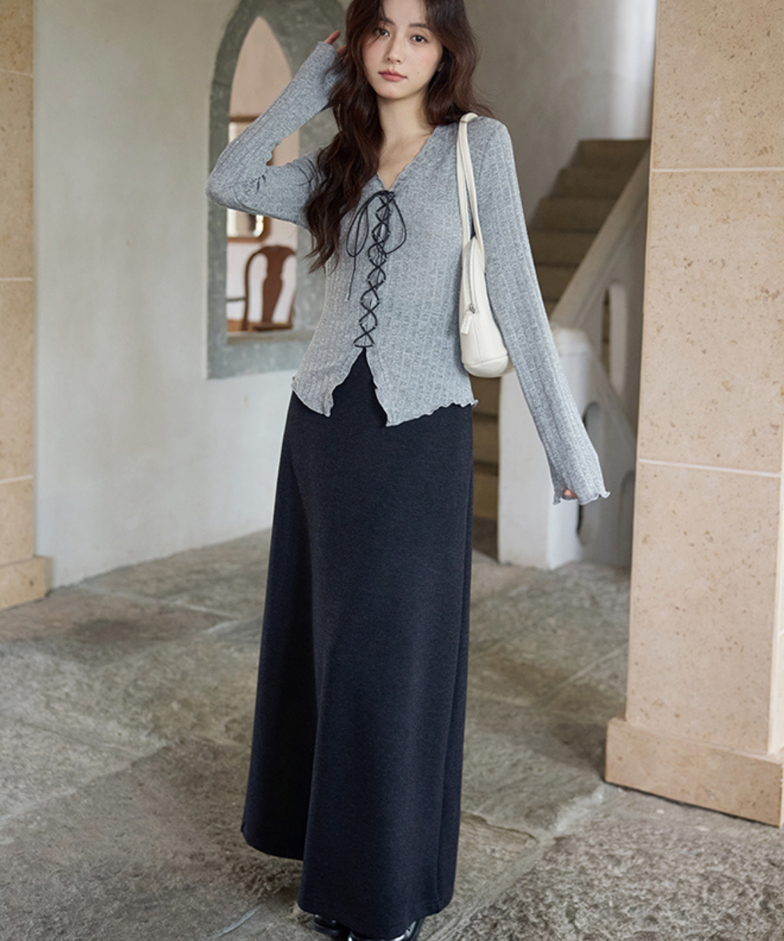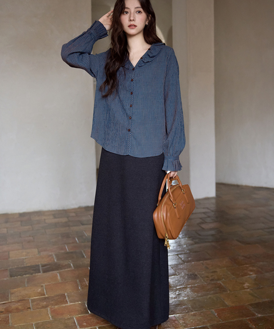 すとんと落ちるAラインシルエットが美しいロングスカートです。