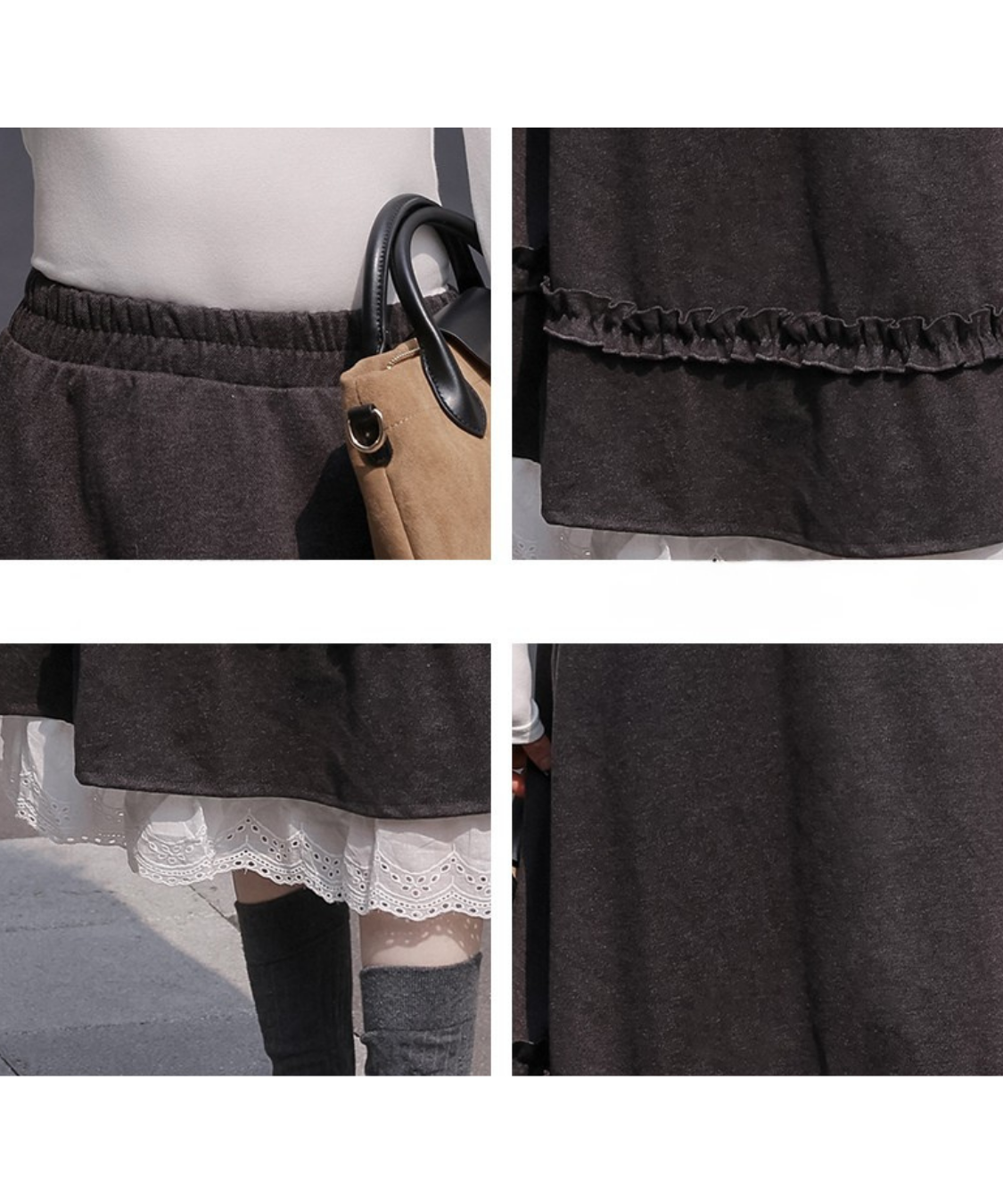 裾から覗くレースがペチコート風のデザインになった、ほんのり甘さのあるAラインスカートです。
