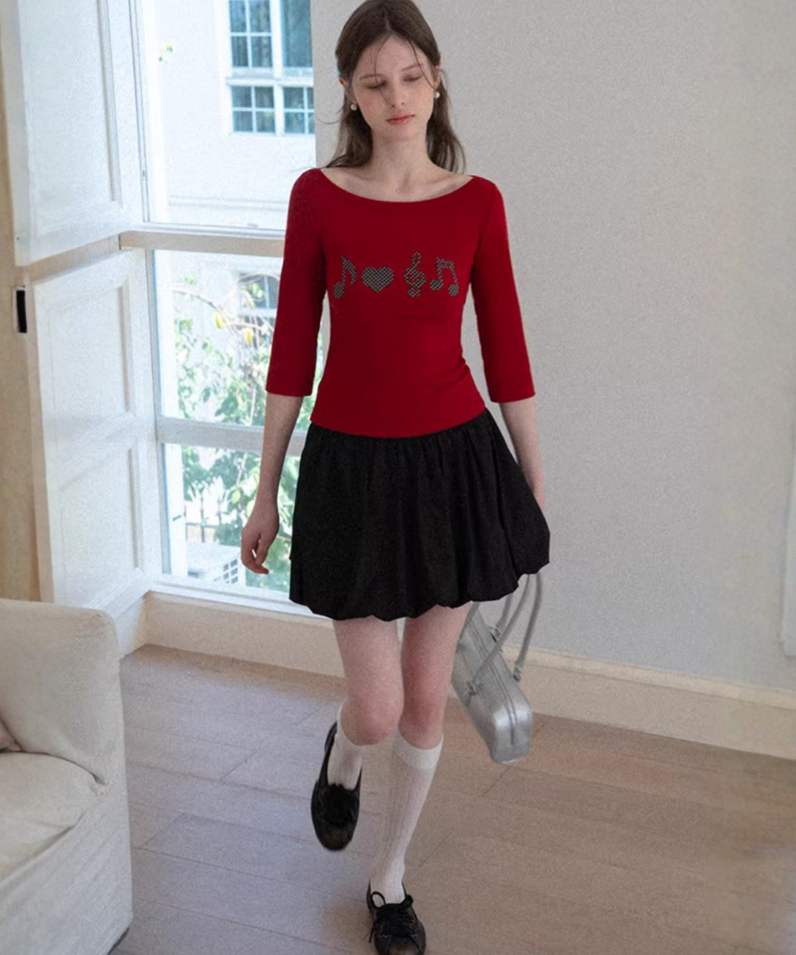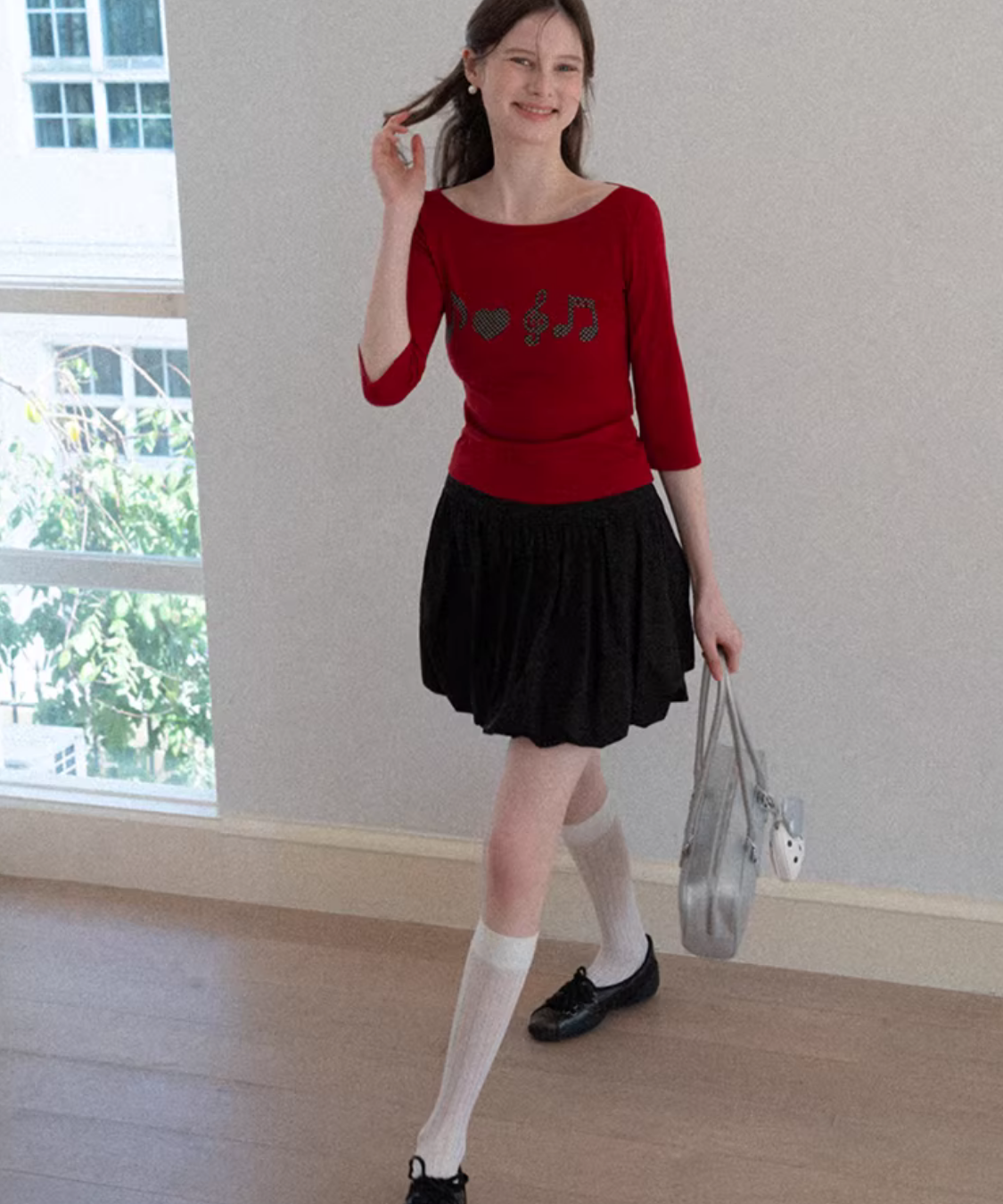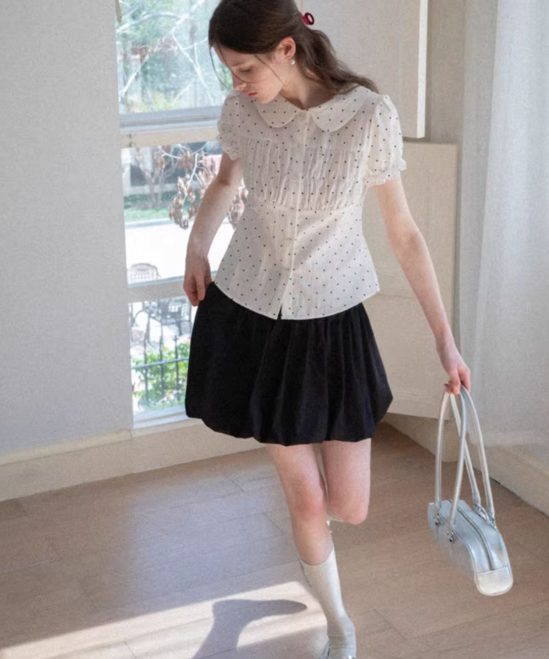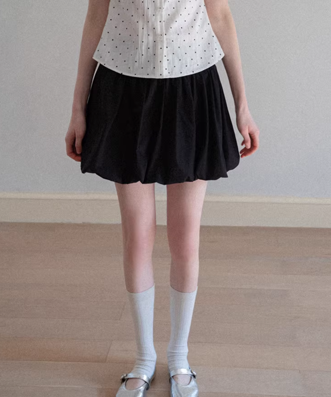 ふんわりと丸みのあるシルエットが可愛らしいバルーンミニスカートです。