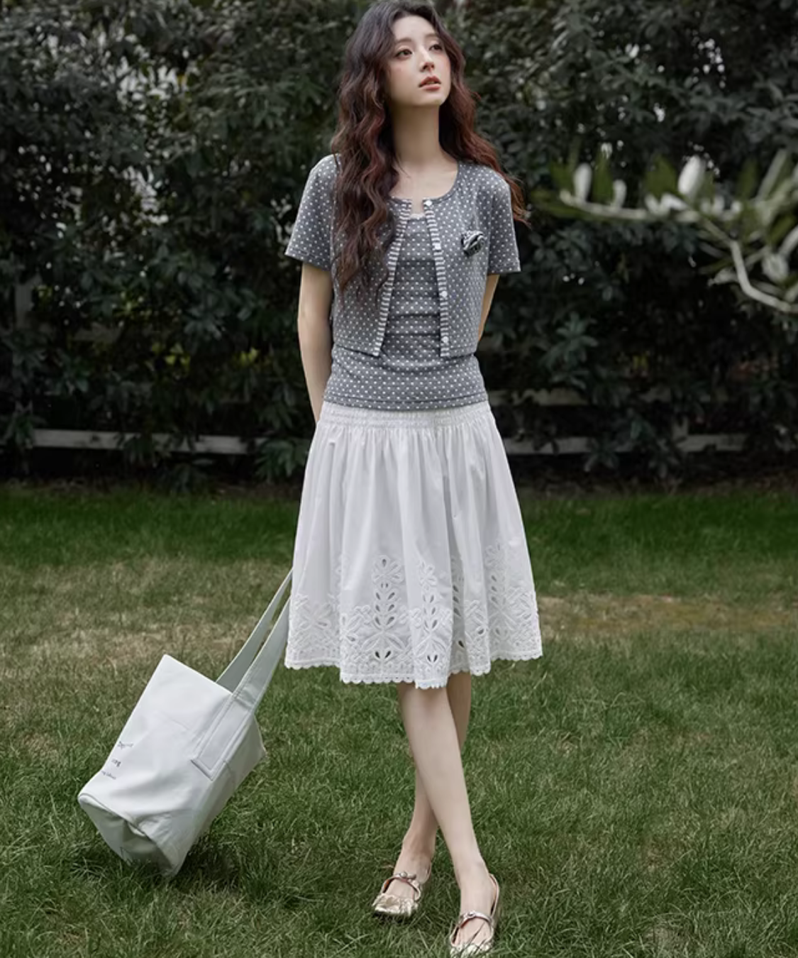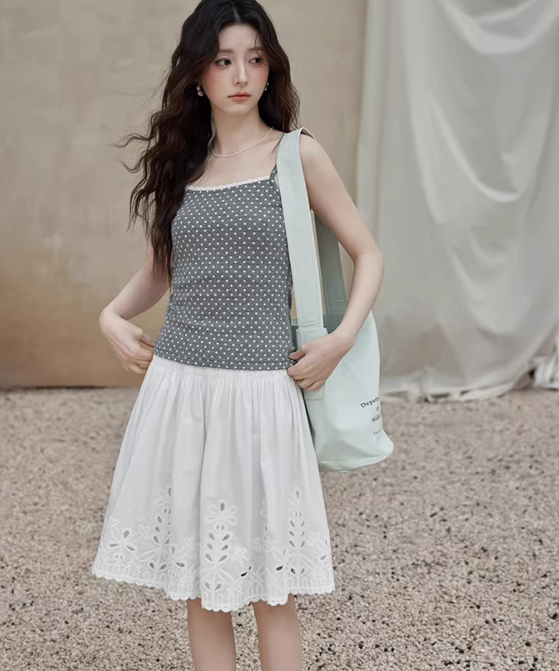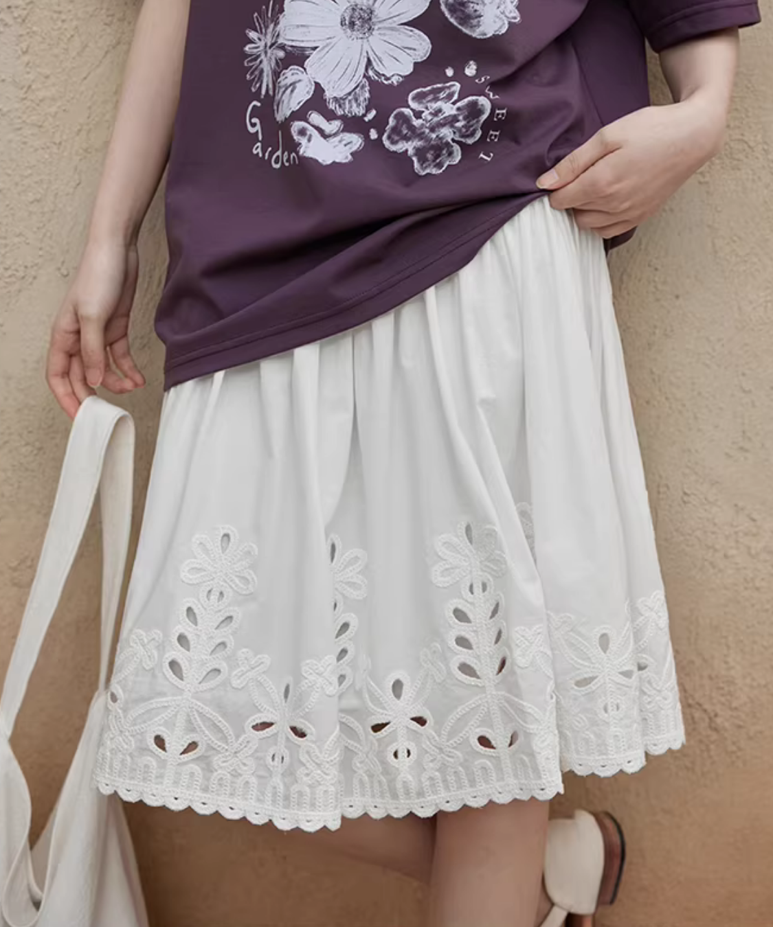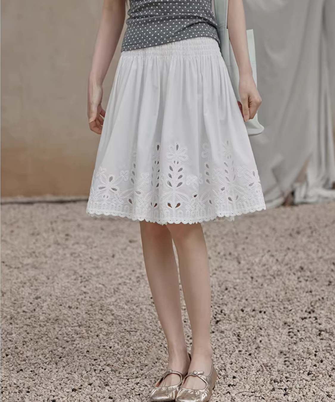 カットワークレーススカラップヘムスカート