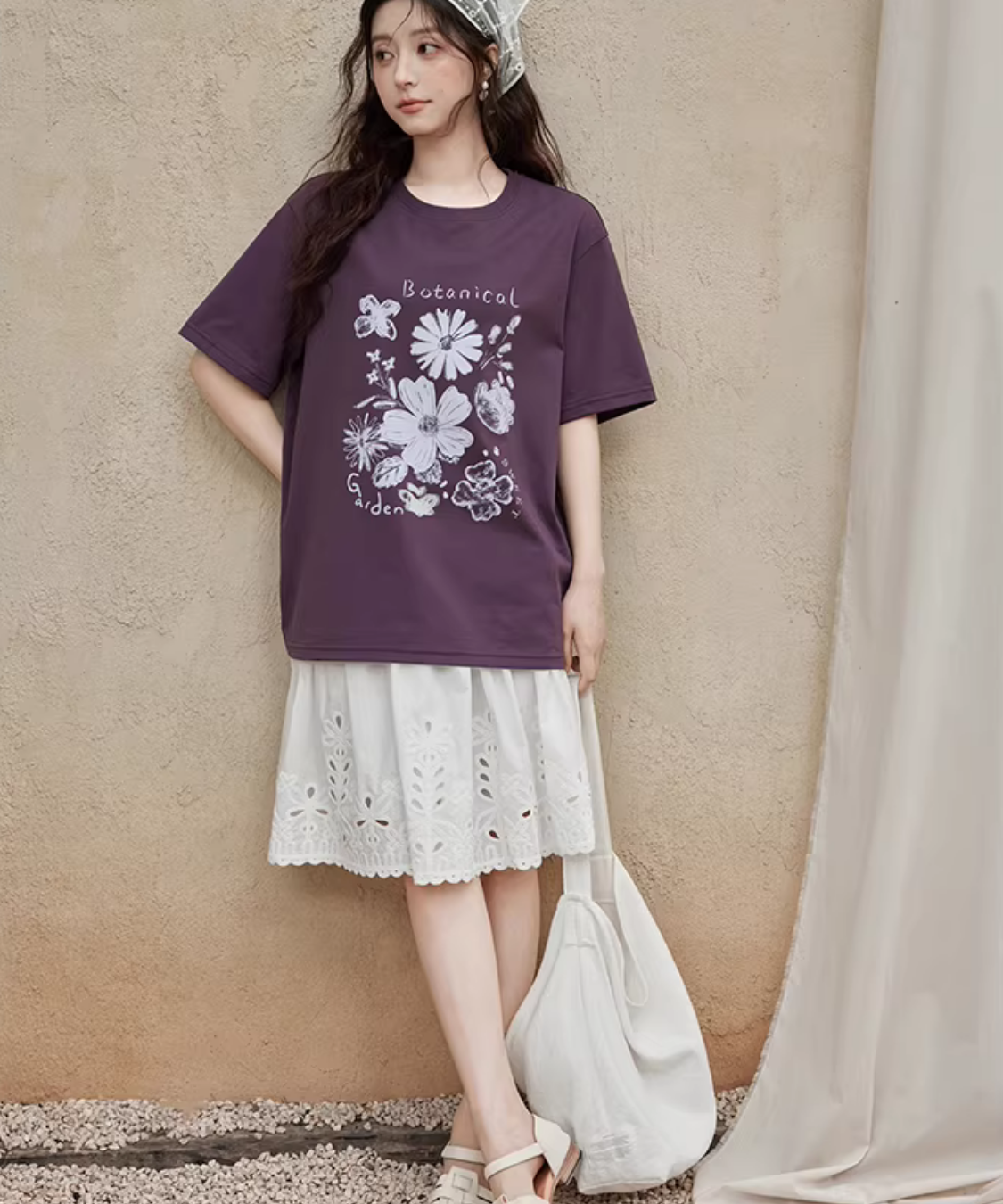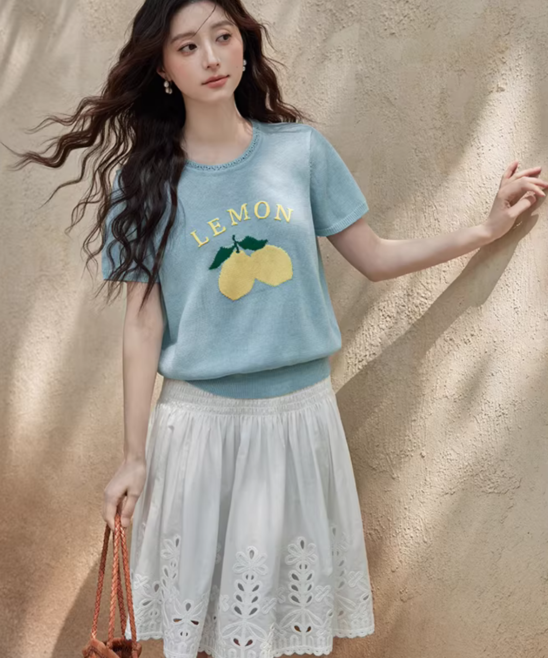 繊細なカットワークレースが裾に施された、上品で軽やかな印象のスカートです。