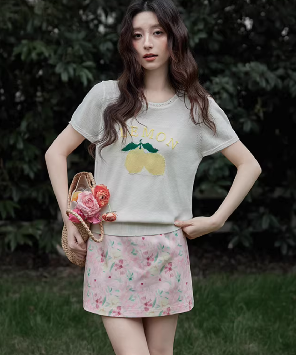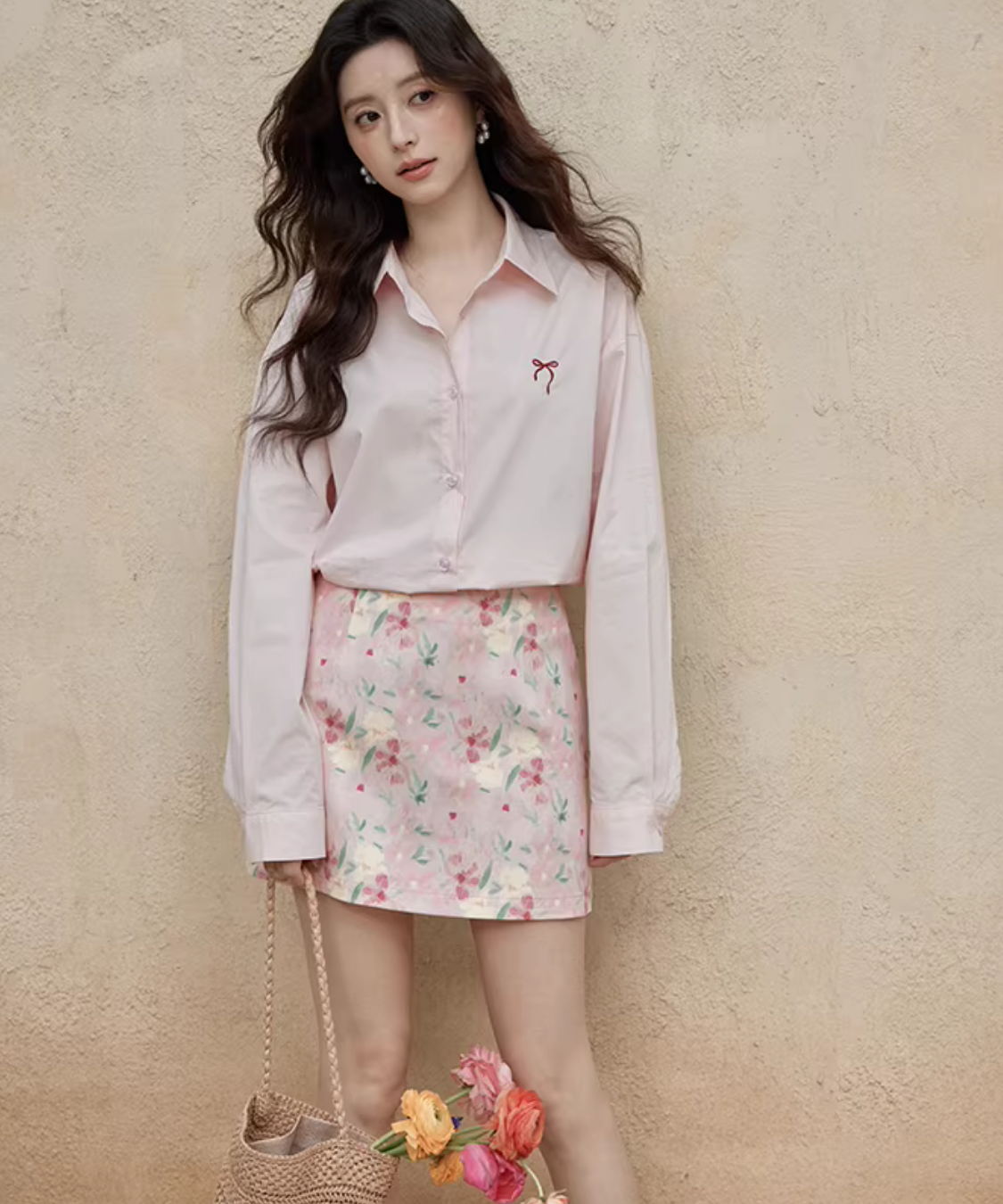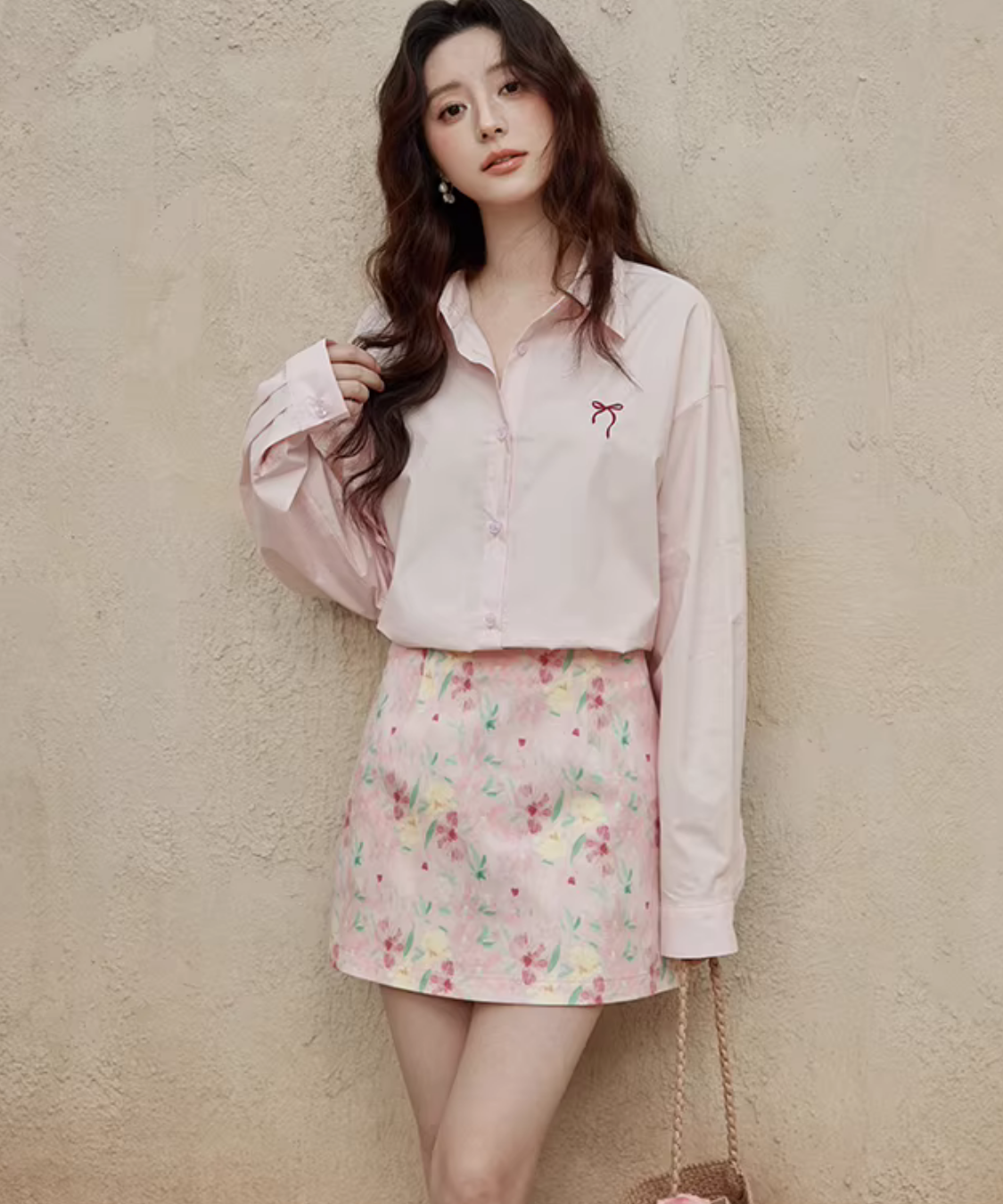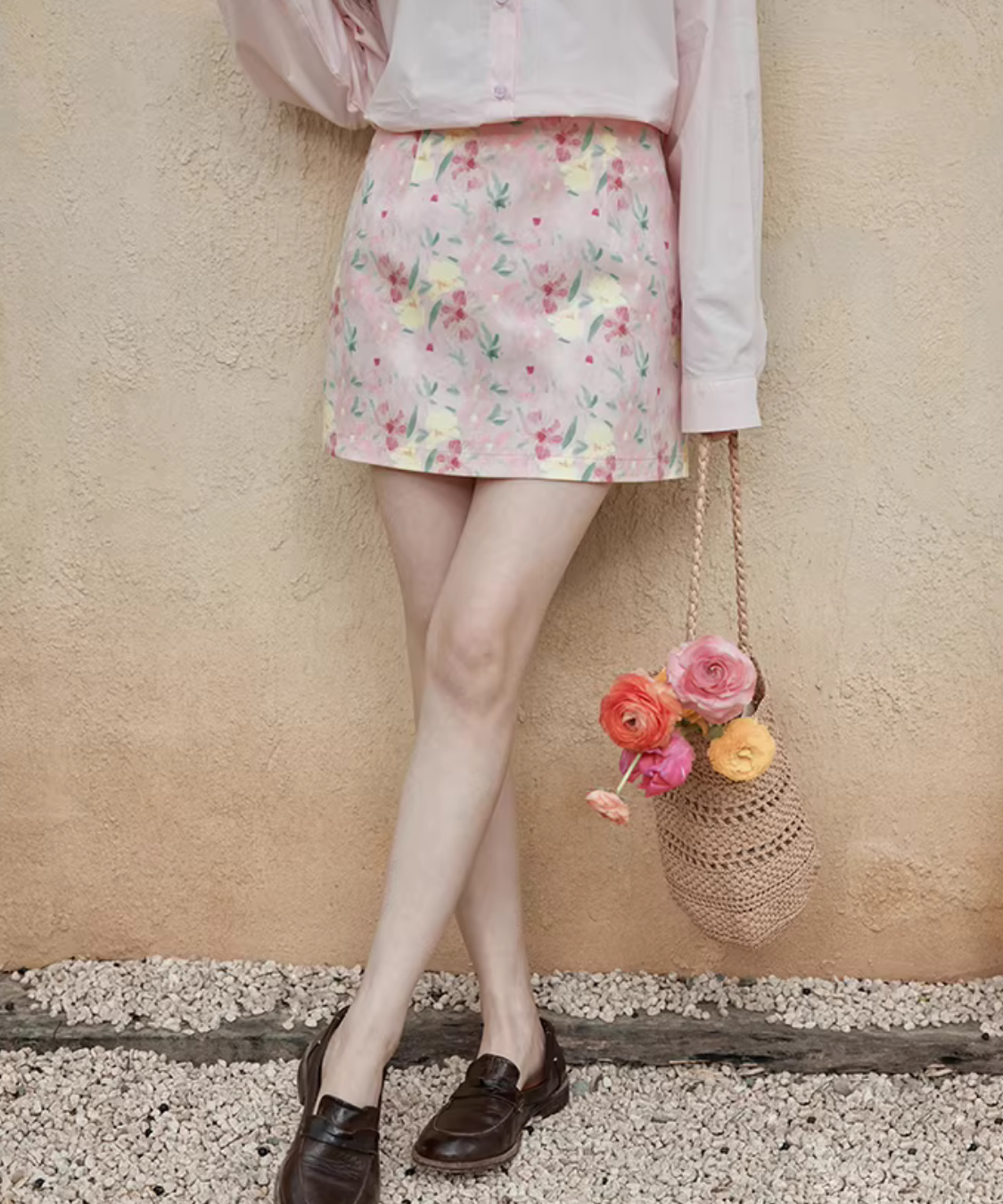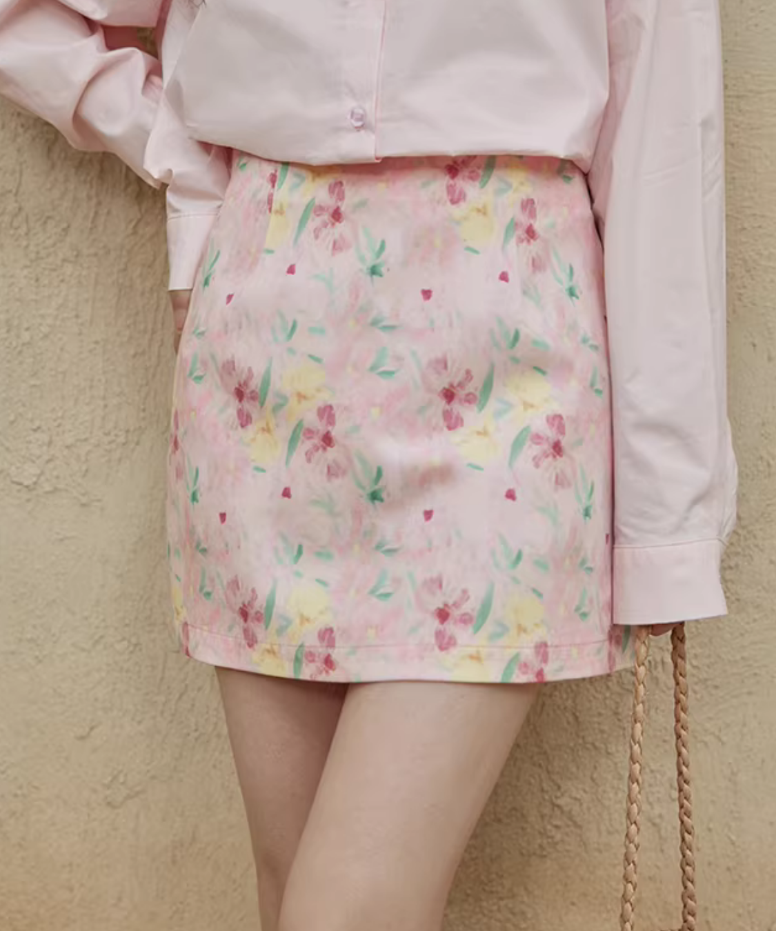淡いカラーに小花柄が散りばめられた、可憐でフェミニンなタイトミニスカートです。