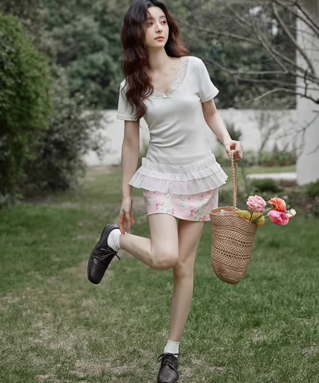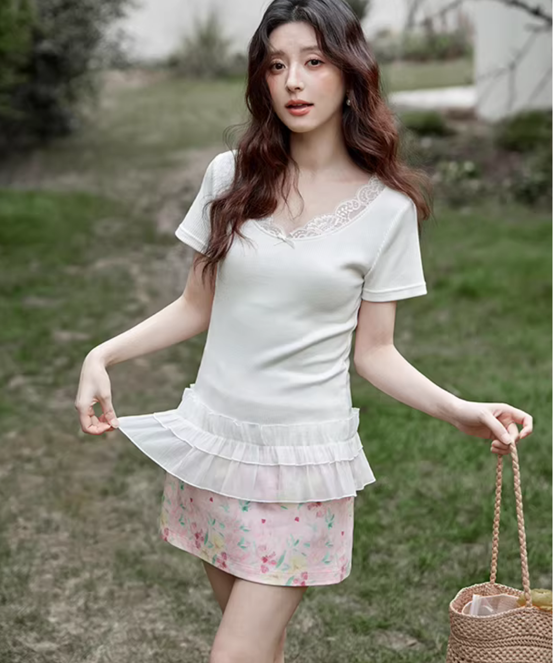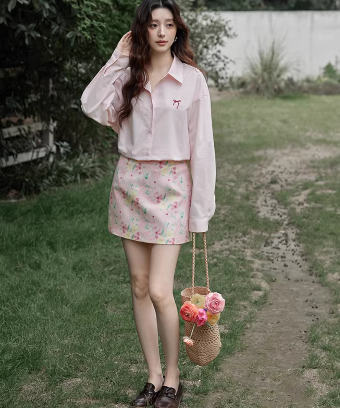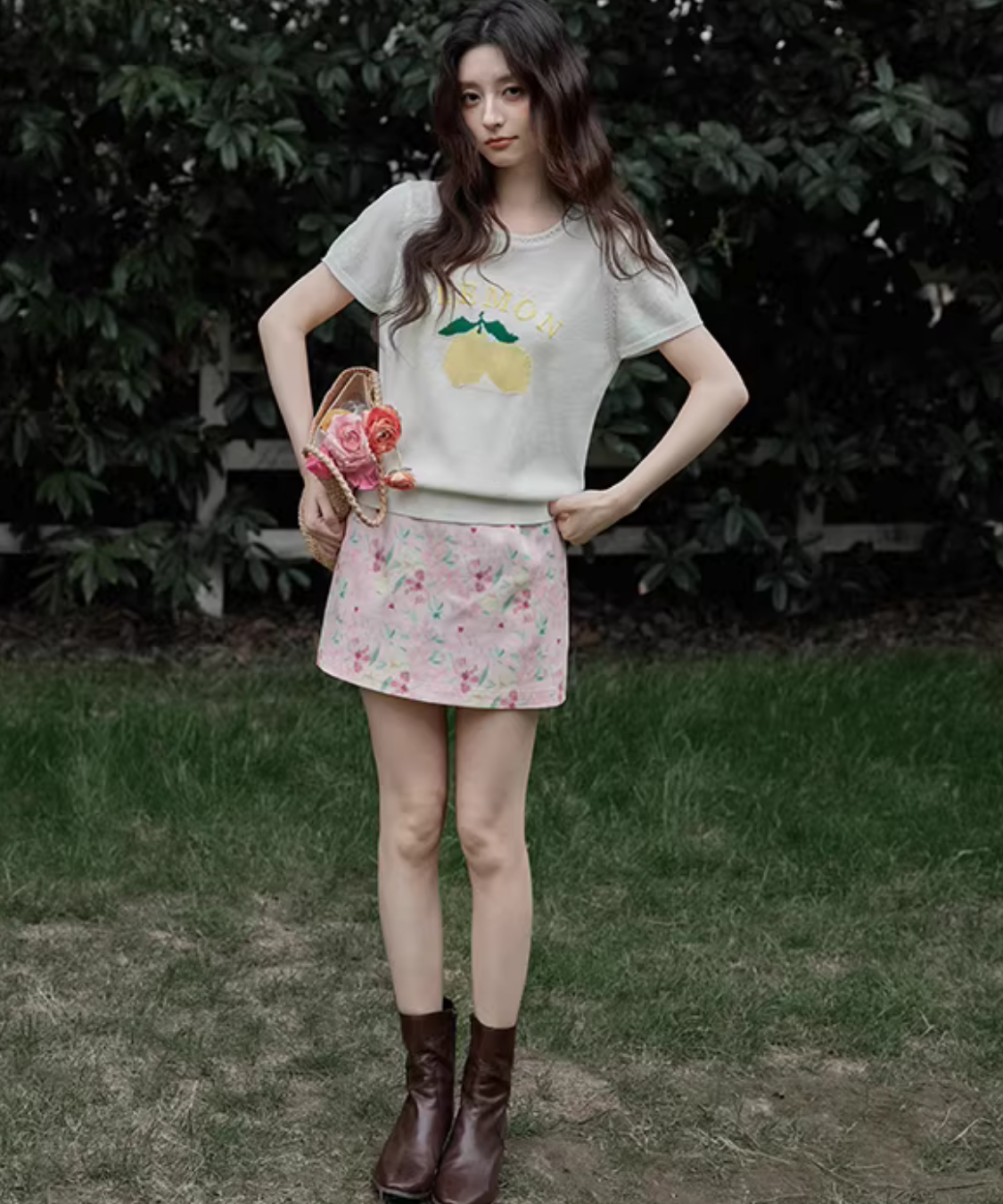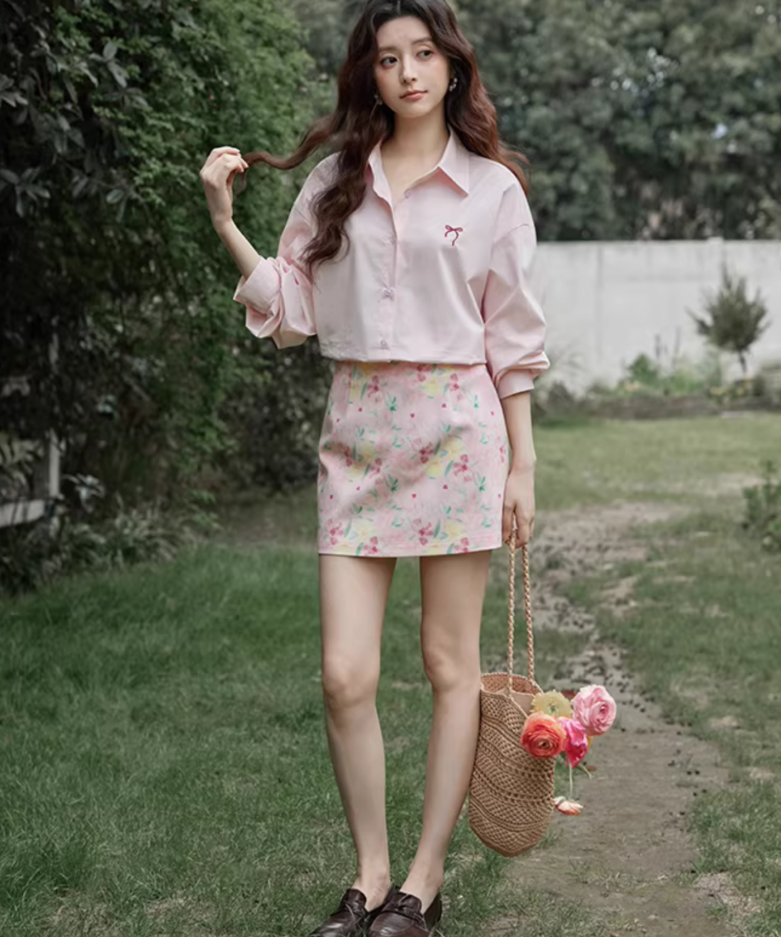 淡いカラーに小花柄が散りばめられた、可憐でフェミニンなタイトミニスカートです。