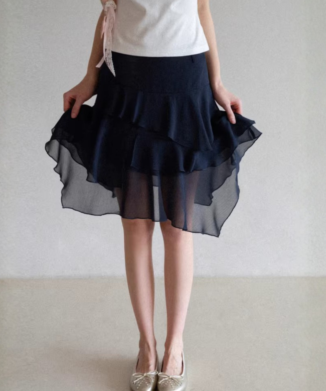 ティアードシフォンフレアアシンメトリースカート