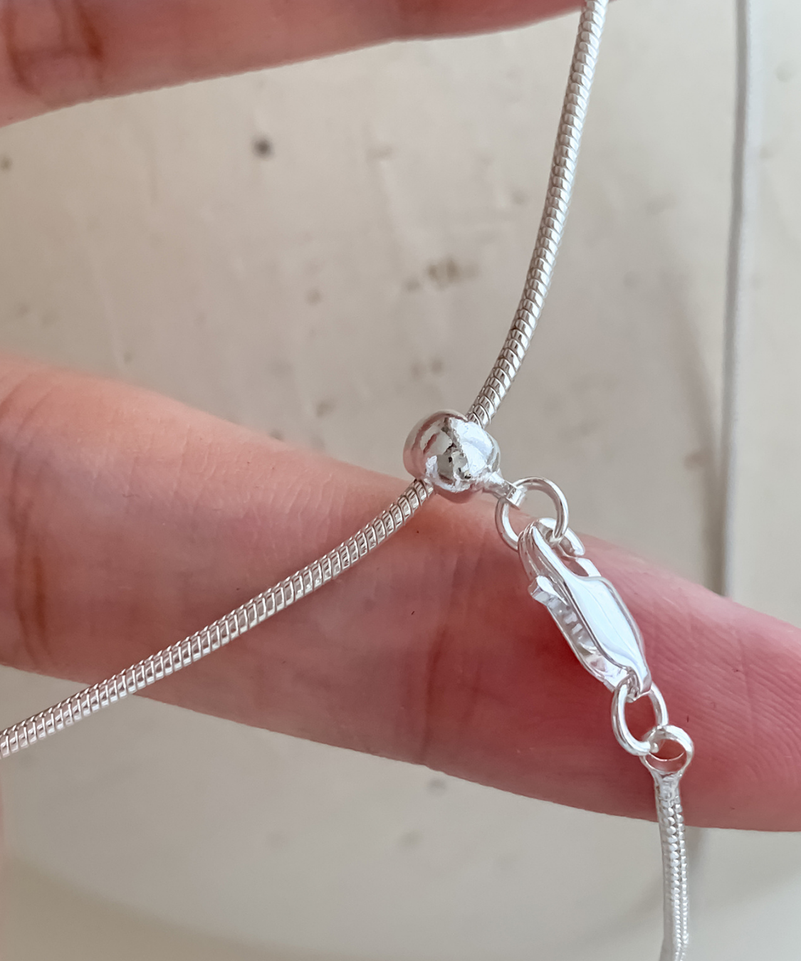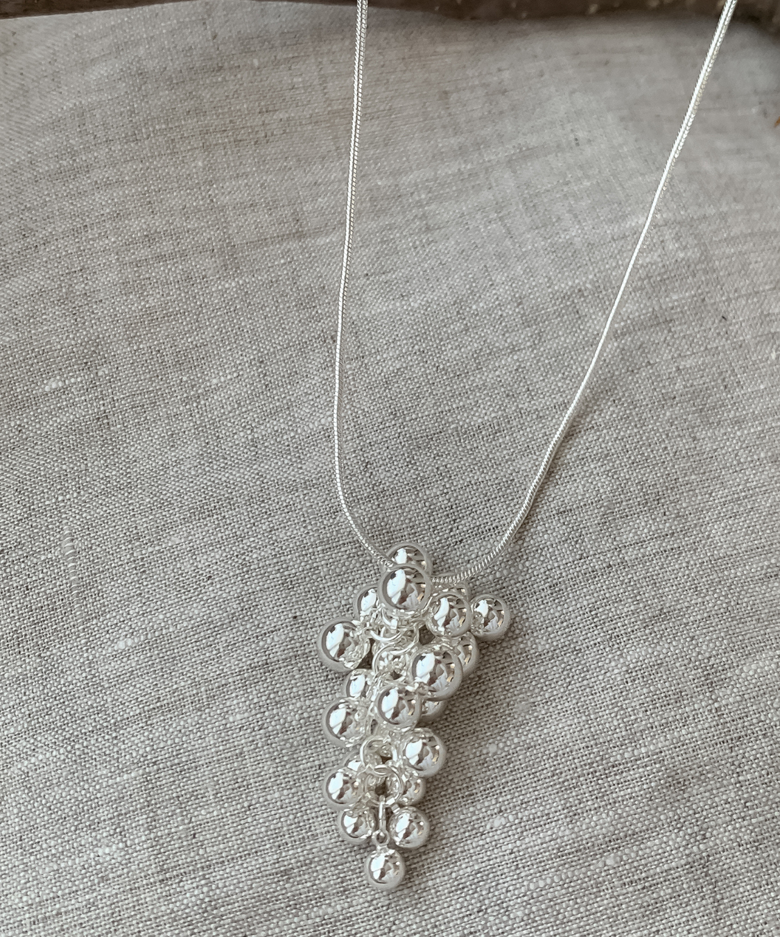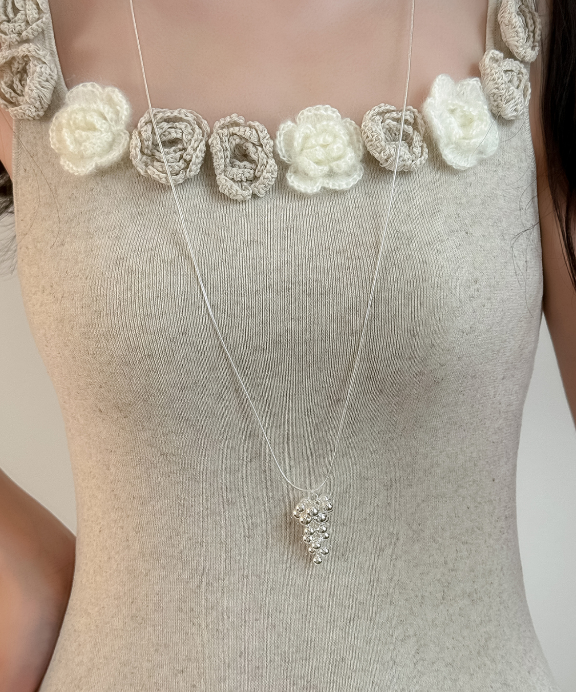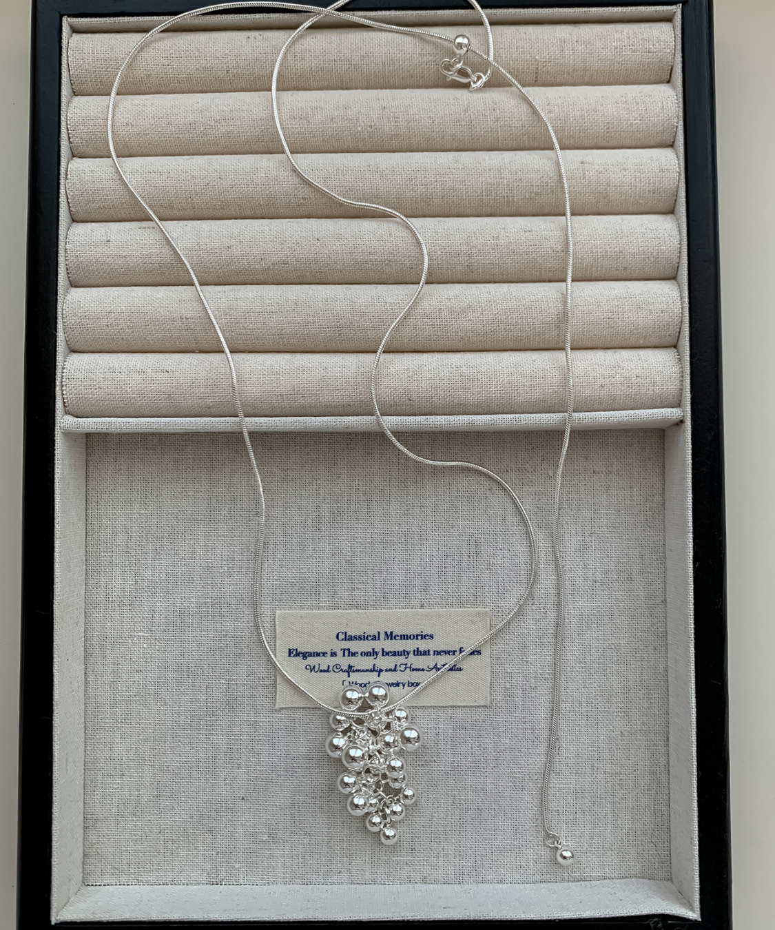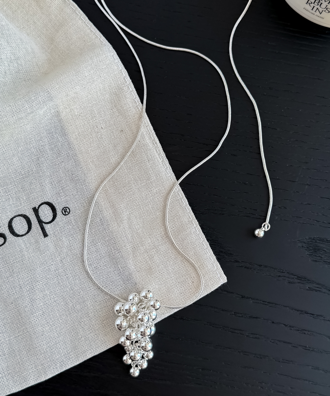 存在感のあるシルバーボールモチーフが、胸元に華やかさを添えるロングネックレスです。