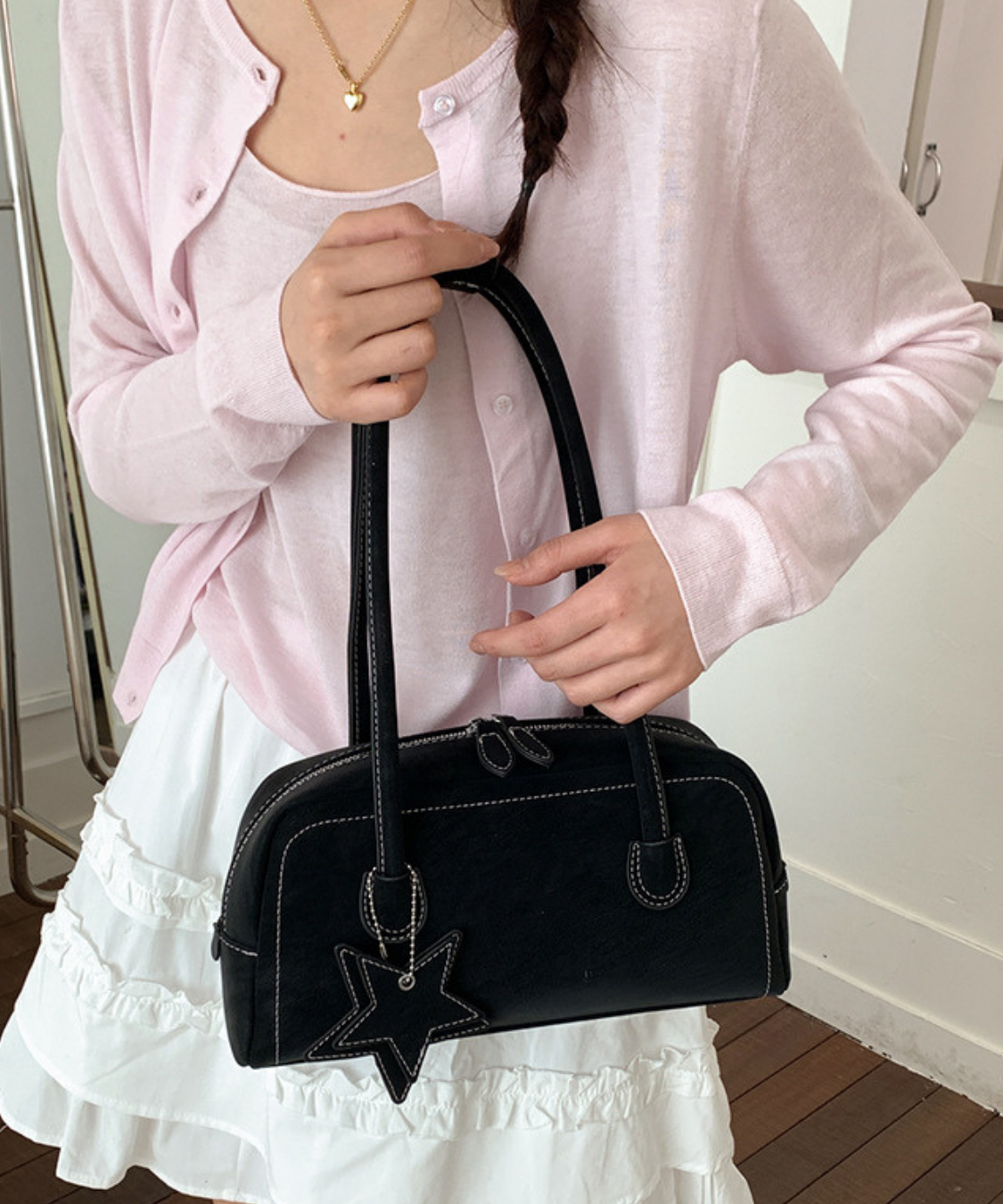スクエアフォルム星チャーム付きミニボストン