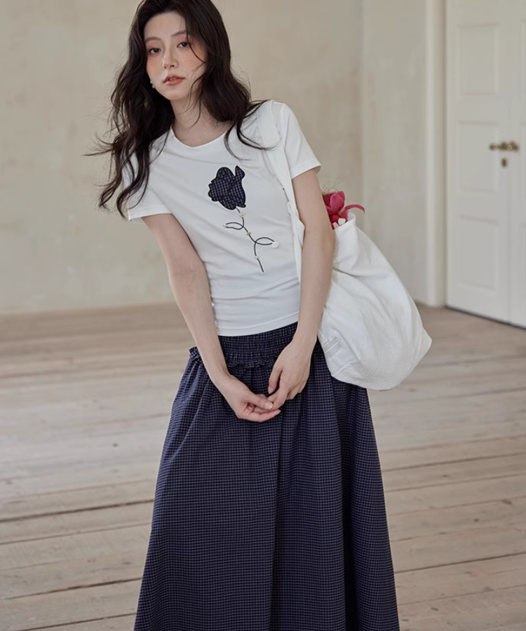 ウエストのシャーリングがポイントのナチュラルフェミニンなチェック柄スカートです。