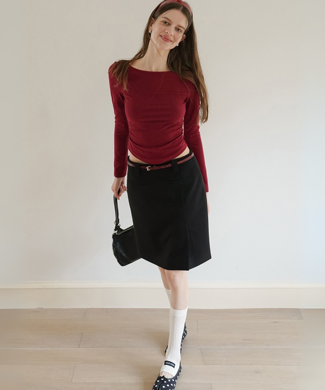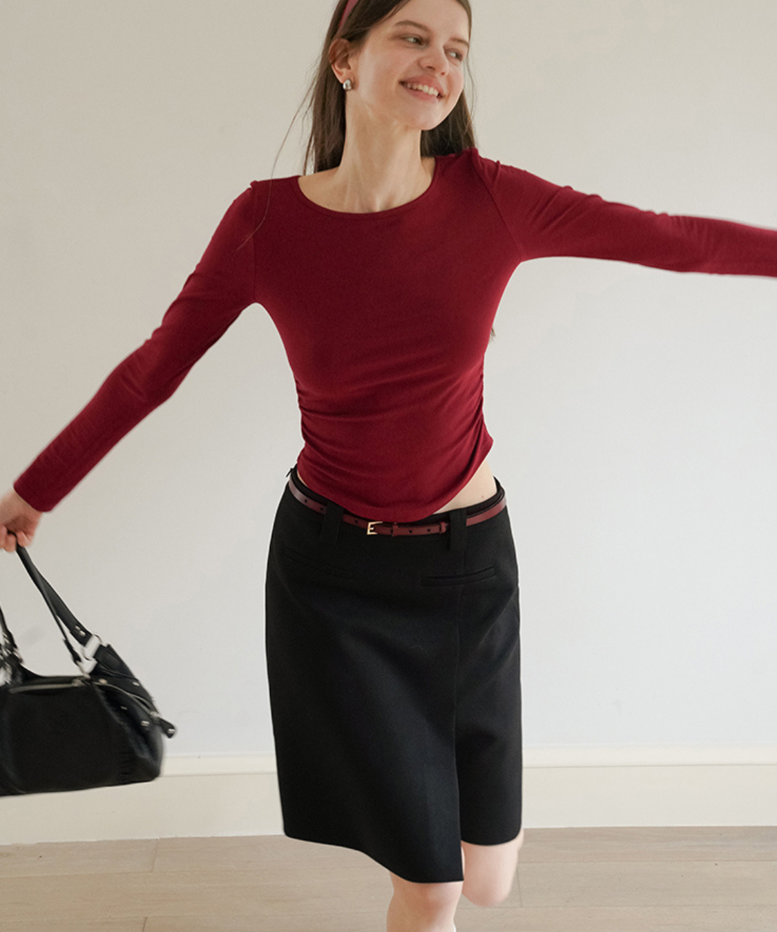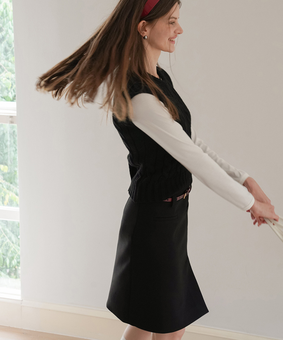 ベルトループ付きなので、小物使いで印象を変えられるのも嬉しいポイントです◎