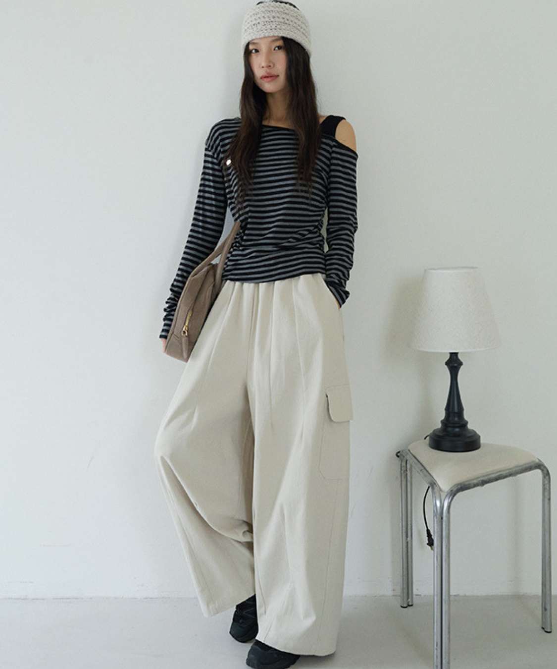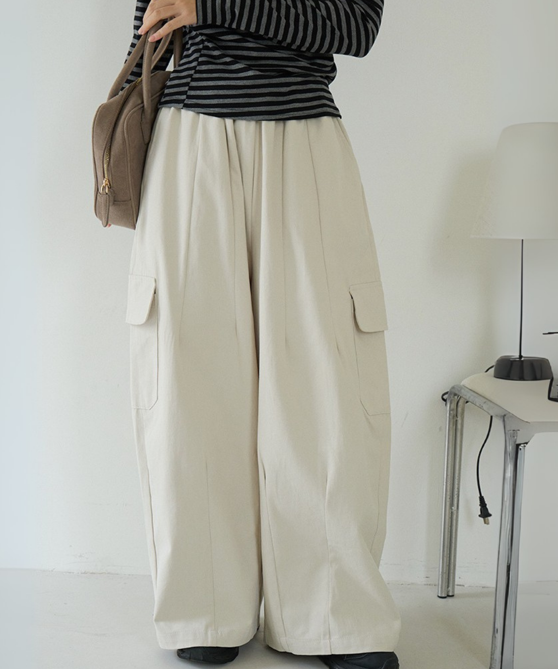 ゆったりとしたシルエットが魅力のカーゴワイドパンツです。