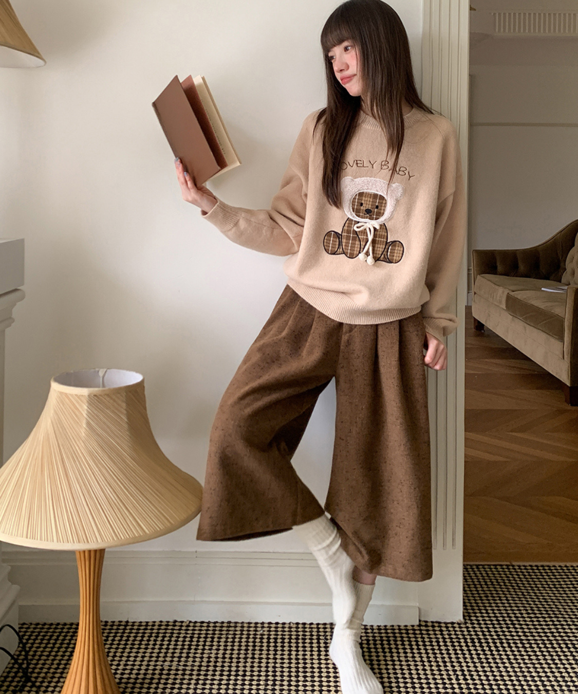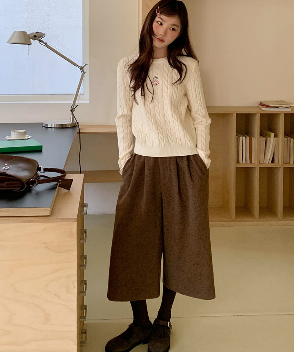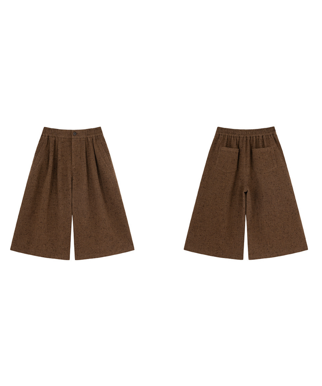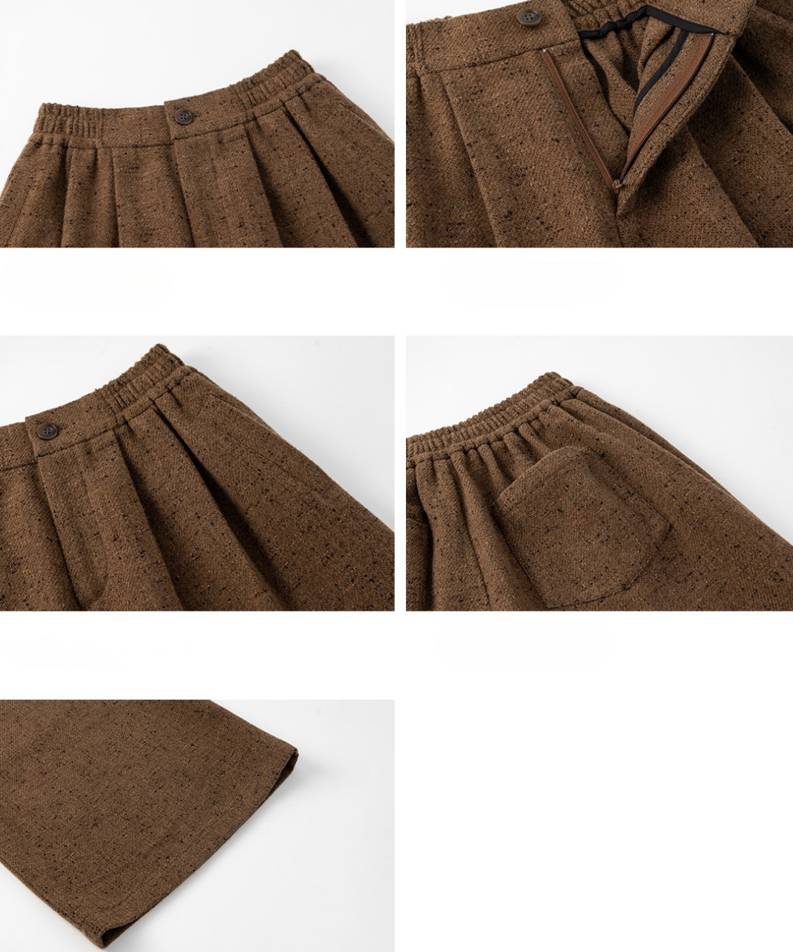 クラシカルな印象を与えるツイード調素材のミドル丈ワイドパンツです。