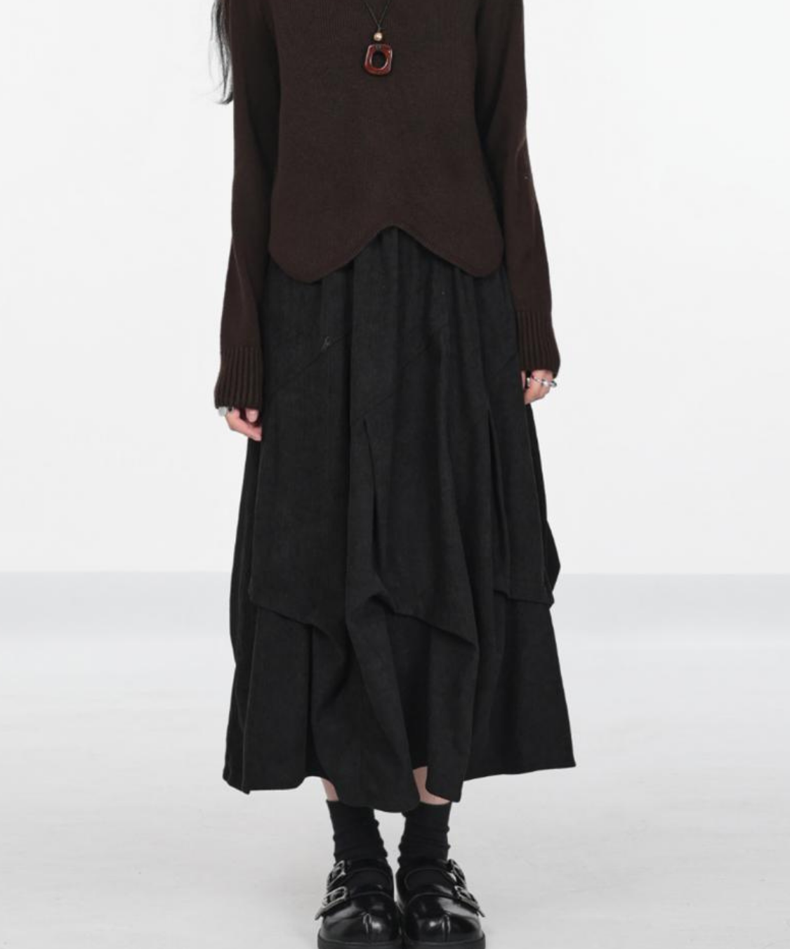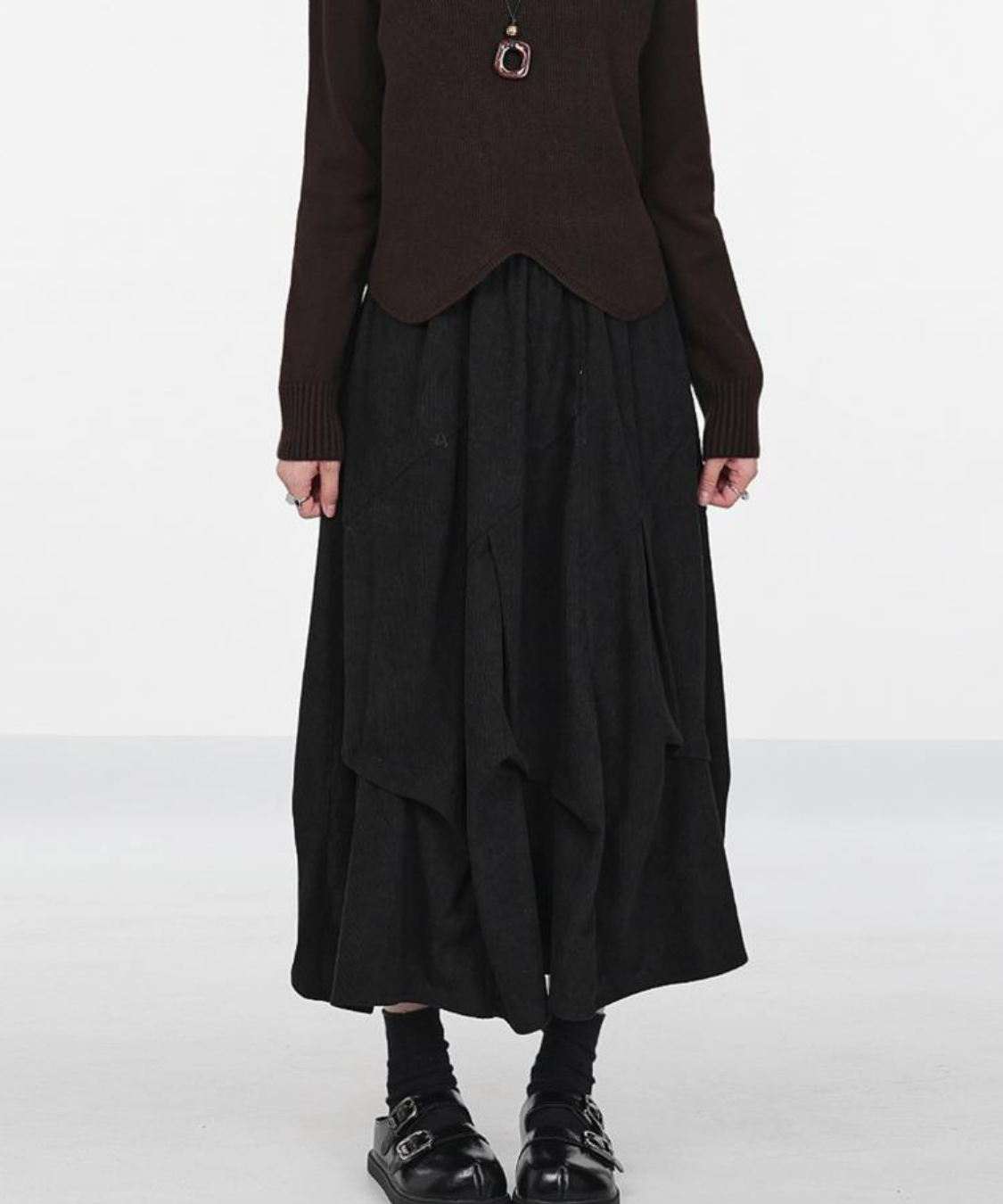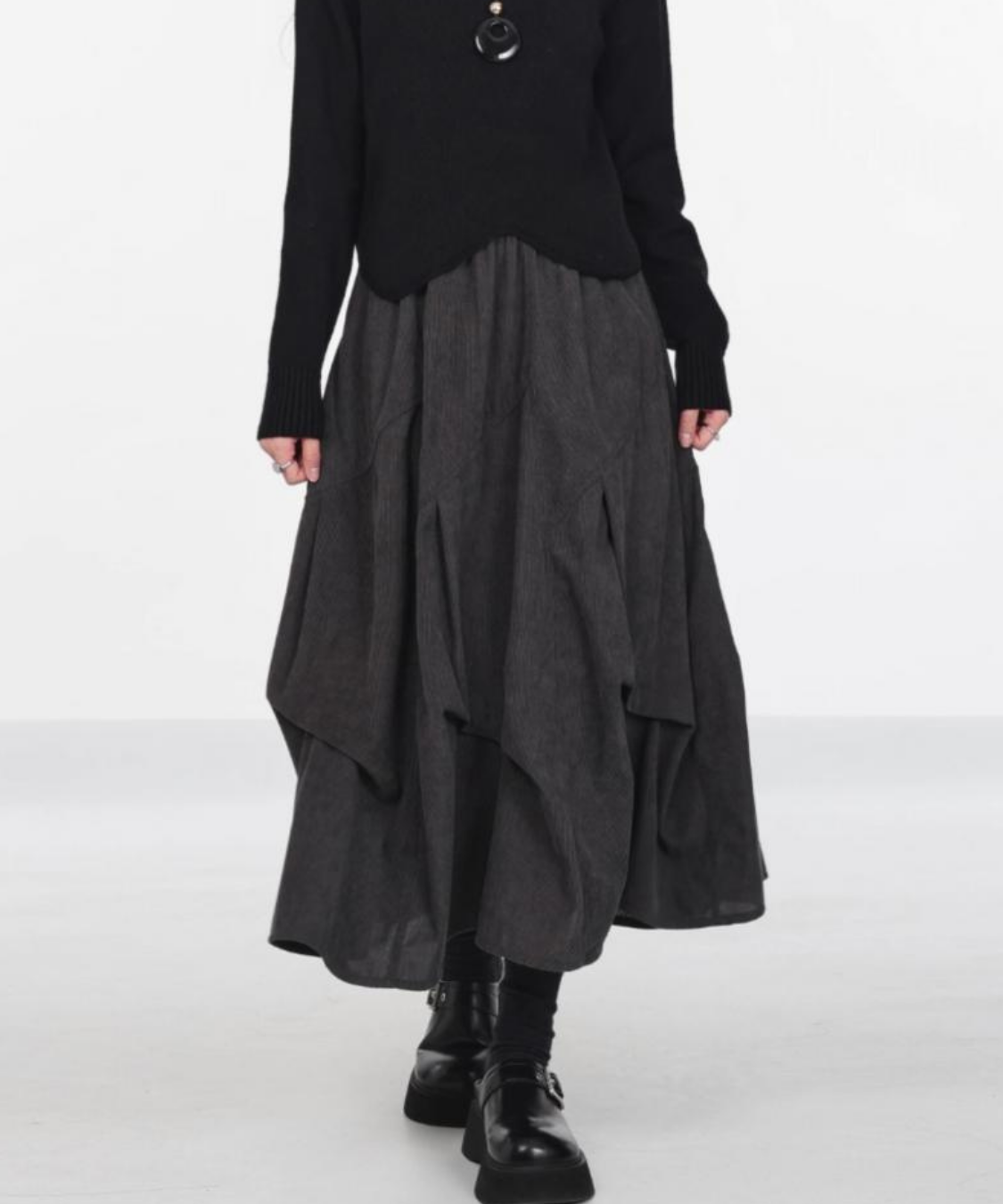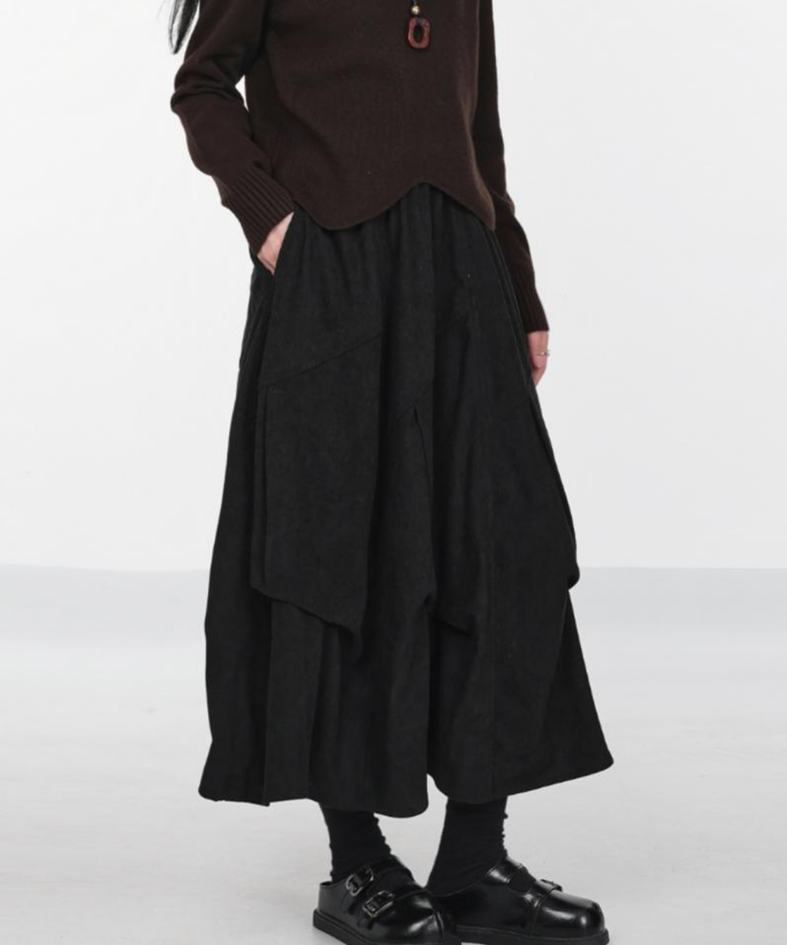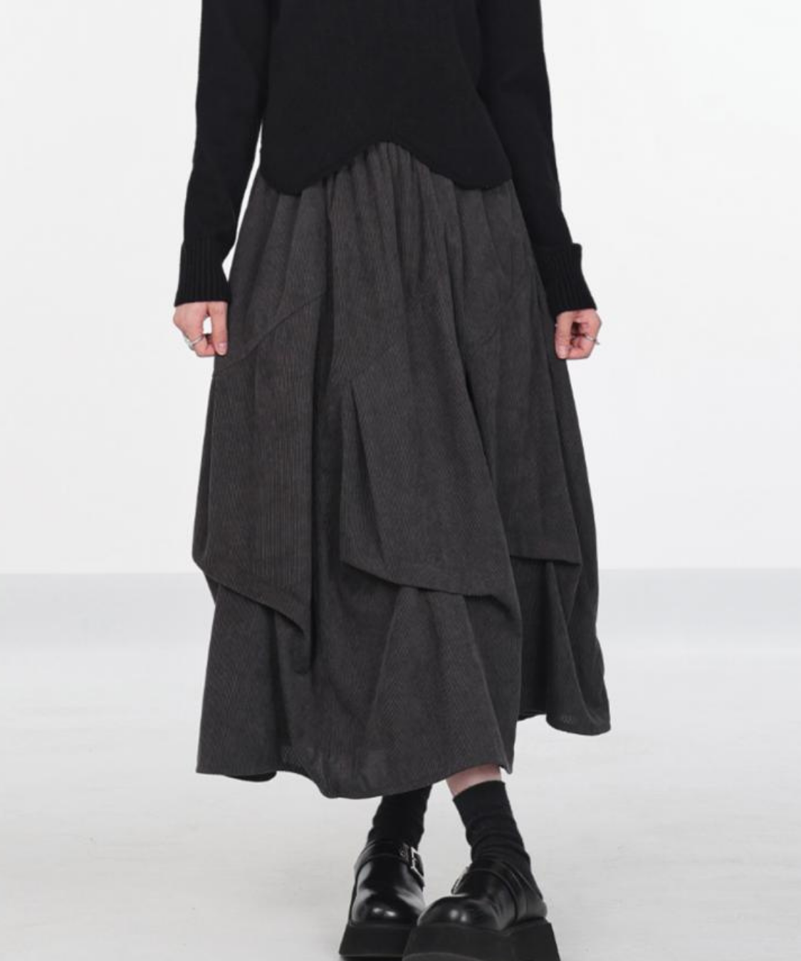 あたたかみのあるコーデュロイ素材が季節感たっぷりのコクーンスカートです。