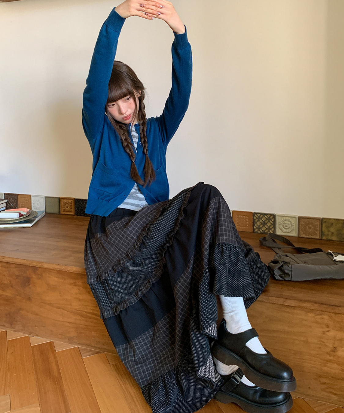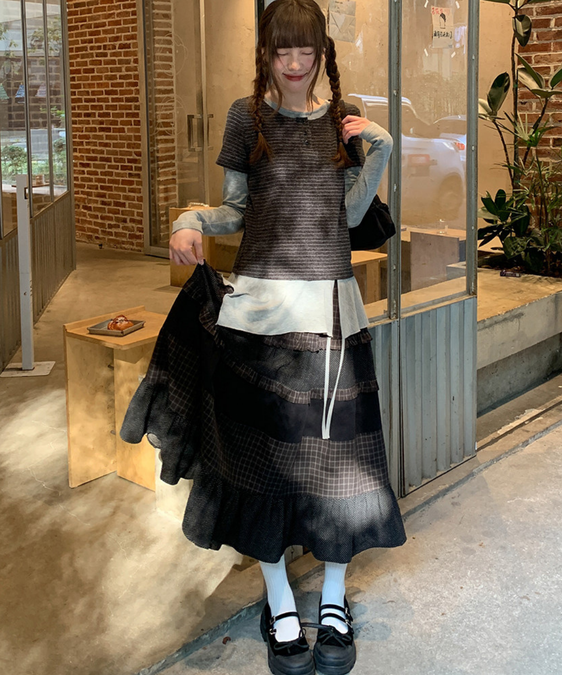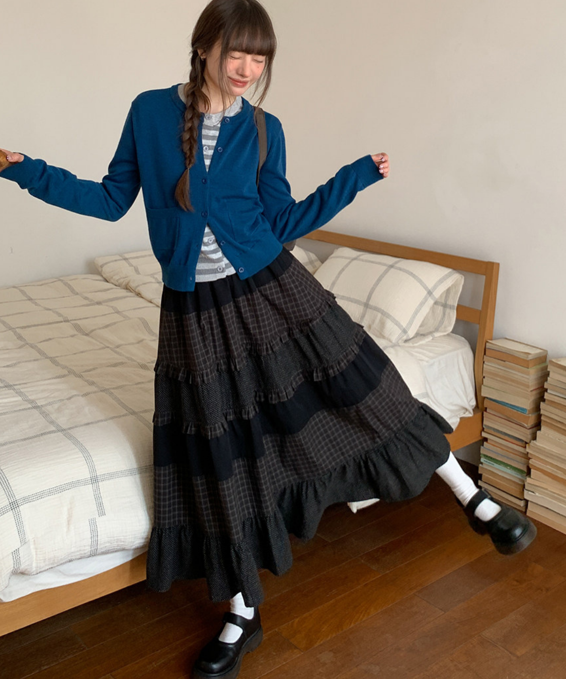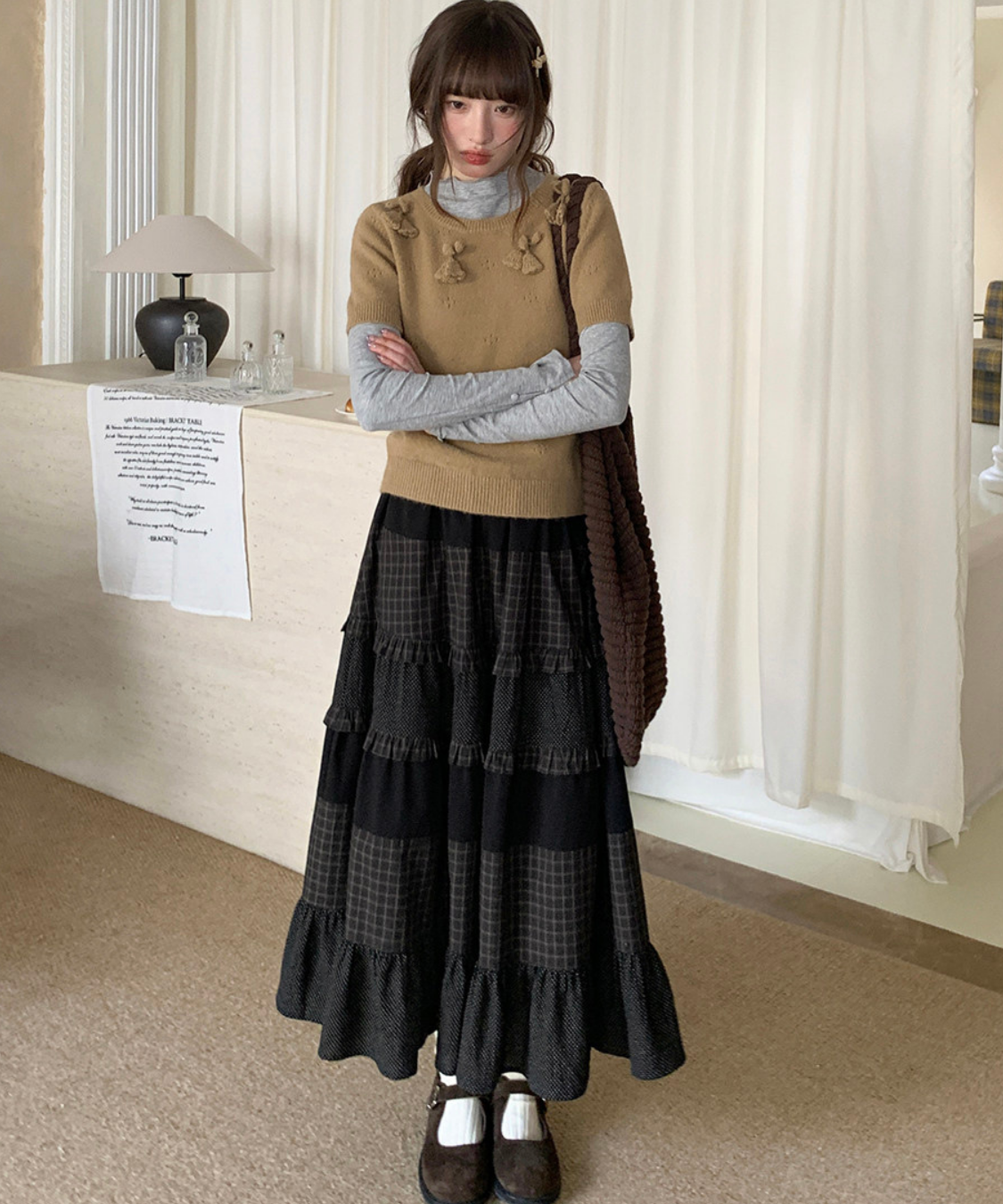チェックとドットの組み合わせが絶妙で、動くたびに表情のあるシルエットを演出します♡