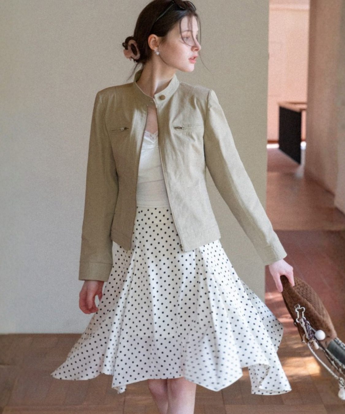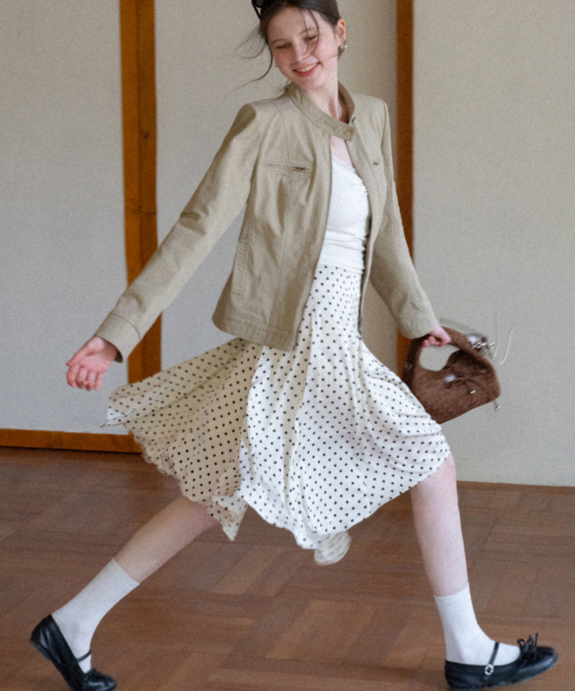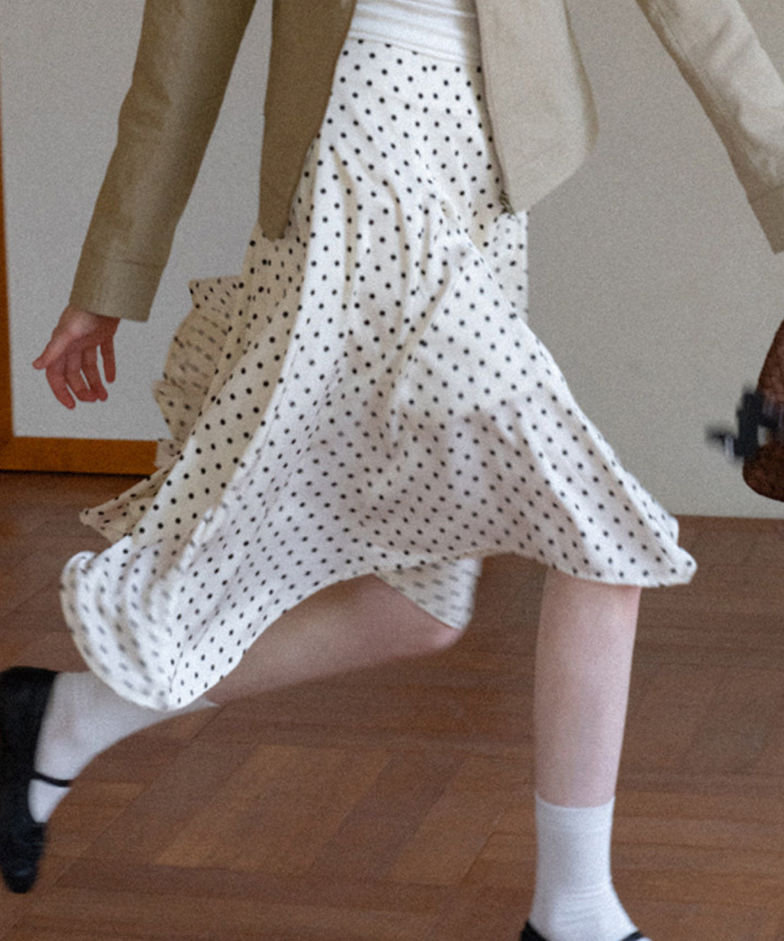 クラシカルなドット柄で、甘さと上品さを兼ね備えた一枚です◎