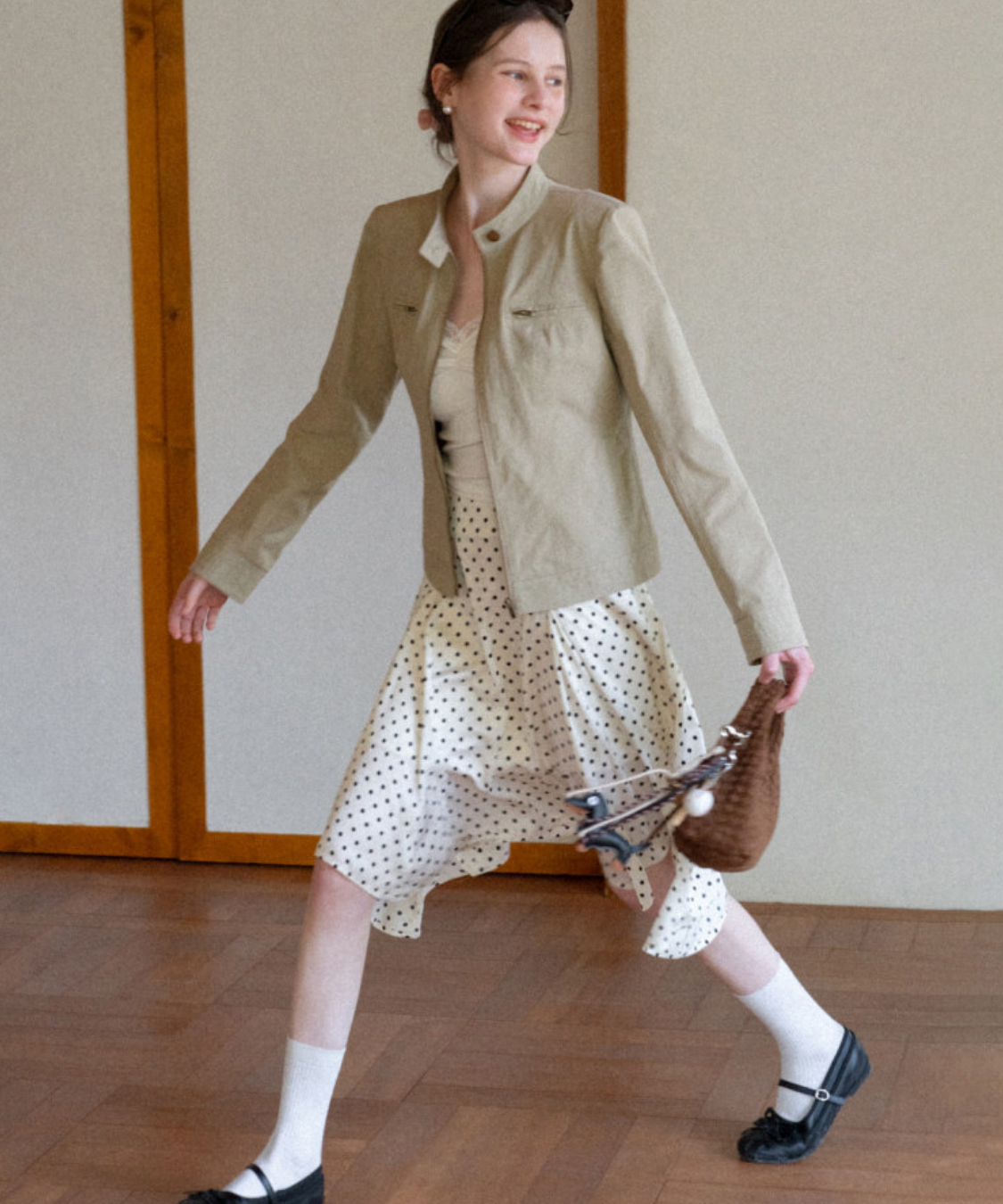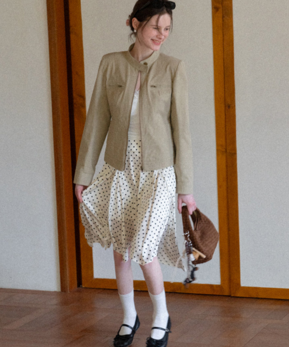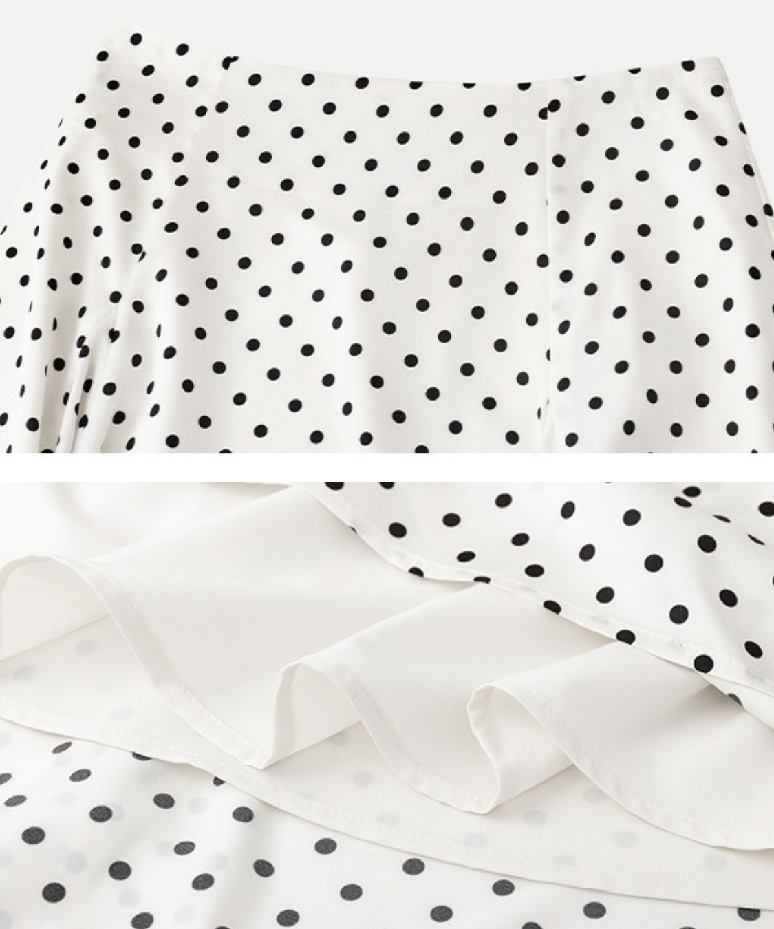 クラシカルなドット柄で、甘さと上品さを兼ね備えた一枚です◎