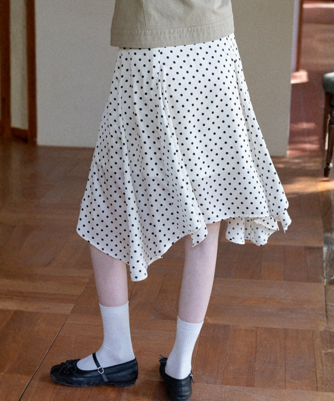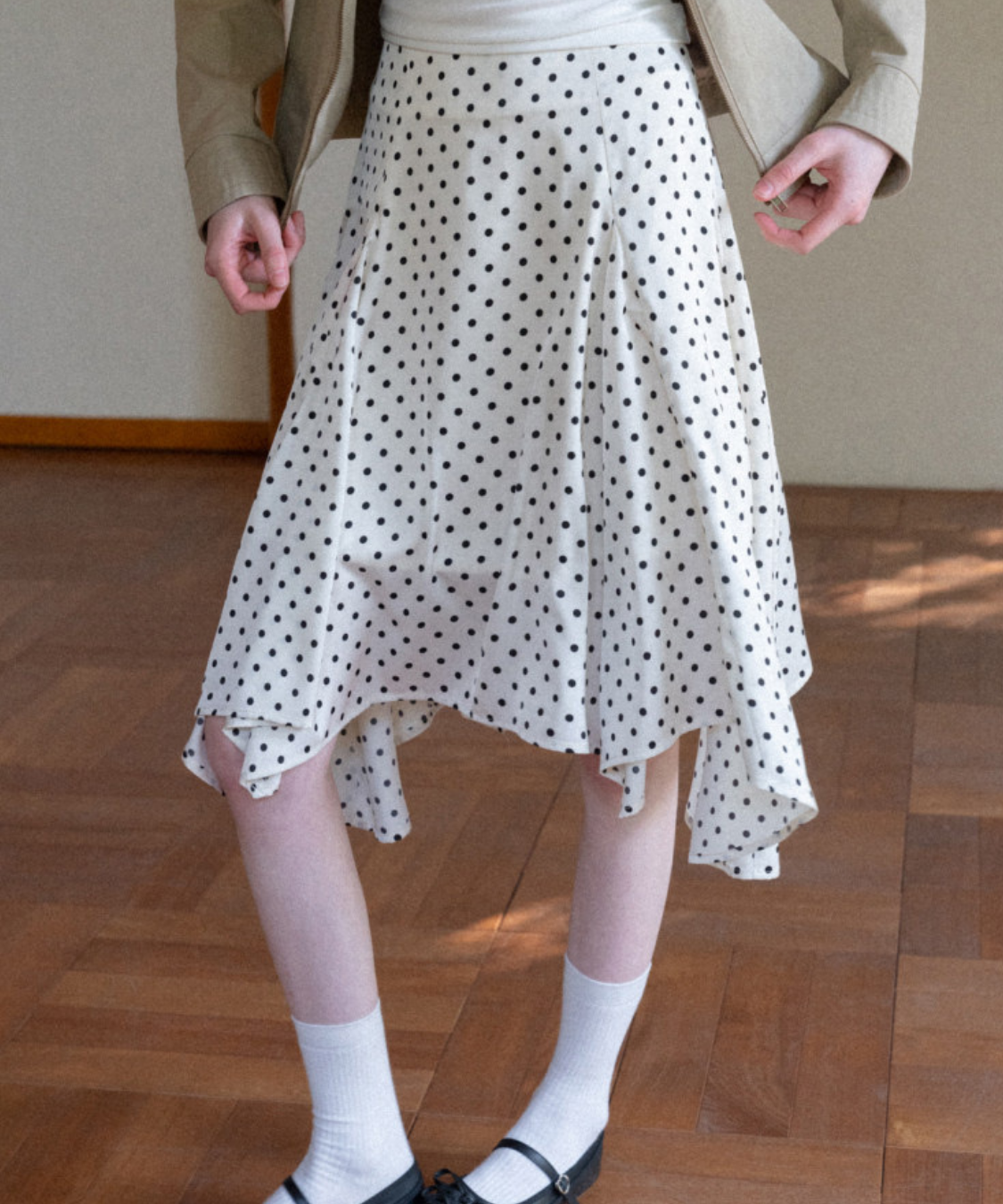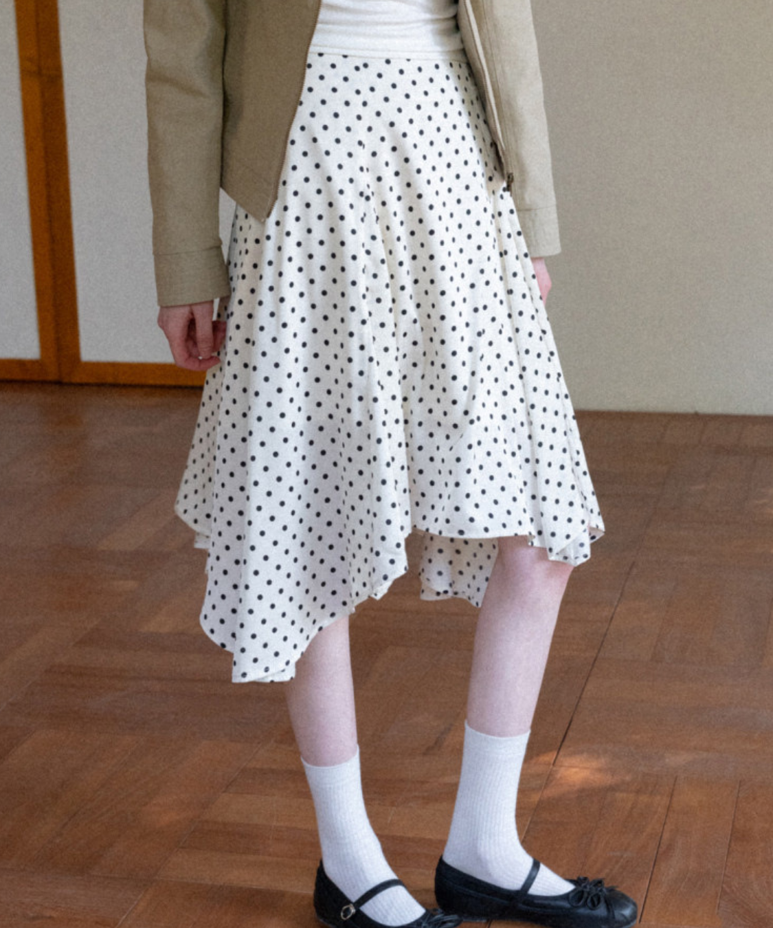 揺れるたびに表情が変わるアシンメトリーヘムが魅力のフレアスカートです。