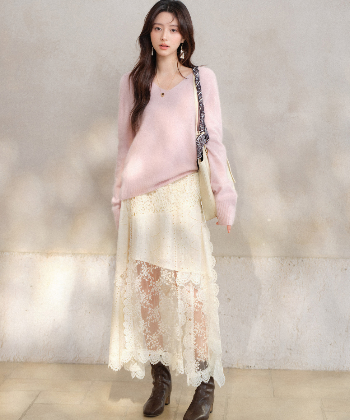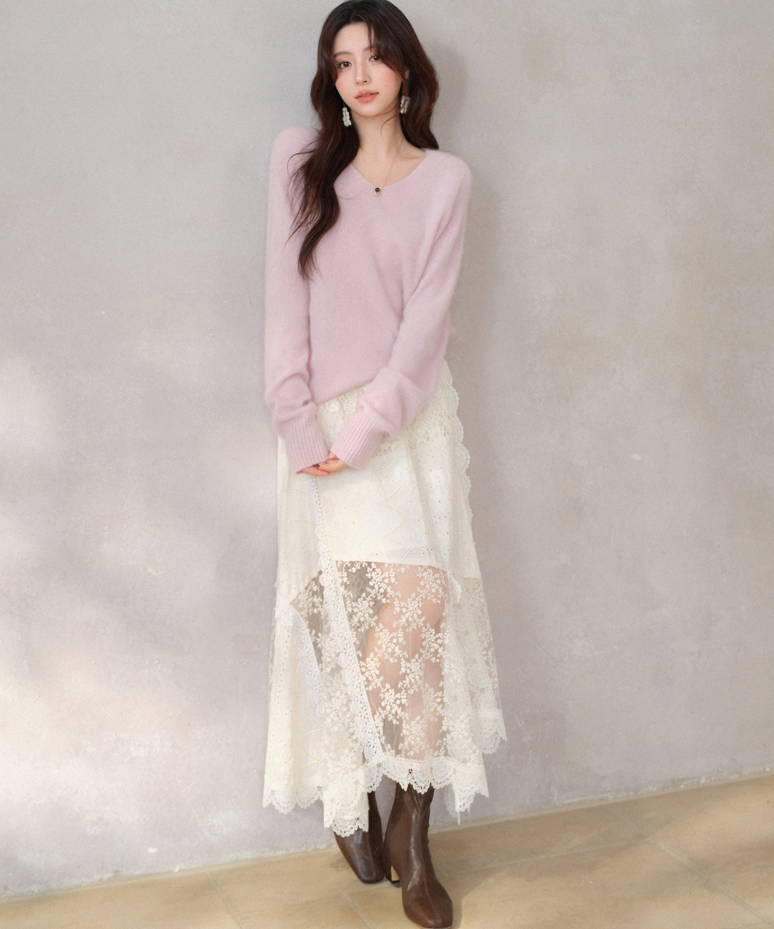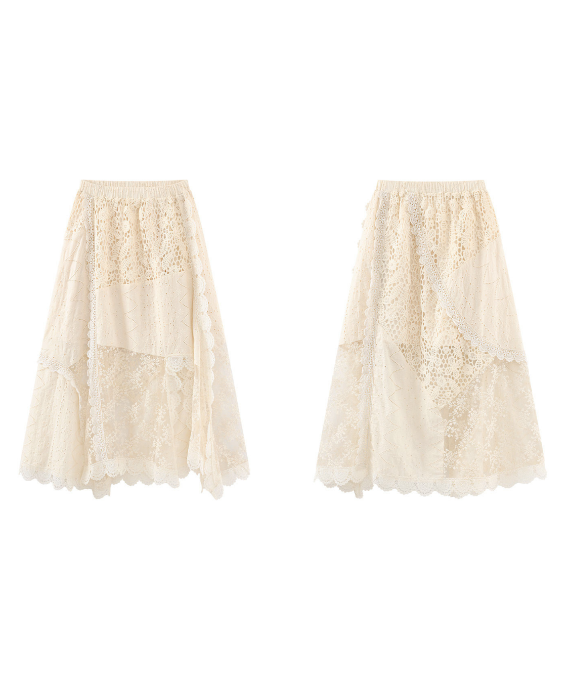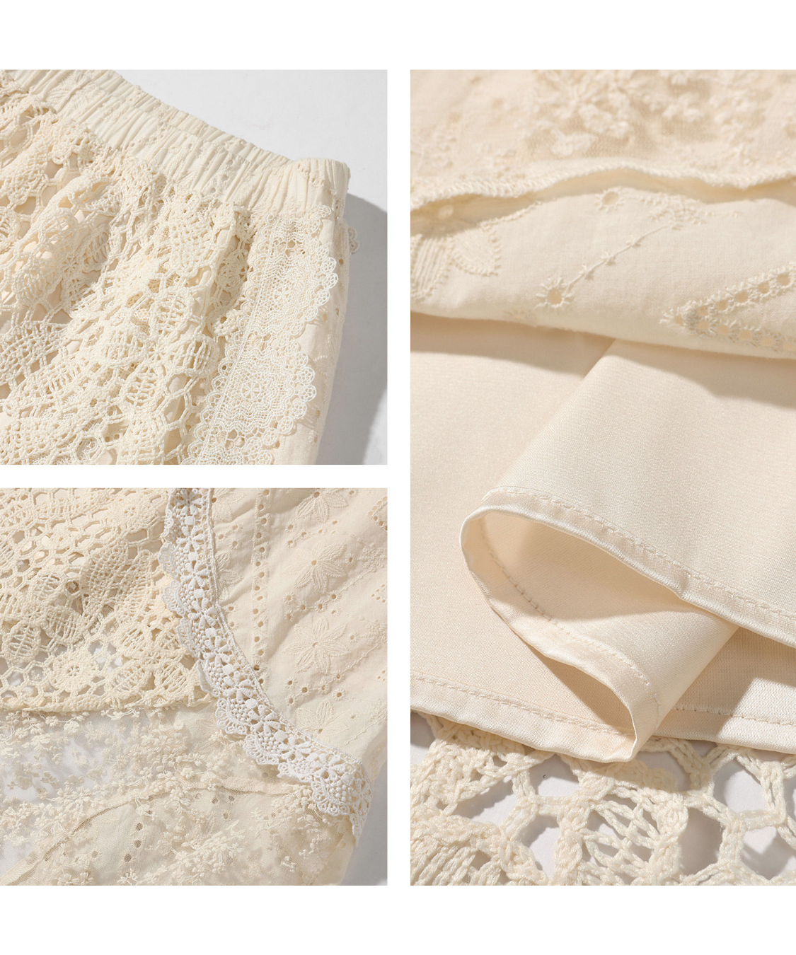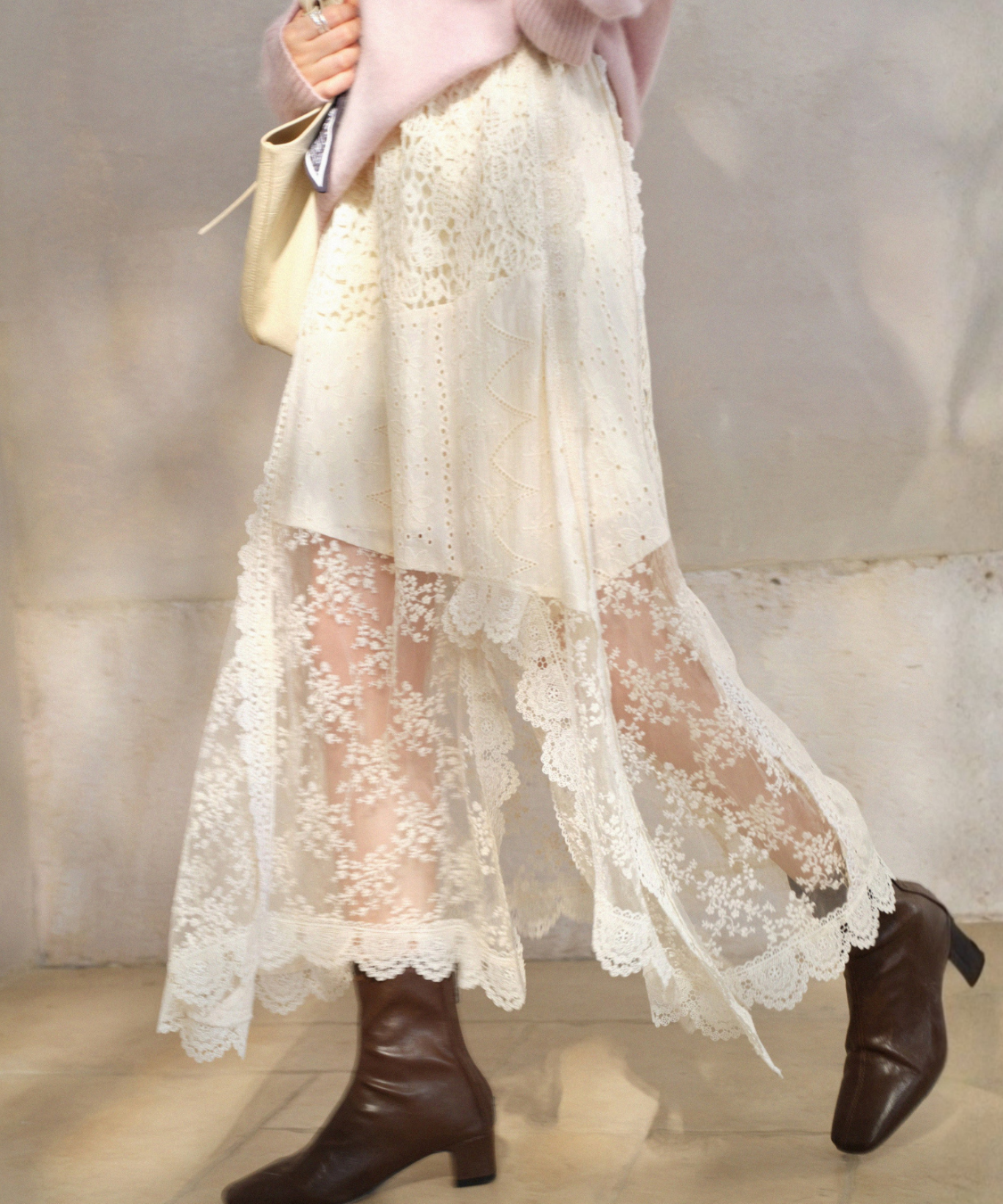 繊細なレースを贅沢に重ねた、フェミニンムードたっぷりのレイヤードスカートです。