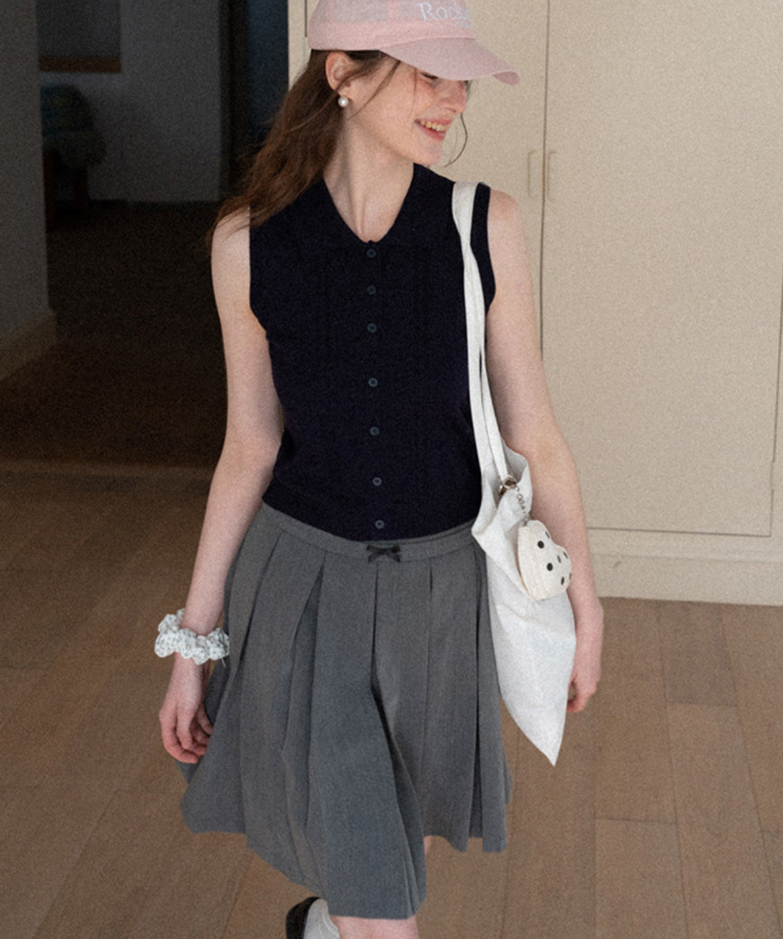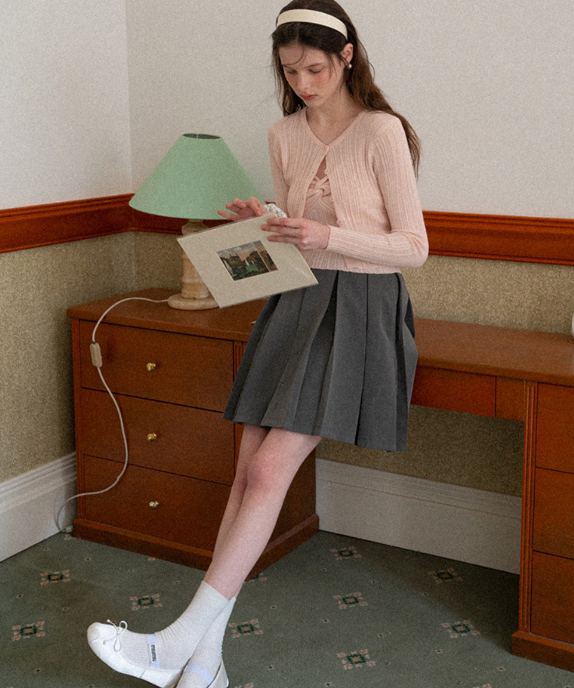 程よく広がるプリーツシルエットが大人可愛いミニスカートです。
