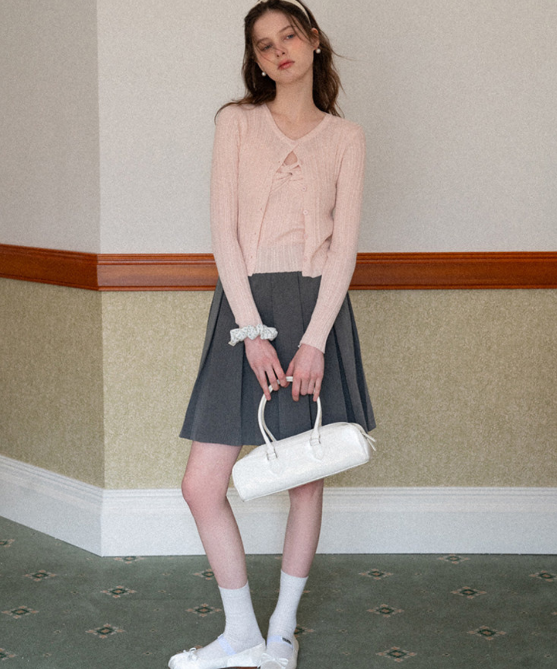 ウエストのさりげないリボンが、コーデに甘さをプラスしてくれます♡