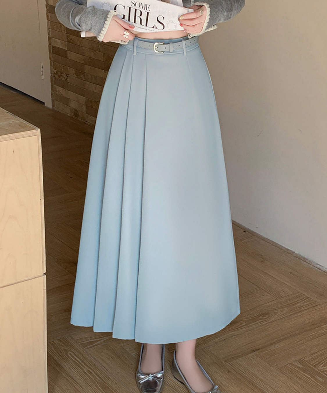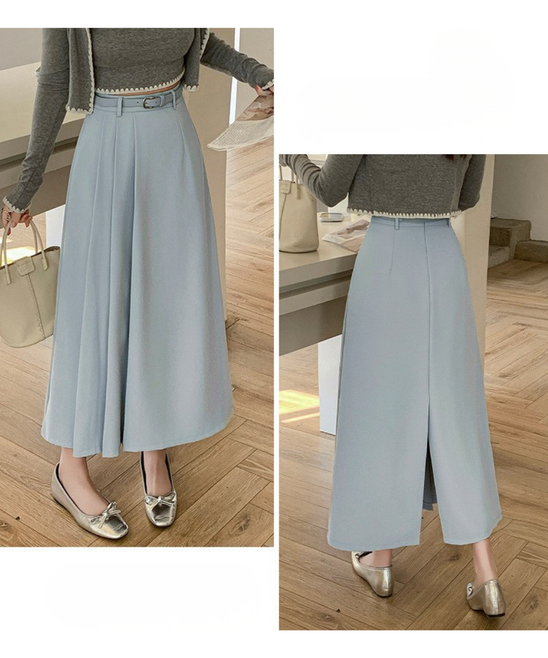 サイドプリーツ切り替えロングスカート