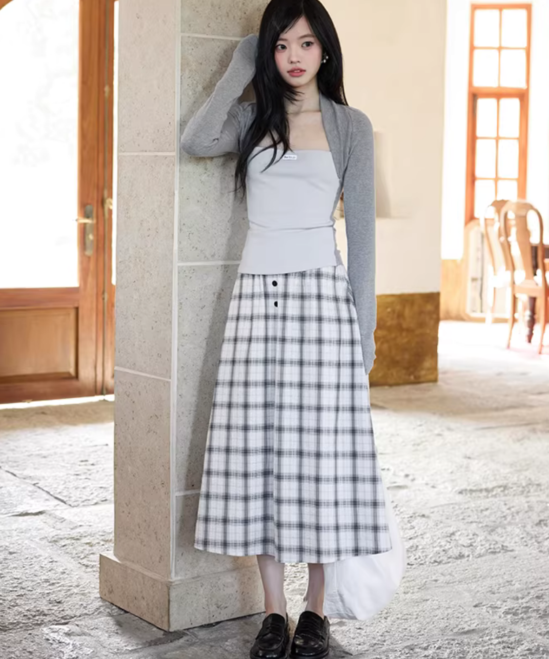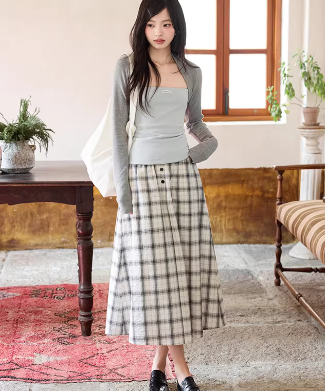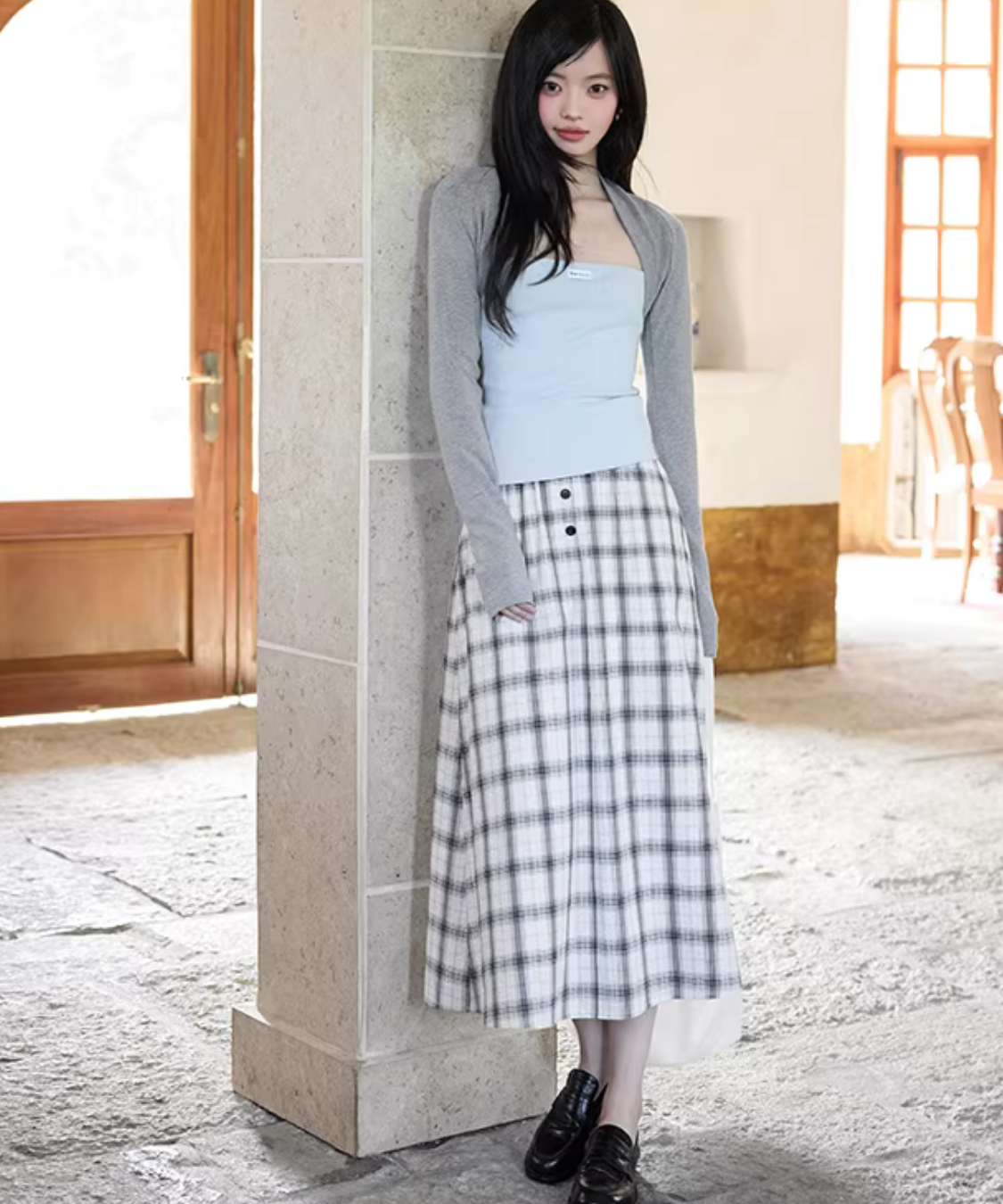 広がりすぎないシルエットで上品にまとまり、歩くたびにきれいに揺れます♡