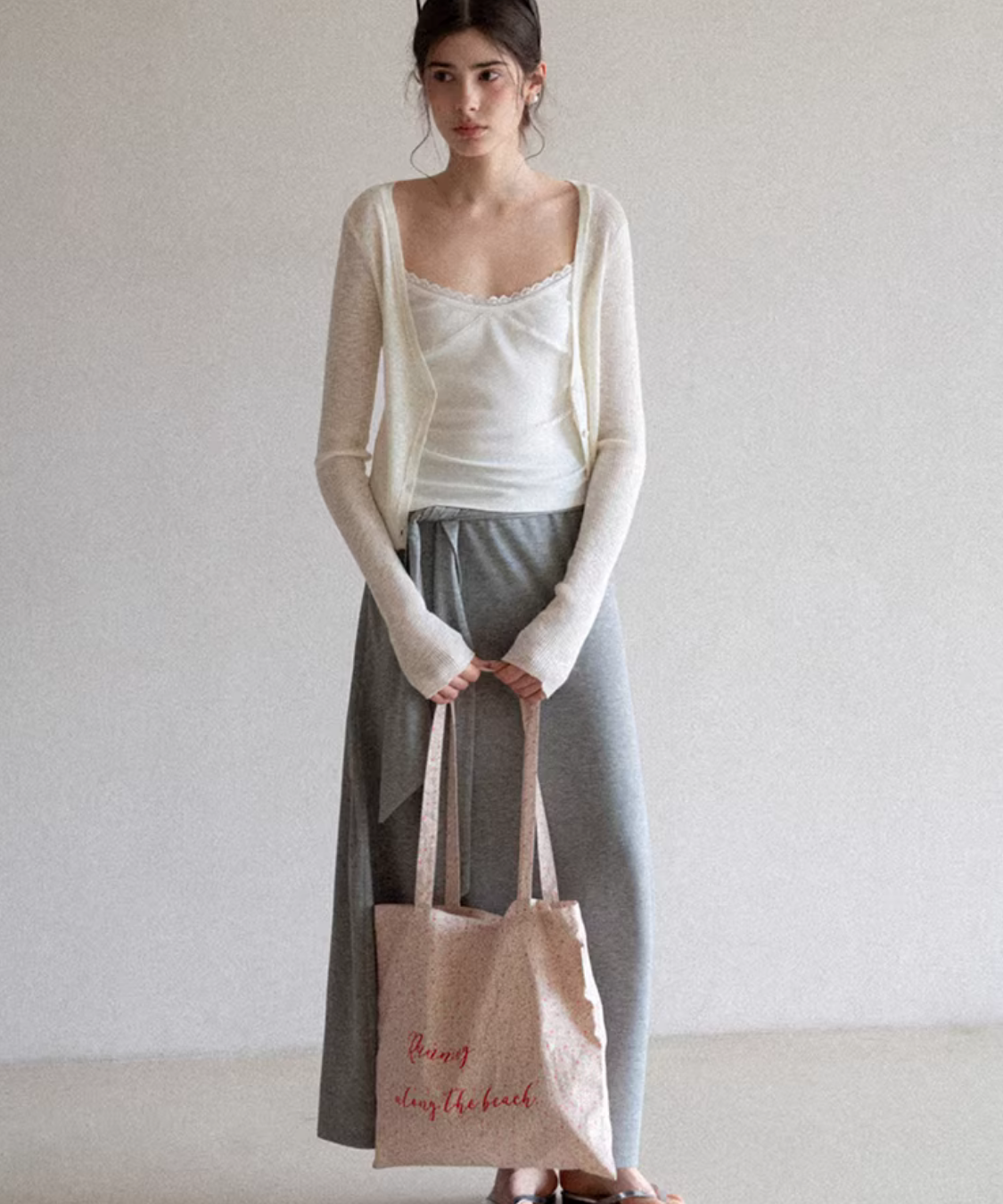 エストリボンがアクセントになる、リラックス感のあるフレアロングスカートです。
