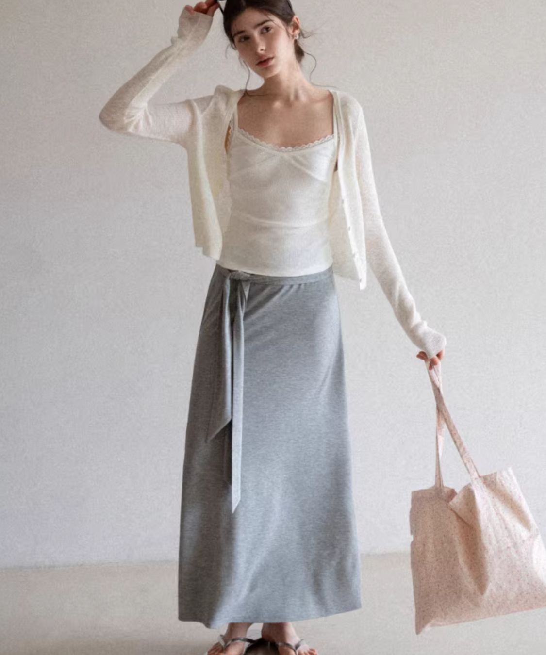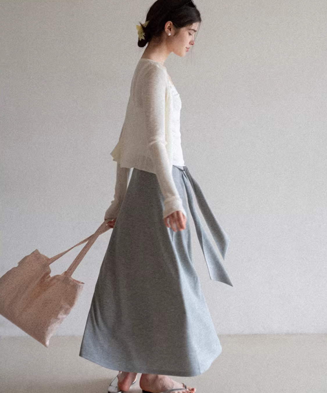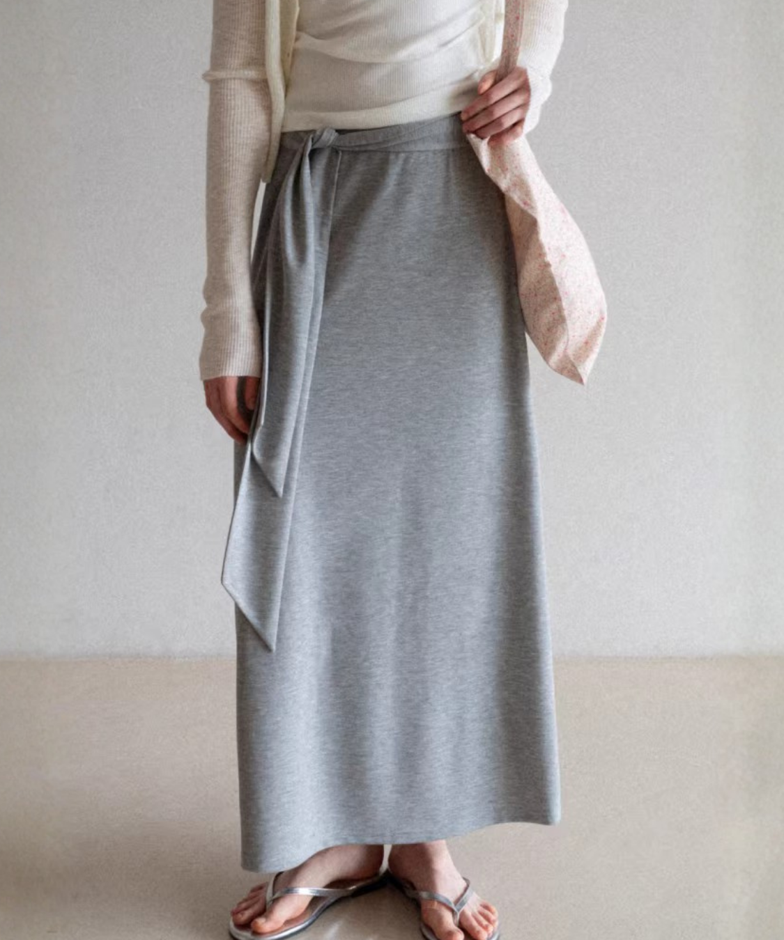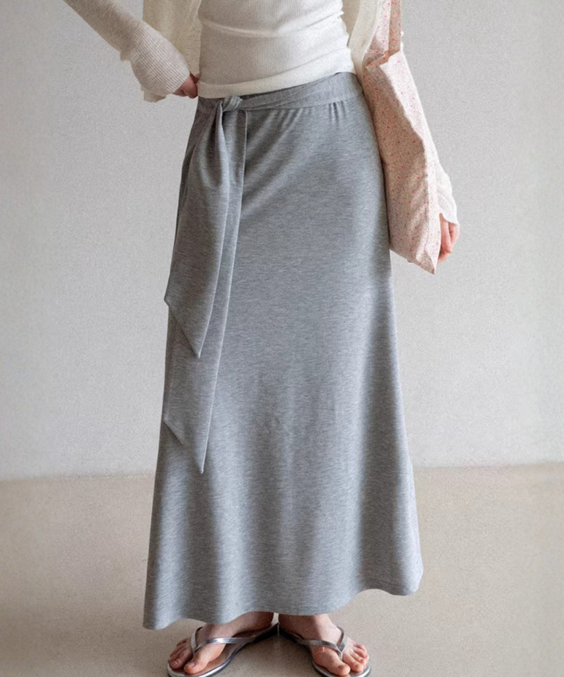 フレアウエストリボンマキシスカート