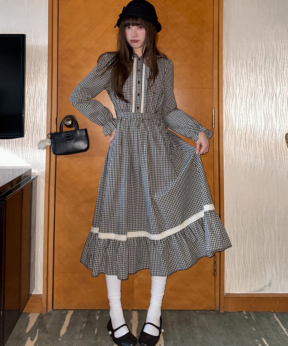 Vネックのタッセル付きフリルワンピースです。遊び心のあるタッセルが、スウィートなスタイルのアクセントに♡ゆったりとしたフレアラインで、ストレスフリーに着こなせます。