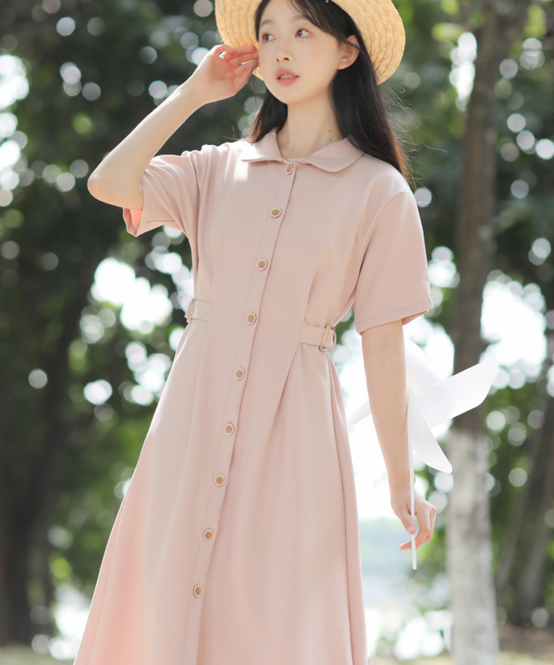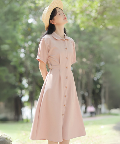 シャツカラーサイドベルト付きAラインワンピース
