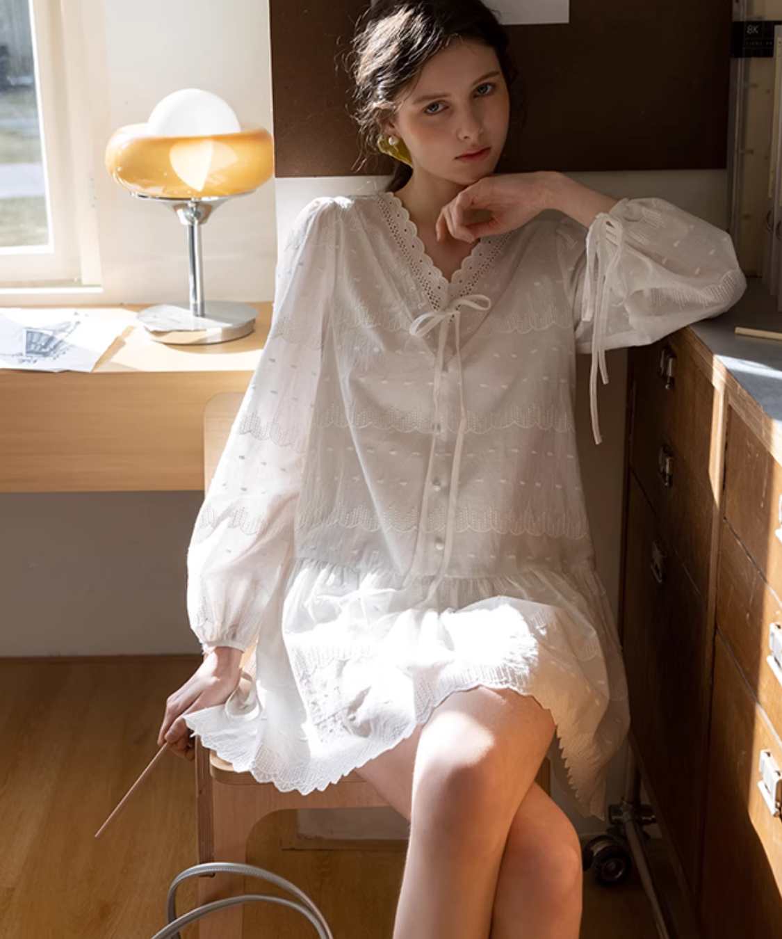 甘さをプラスするスカラップレースとふんわりシルエットが魅力のコットンワンピースです。