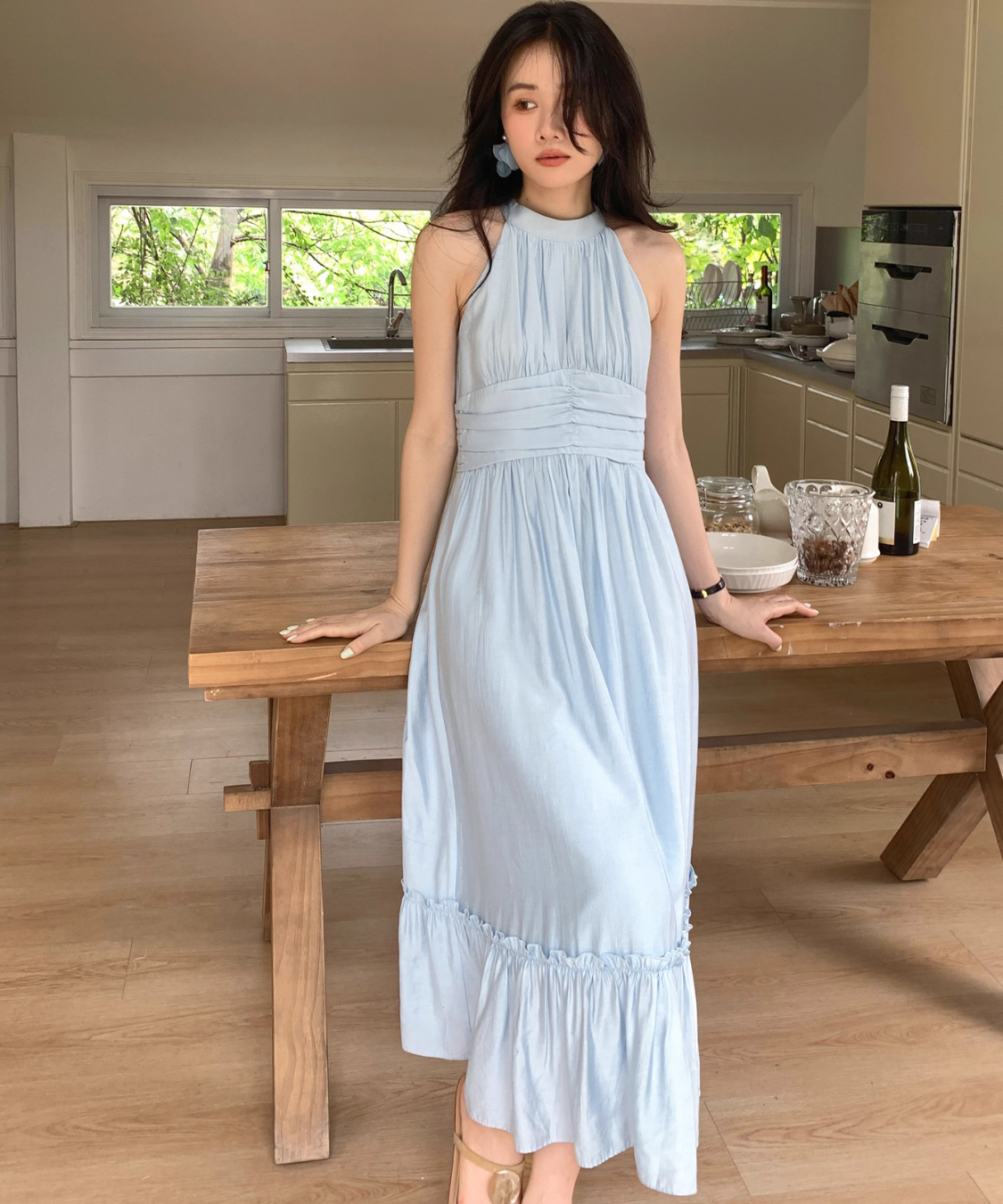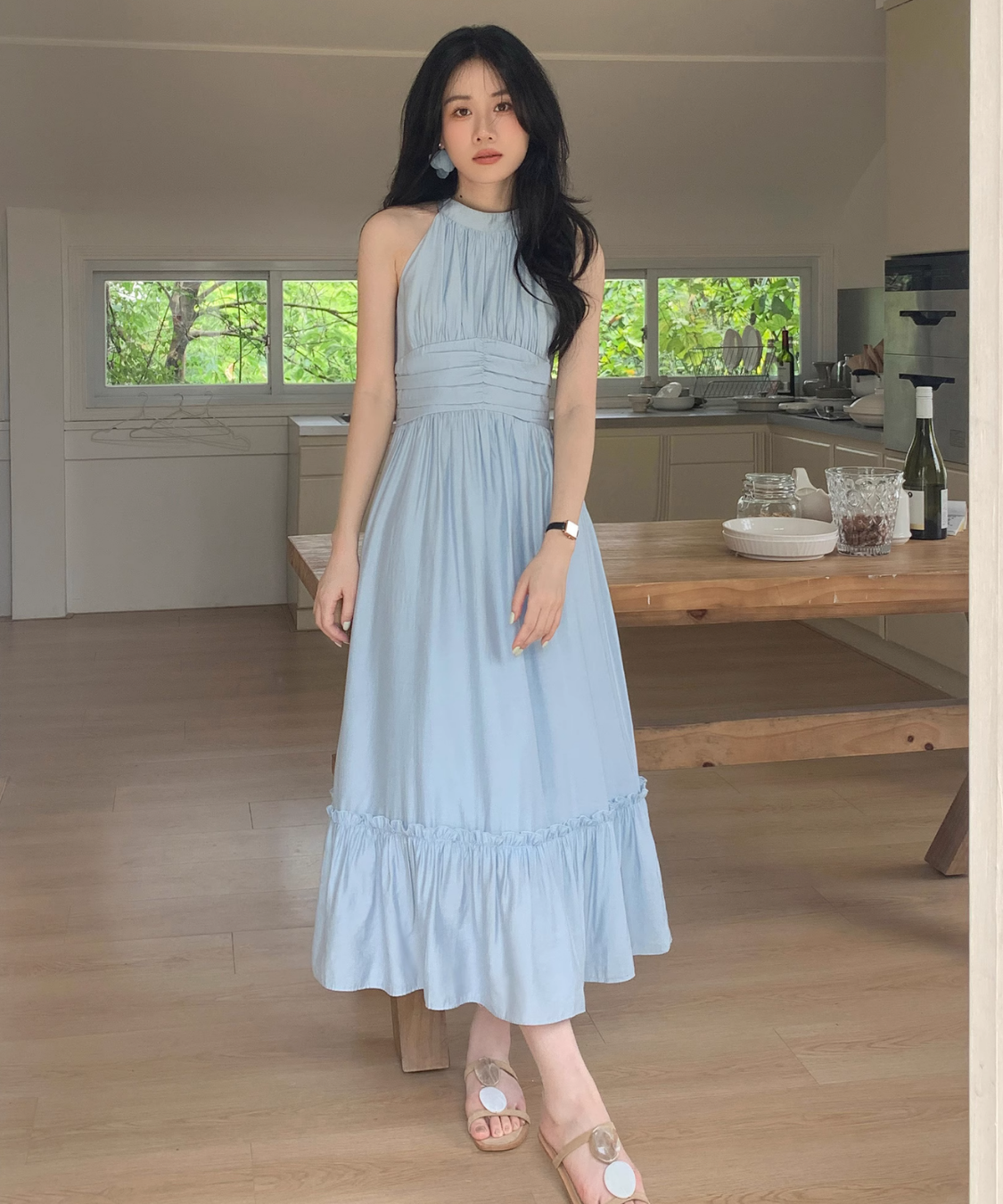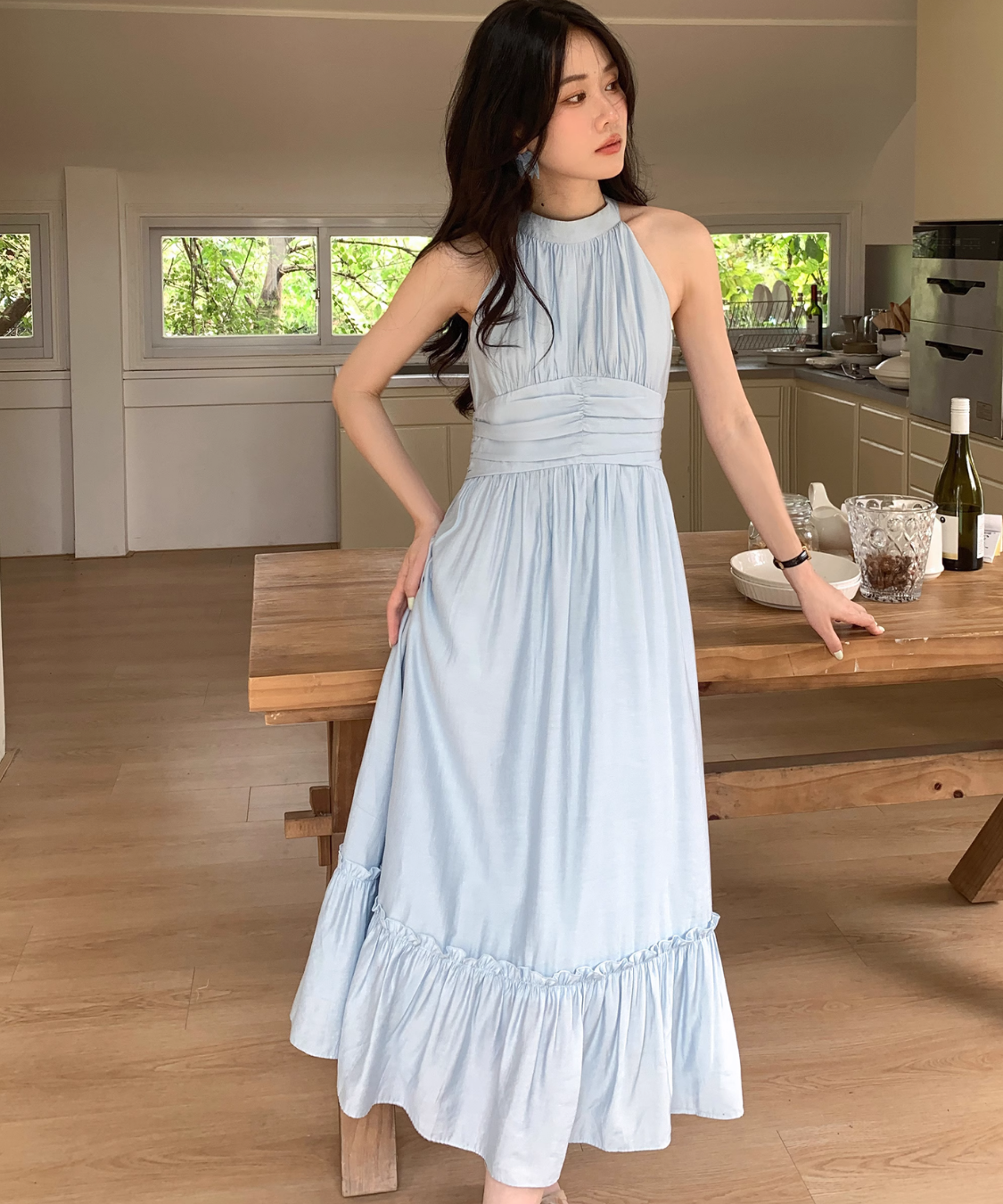 首まわりがスッキリ見えるし、ウエストも締まって見えて綺麗!