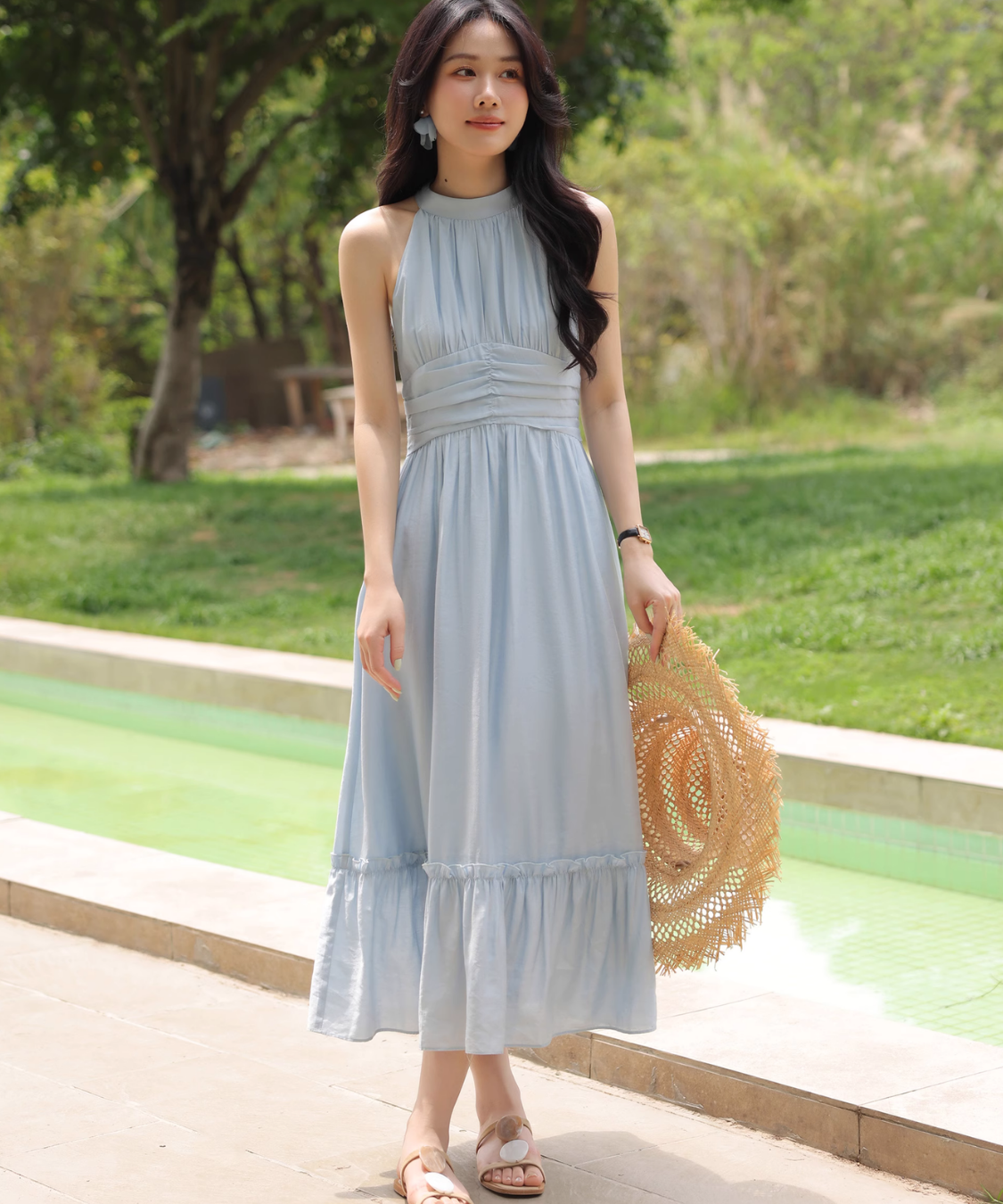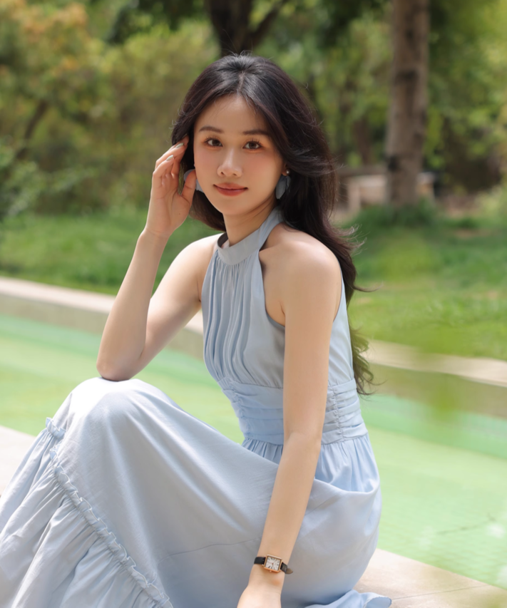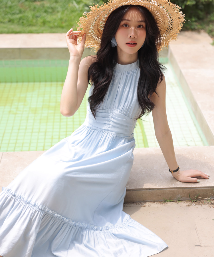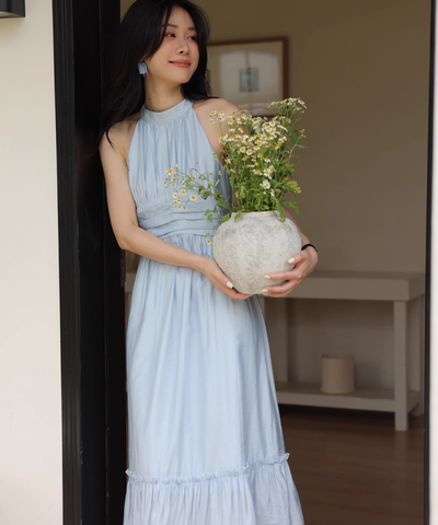 首まわりがスッキリ見えるし、ウエストも締まって見えて綺麗!