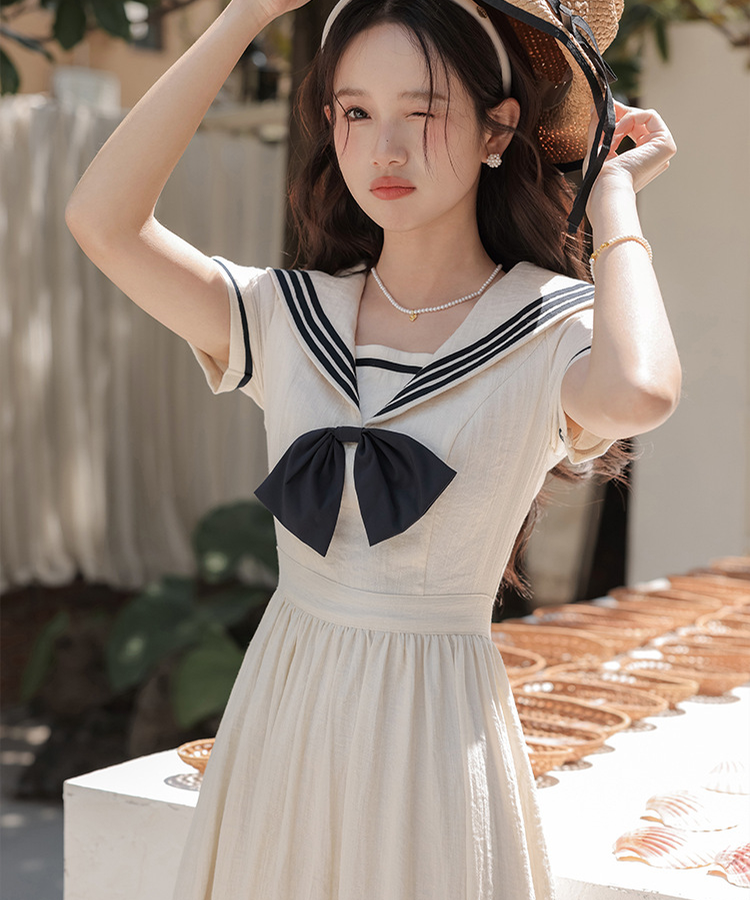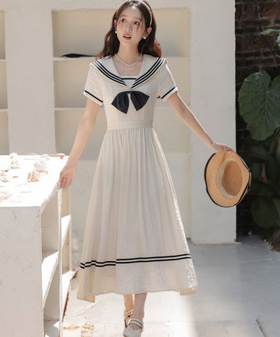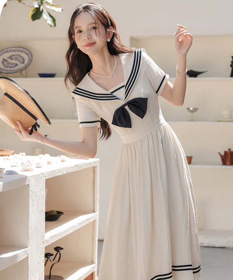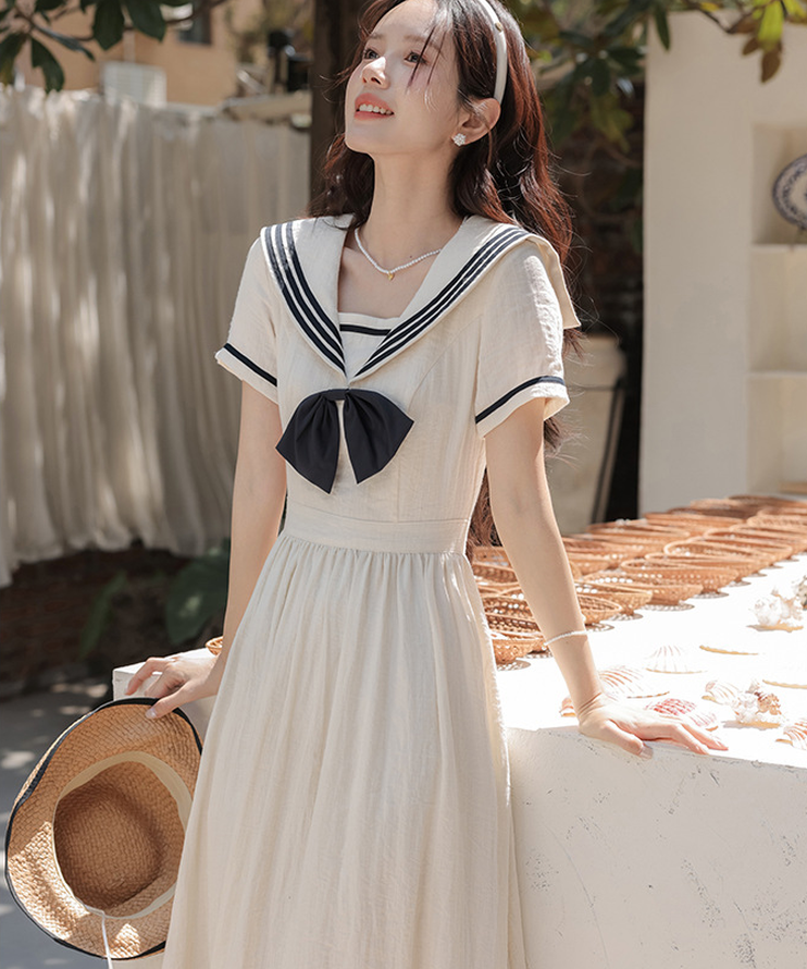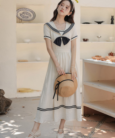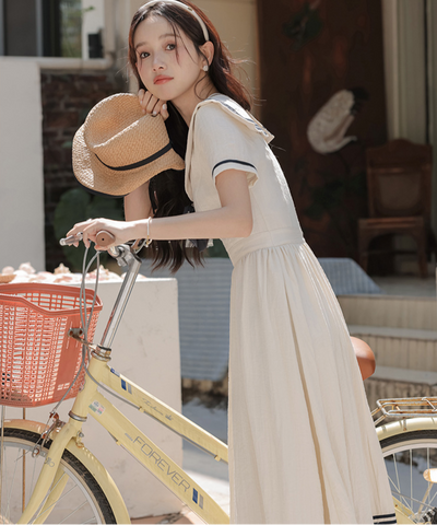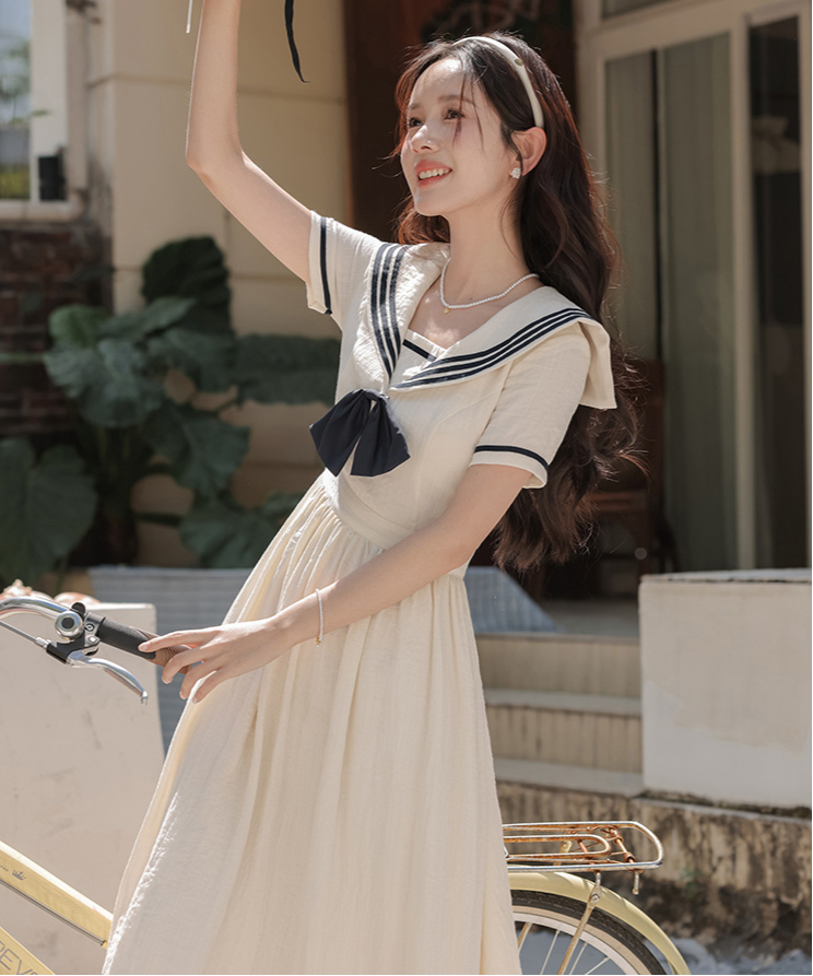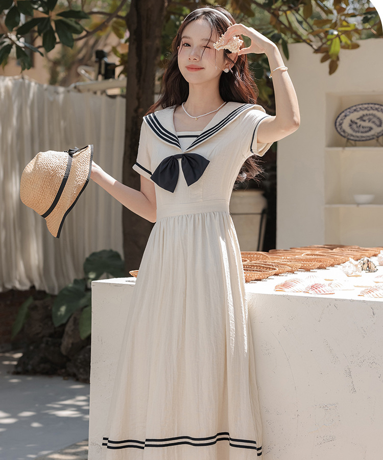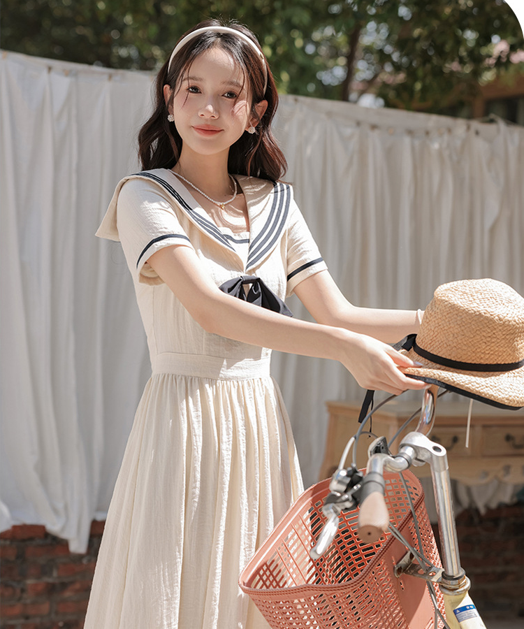 配色ラインセーラーカラーワンピース