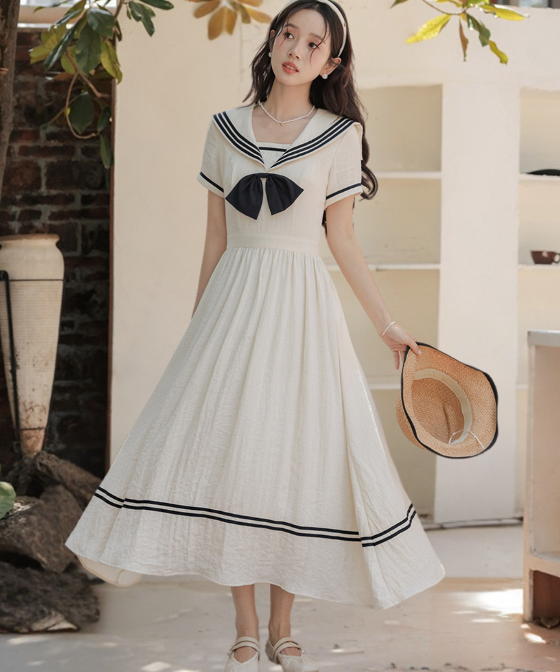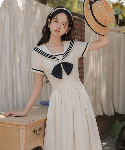 クラシカルなセーラーカラーが目を引くガーリーワンピースです。