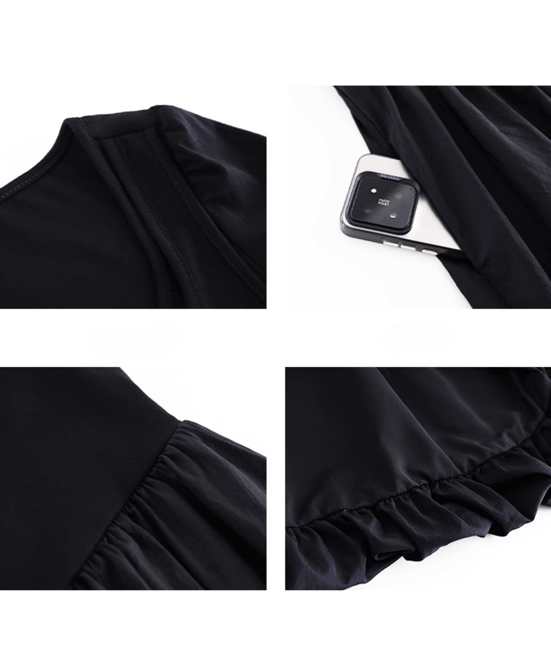 オールブラックでも動きのあるシルエットで重たくならずおしゃれ見え◎