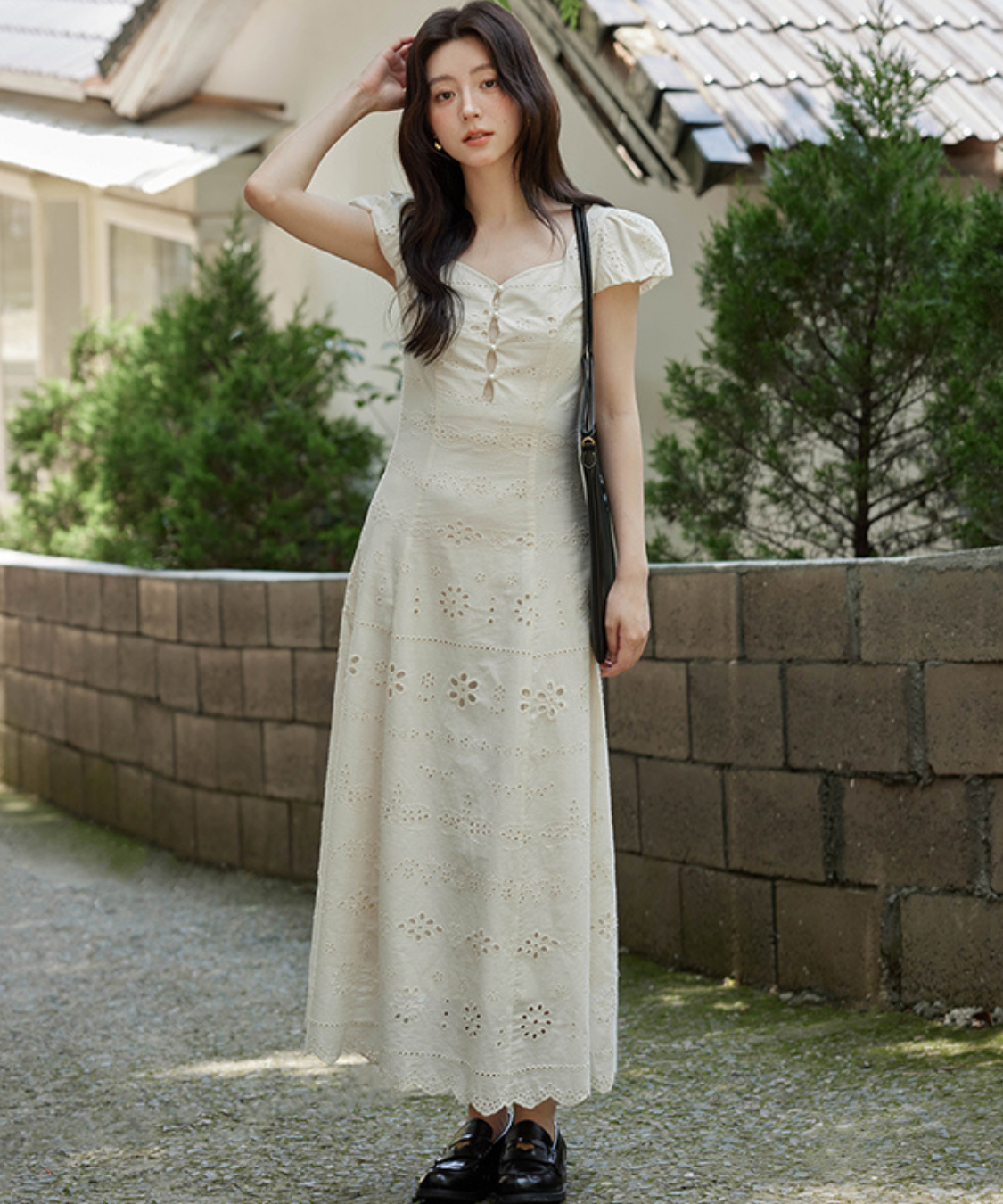 立体的なフラワーモチーフが、動くたびに揺れてフェミニンさを引き立てます♡