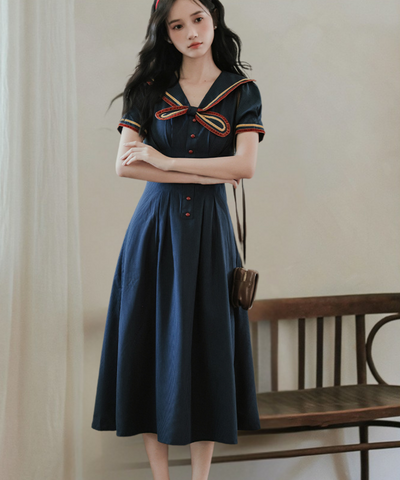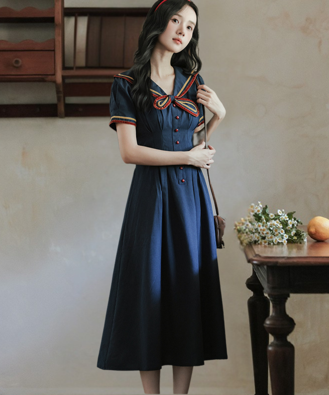 セーラー襟と袖のラインがポイントになったガーリームード漂うワンピースです。