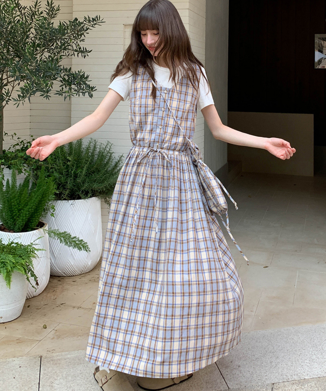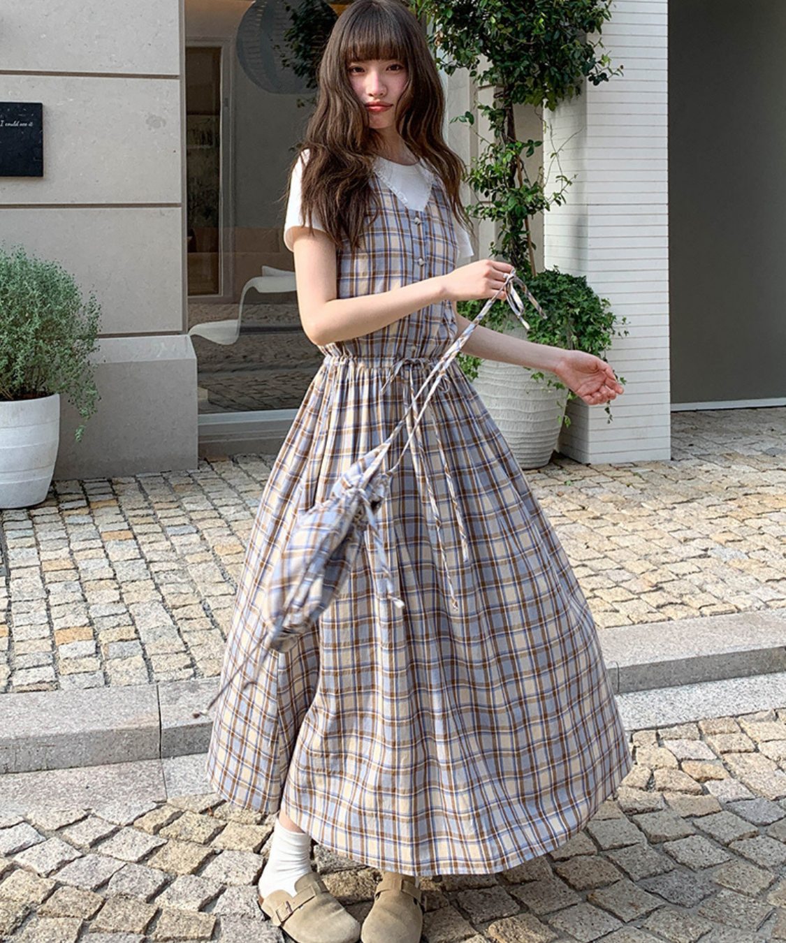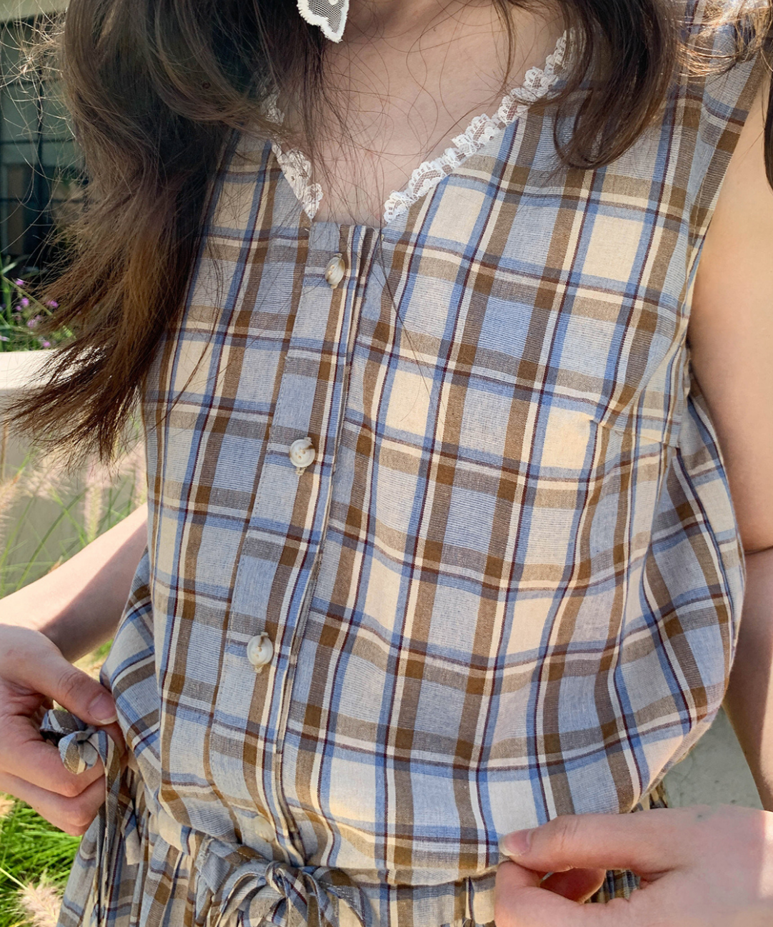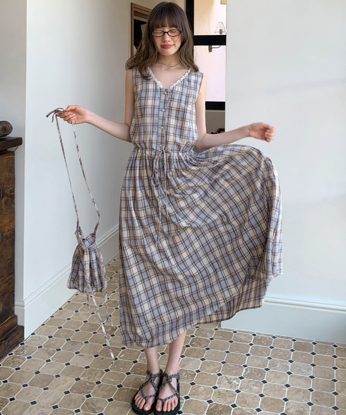 ナチュラルなチェック柄が爽やかな印象を与えるワンピースです。