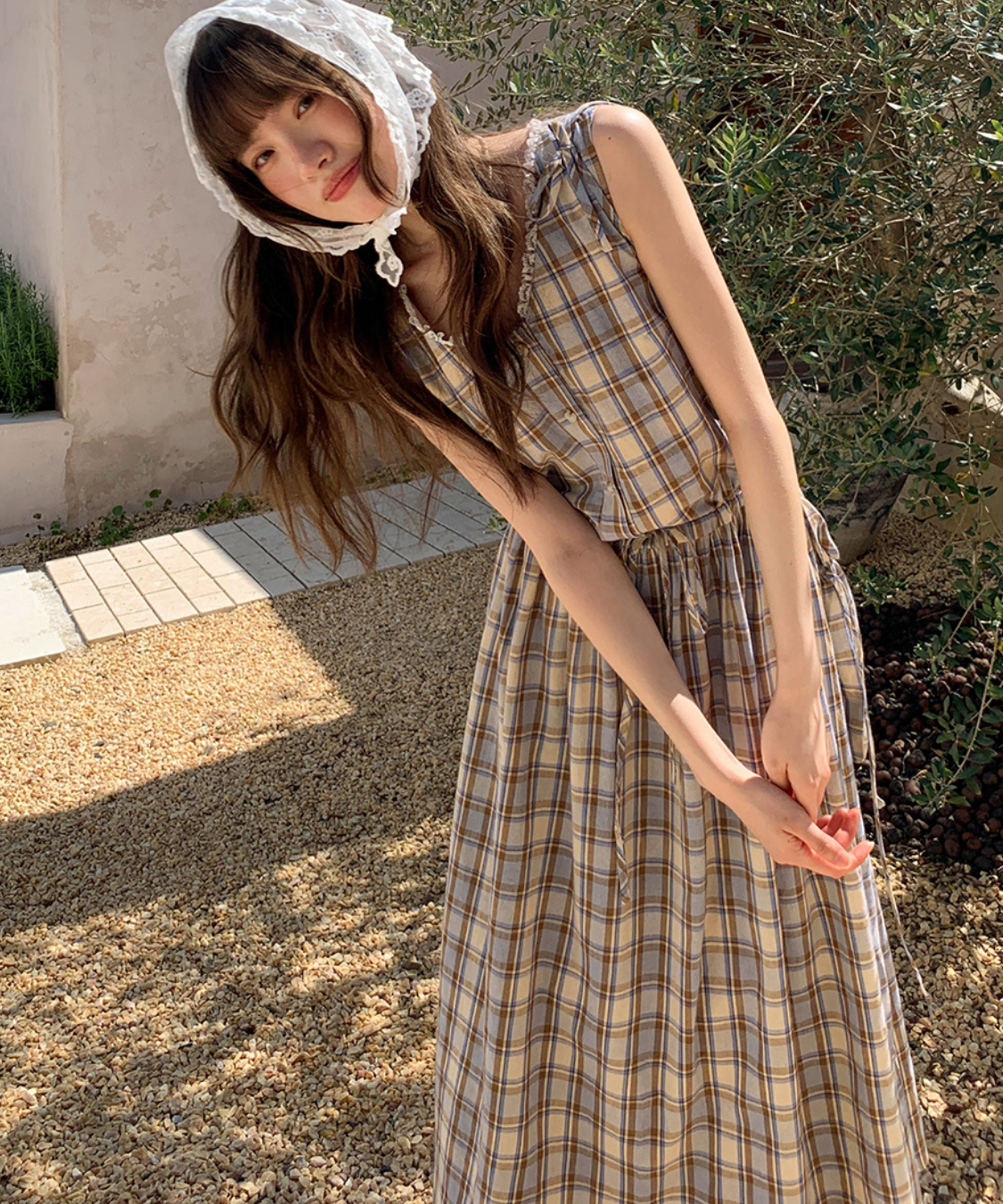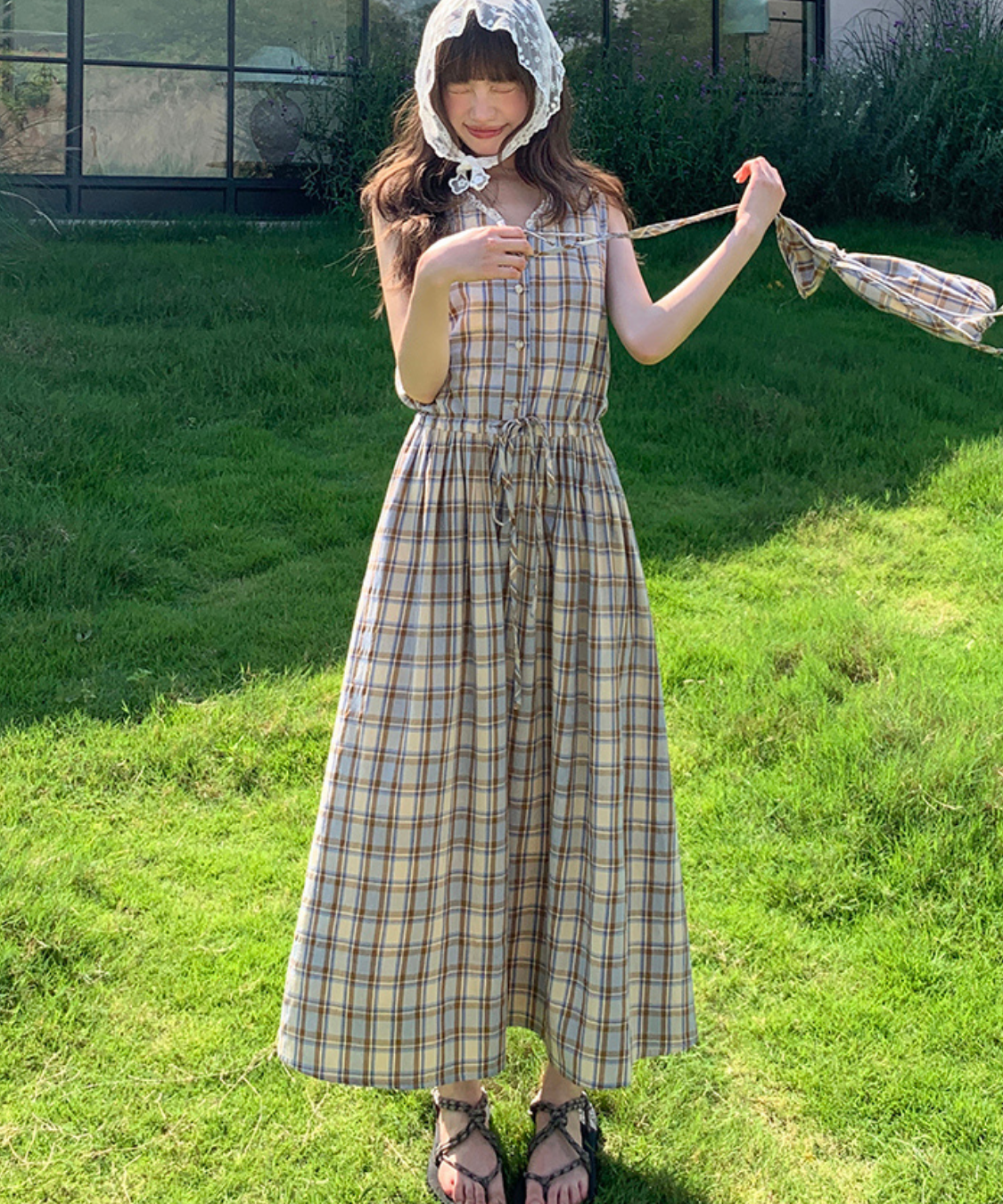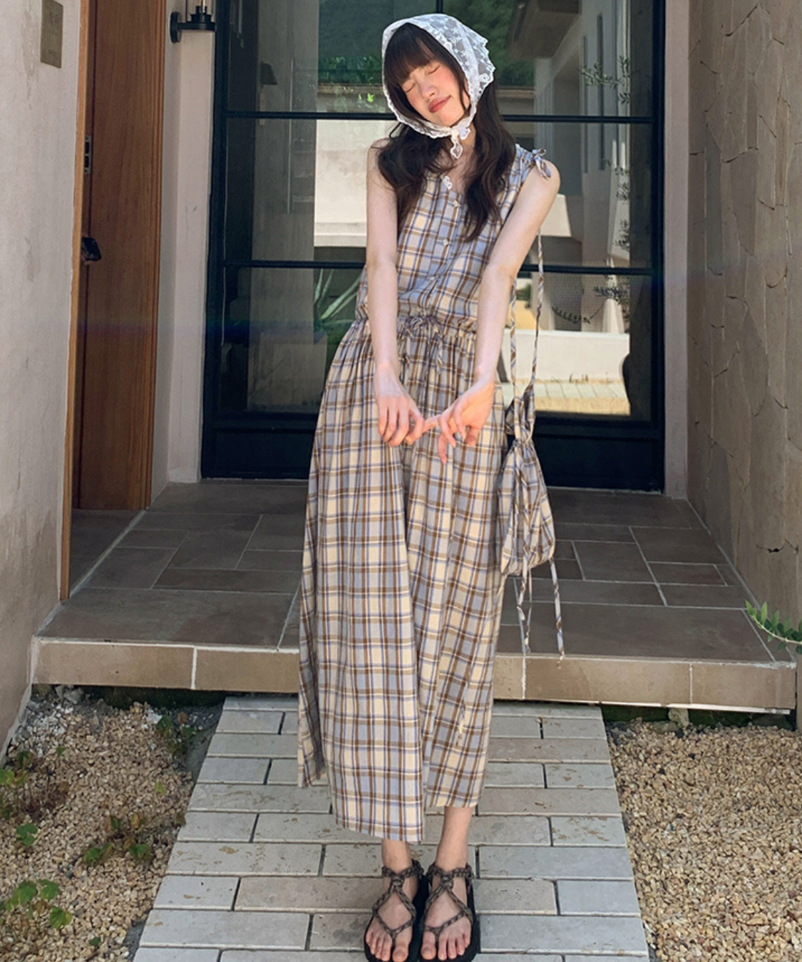 ナチュラルなチェック柄が爽やかな印象を与えるワンピースです。