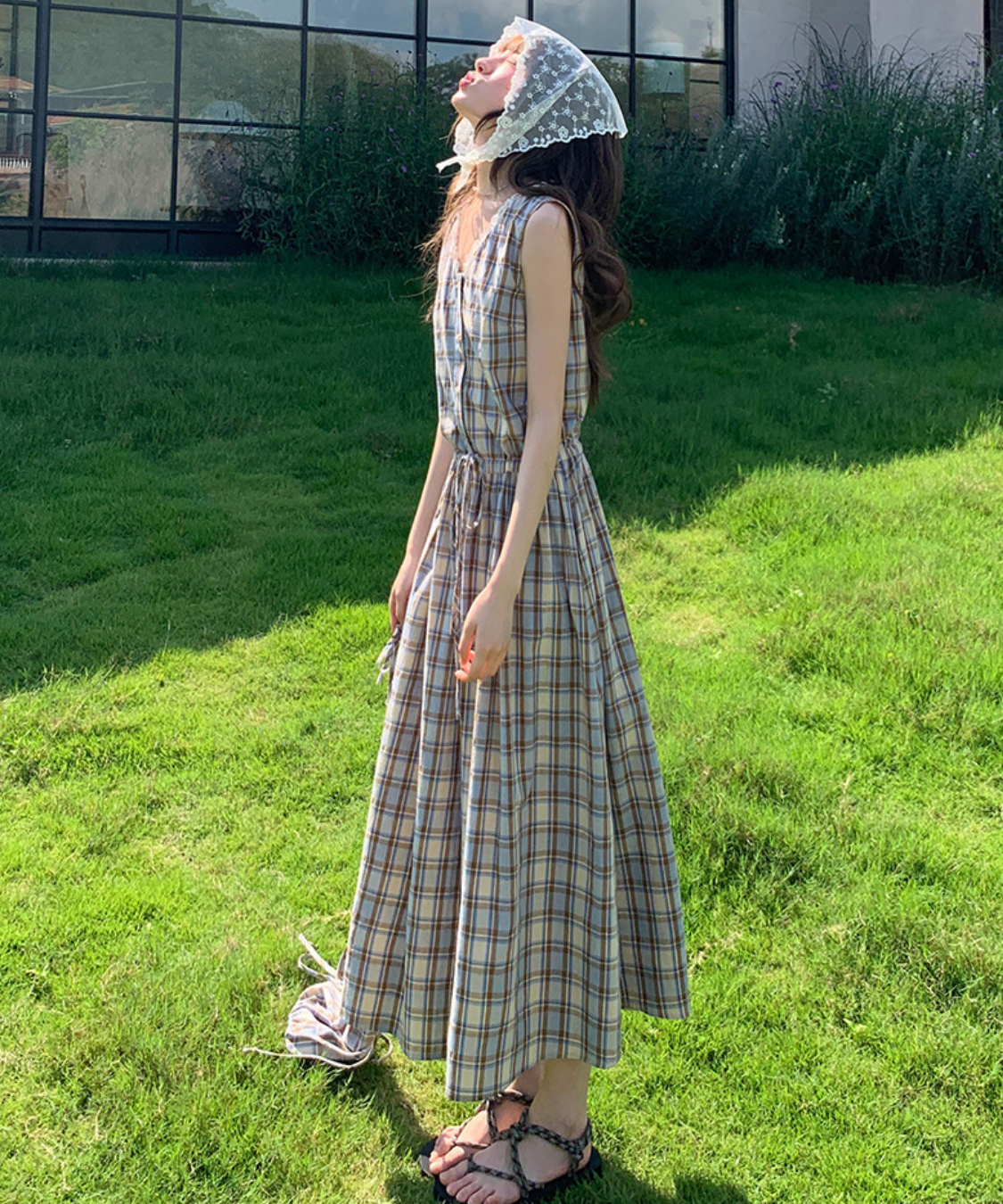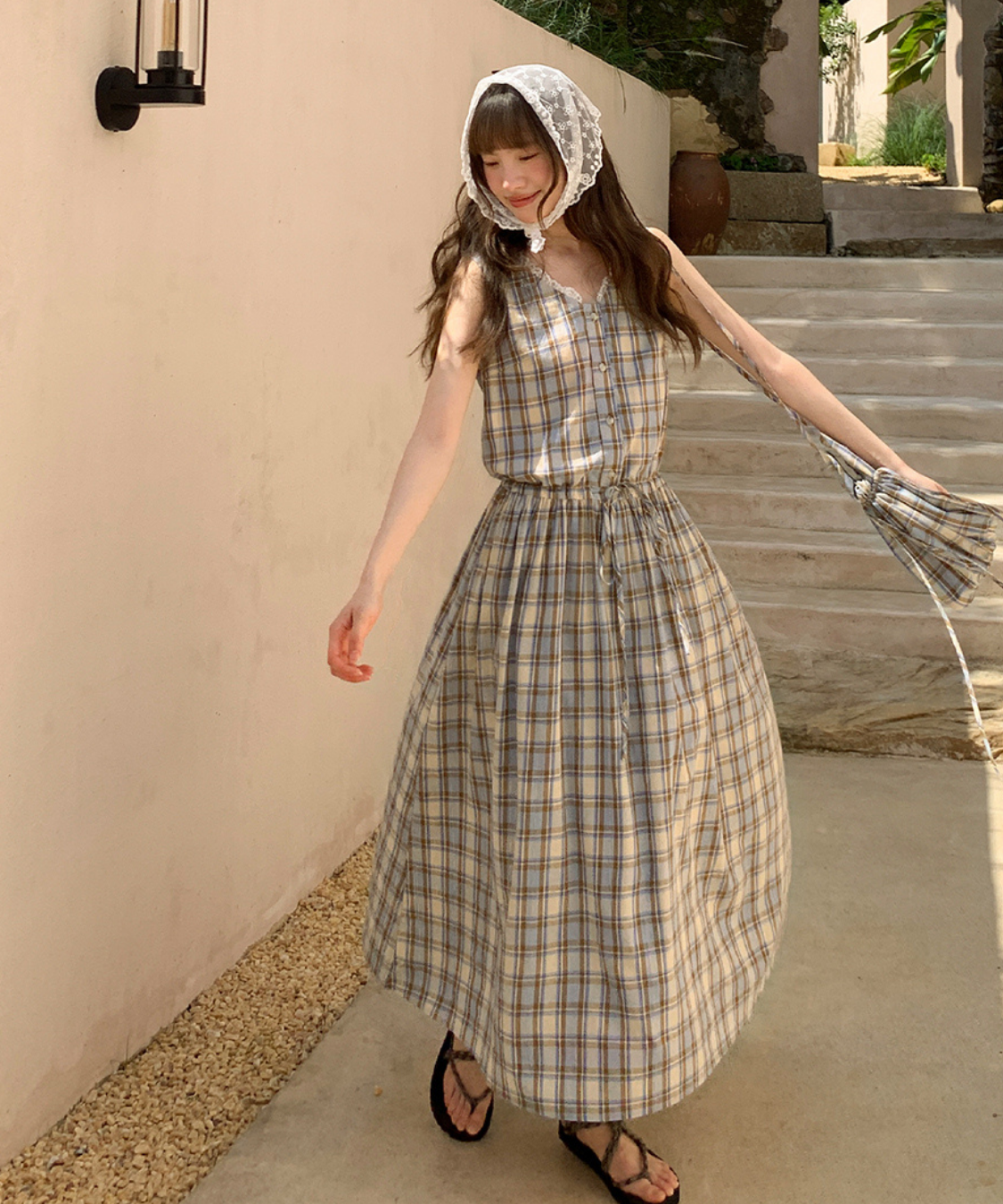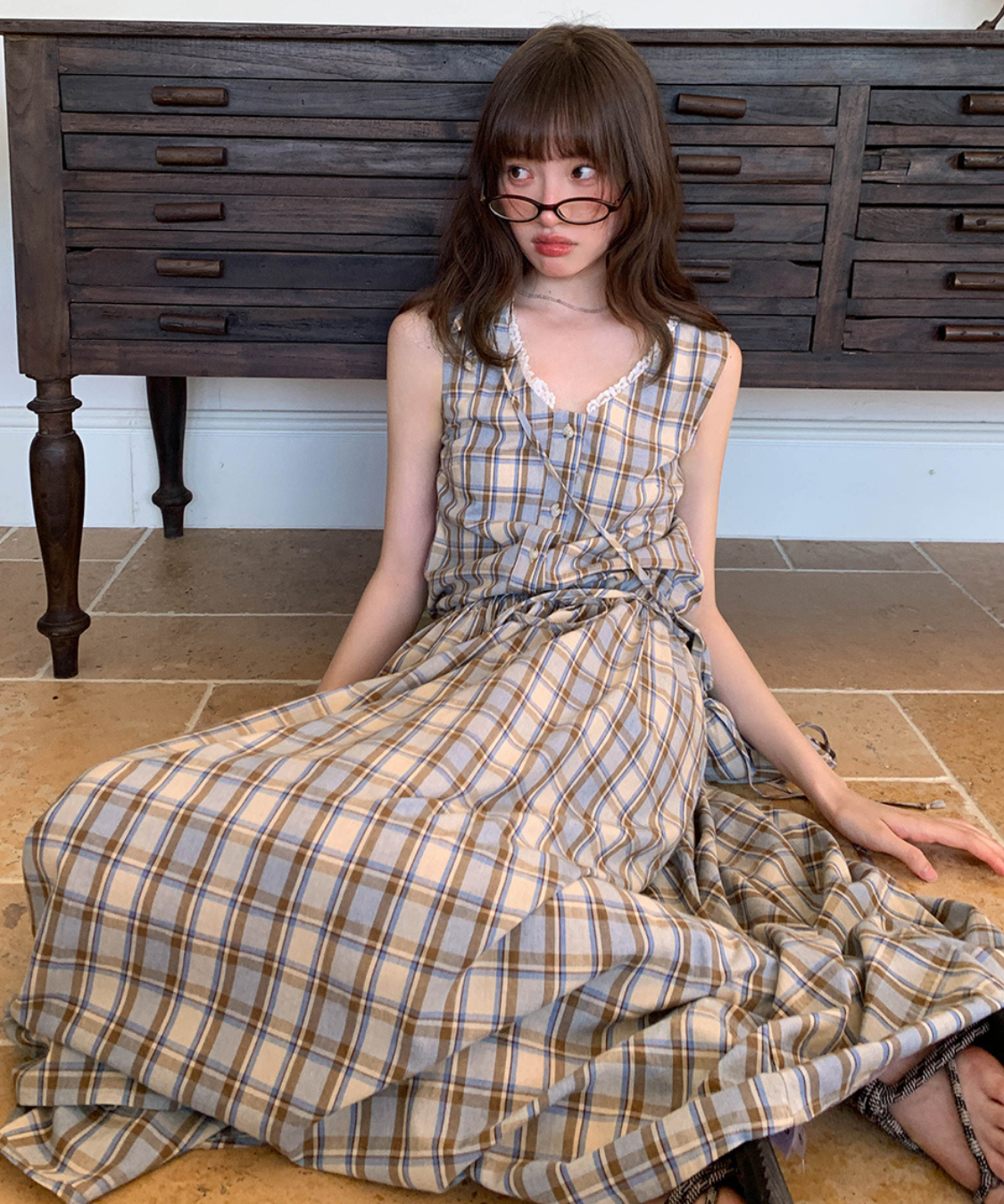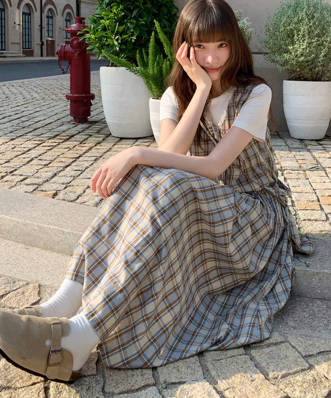 ナチュラルなチェック柄が爽やかな印象を与えるワンピースです。